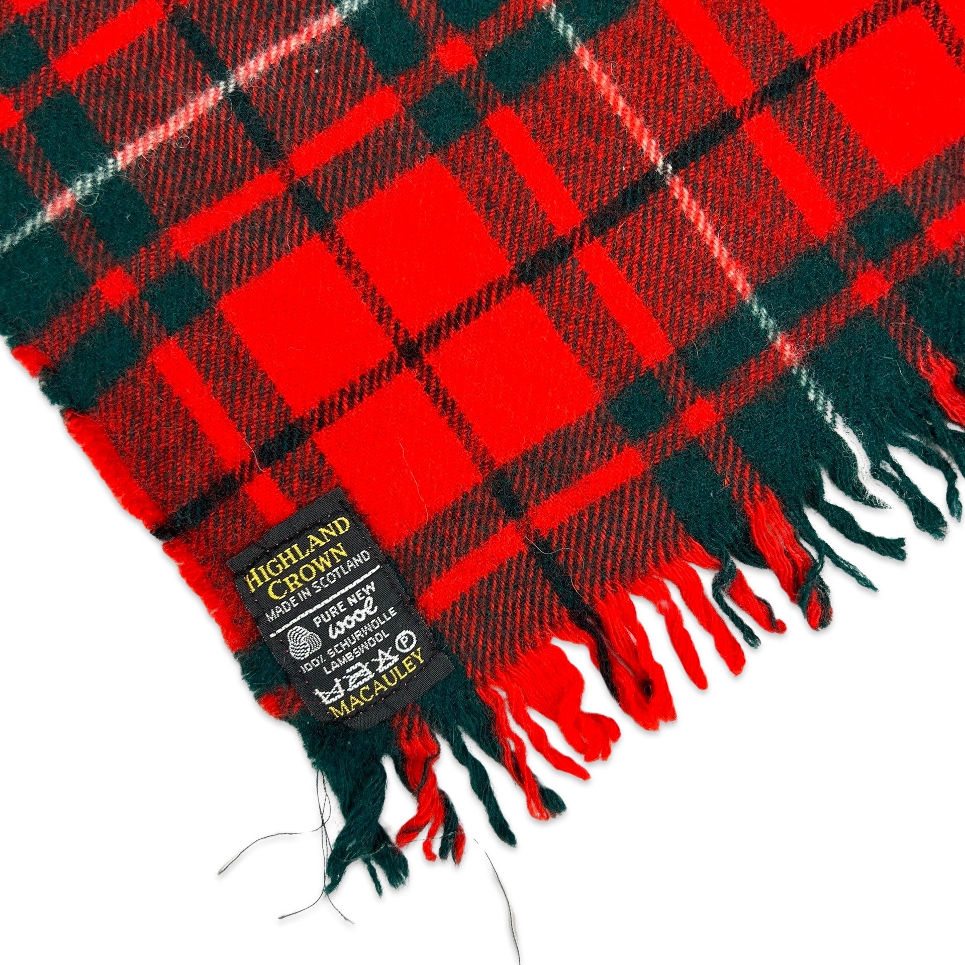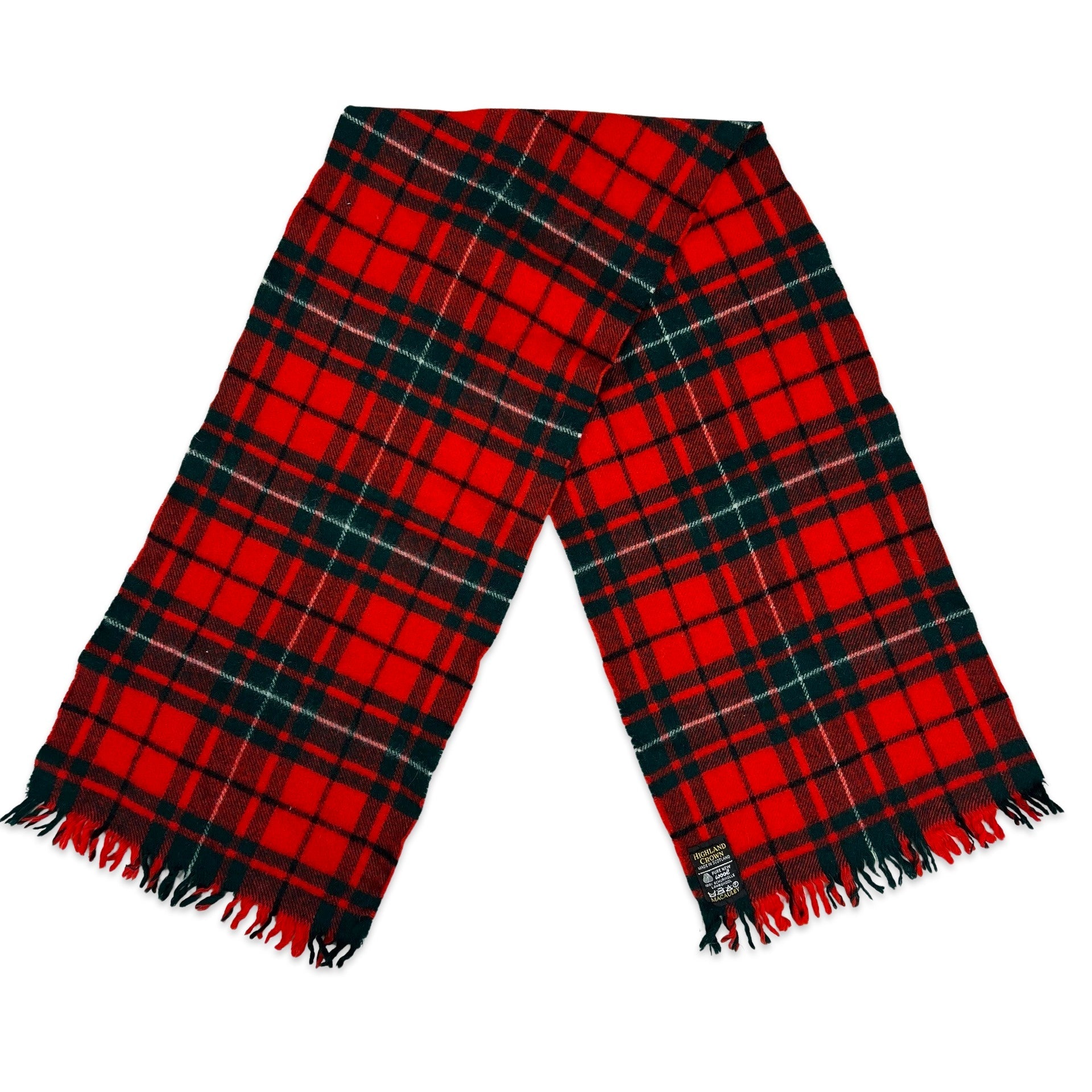 Vintage mens red green tartan plaid pattern scarf. Wool blend. Tassel hem