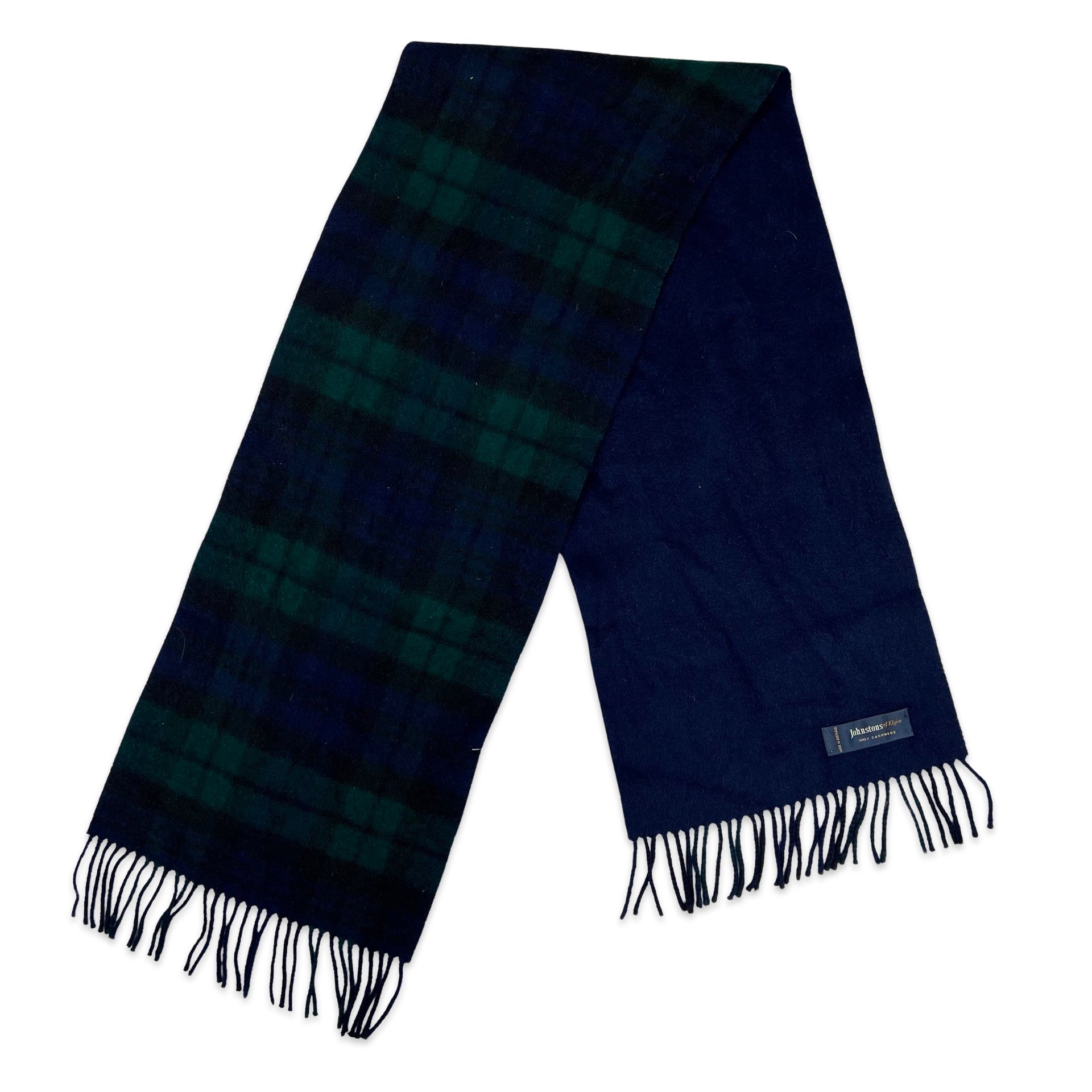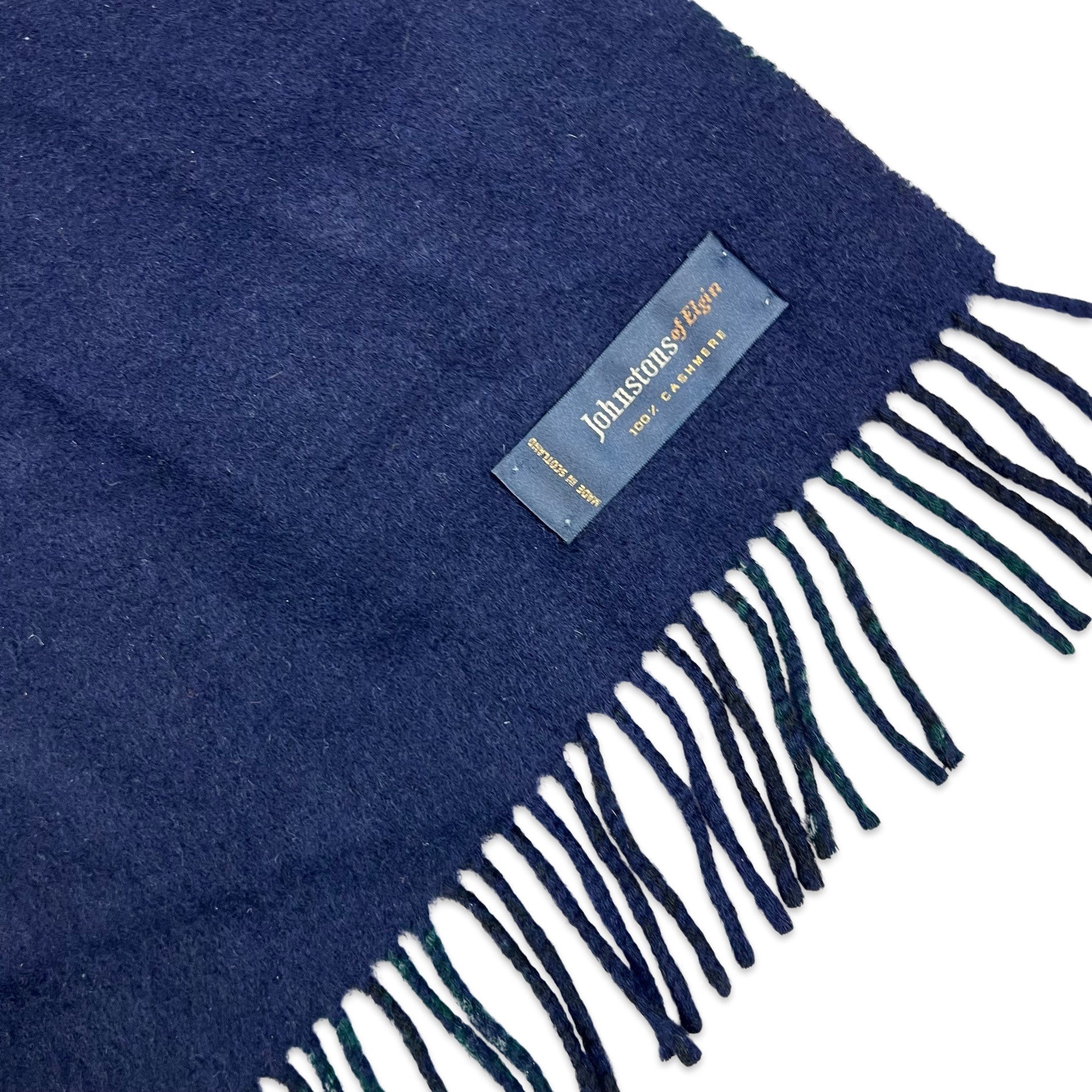 Vintage 'Johnstons of Elgin’ brand cashmere scarf. Blue green plaid pattern