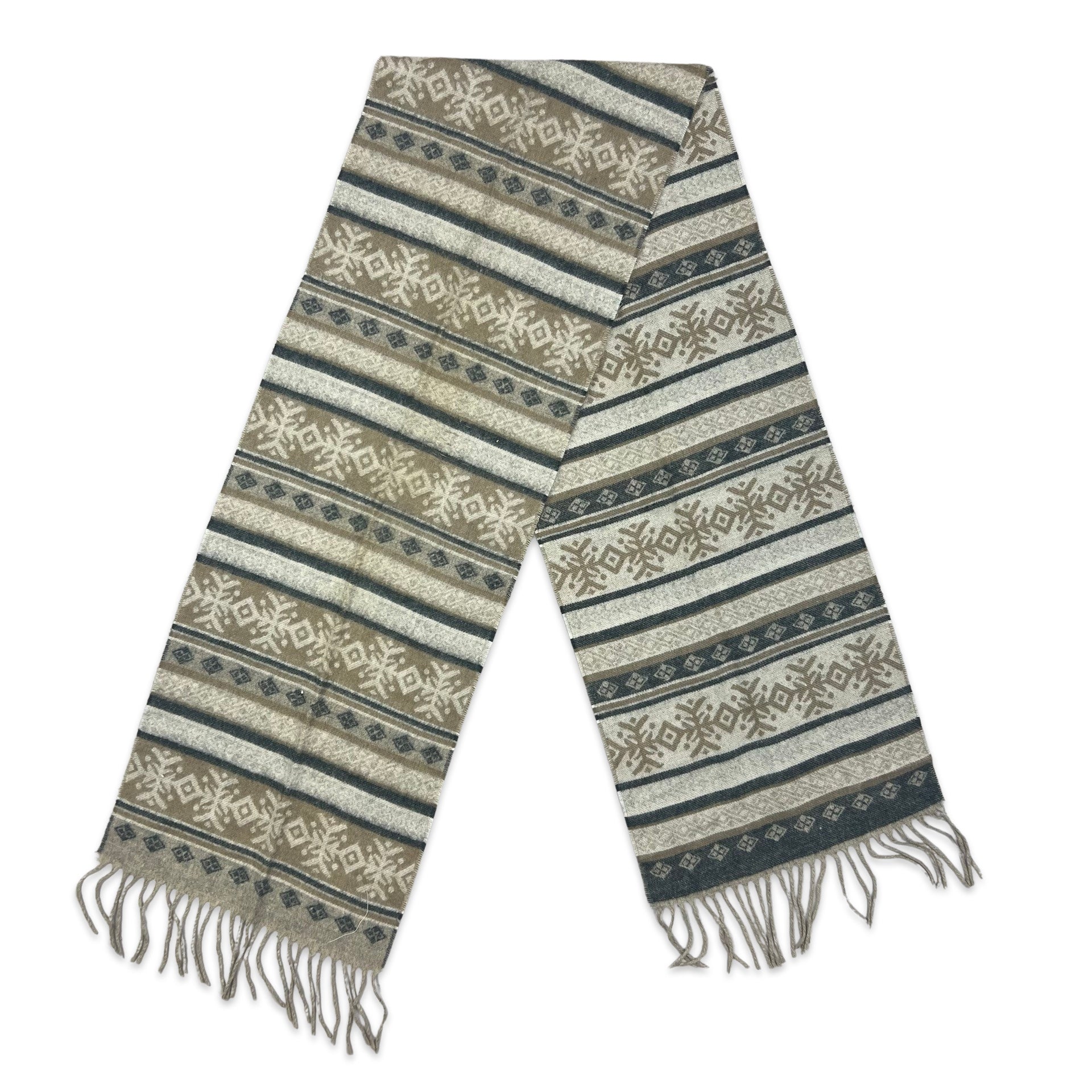 Vintage Fair Isle Cashmere Scarf Beige Black White