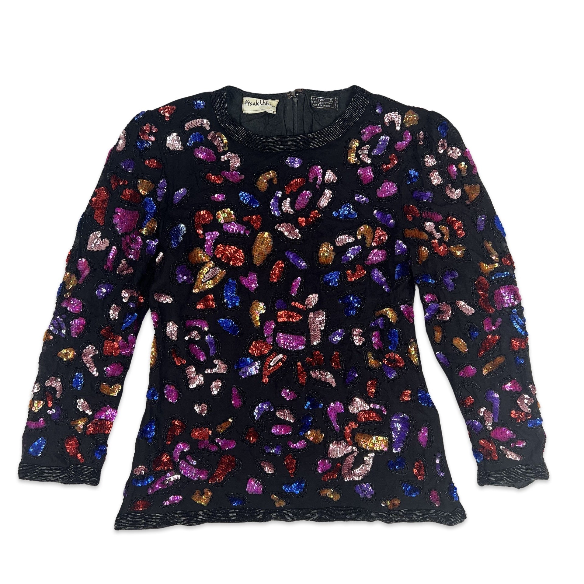 Vintage 80s Sequin Blouse Black Pink Blue Red 10 12