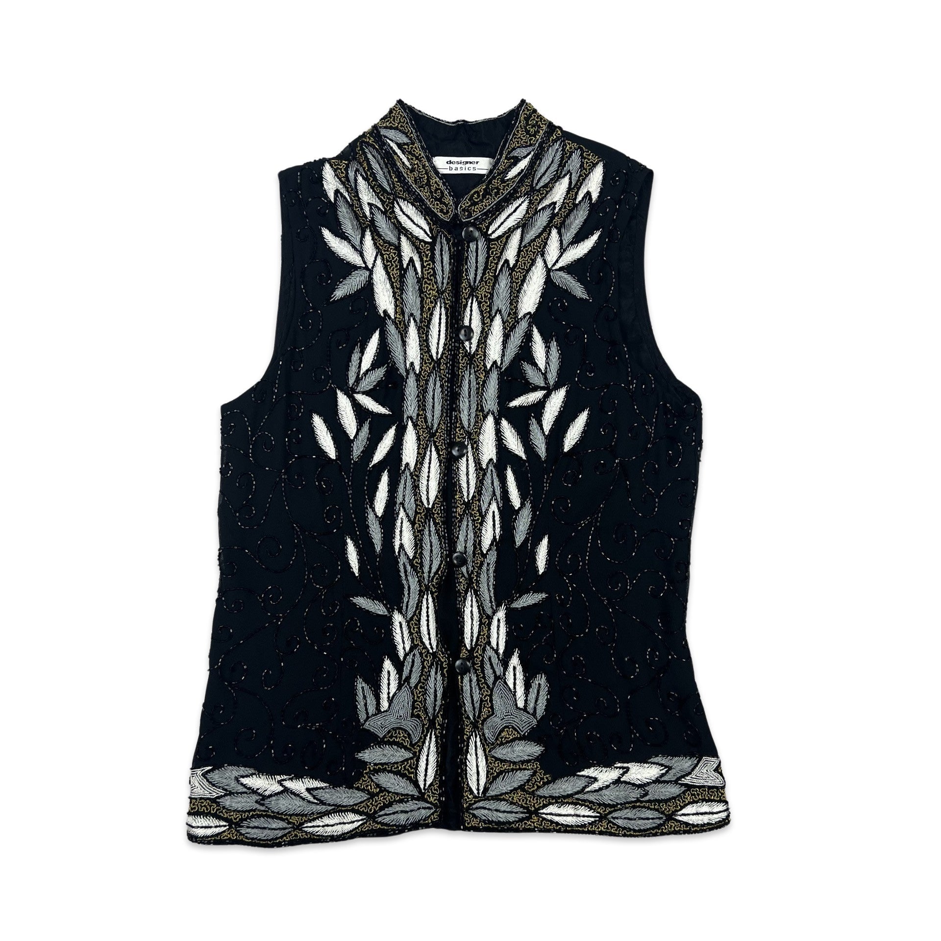 Vintage Sequin Blouse Black Silver Gold 10 12