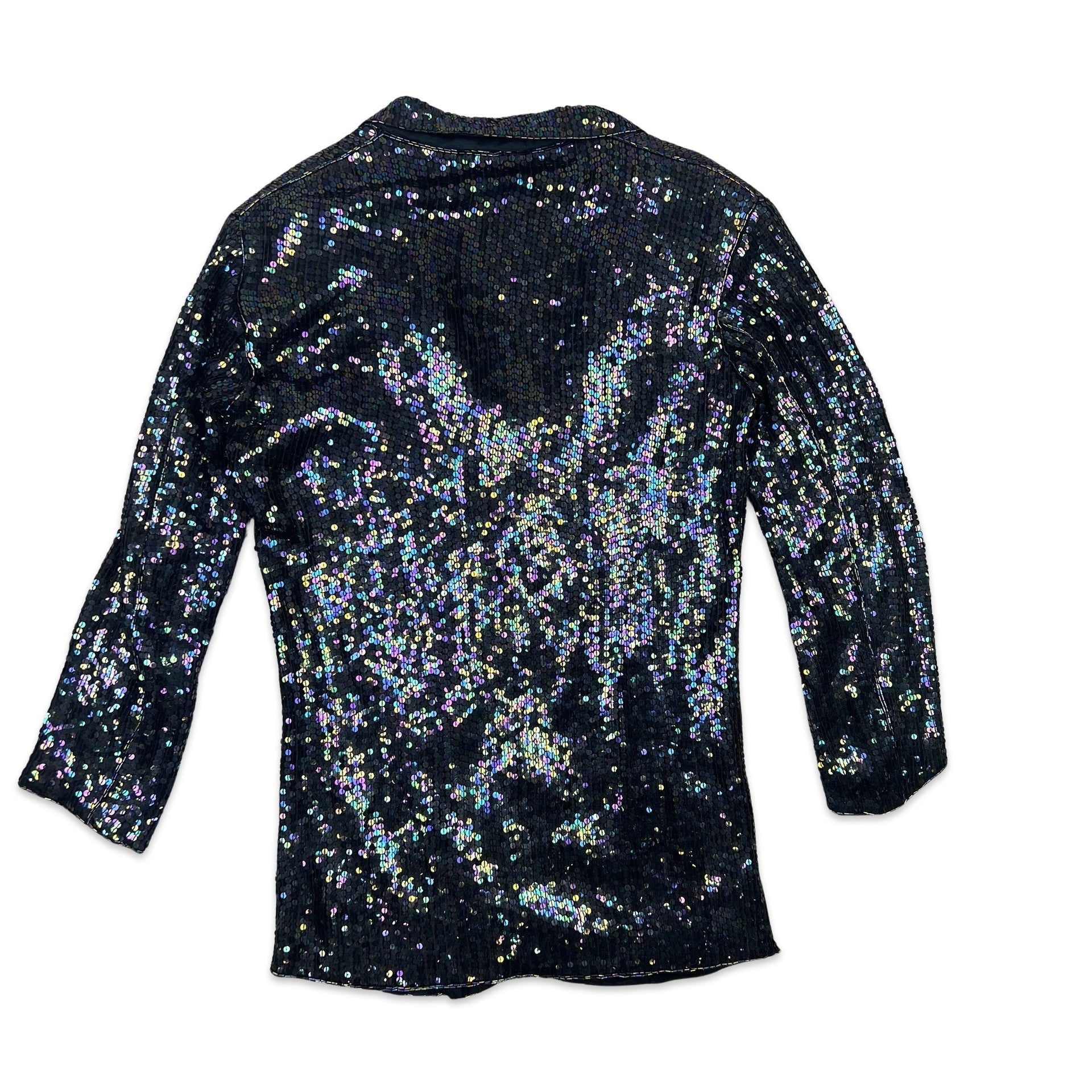 Vintage 80s style sequin blazer jacket. Button fastening. Front pockets. Shoulder pads. 100% silk.