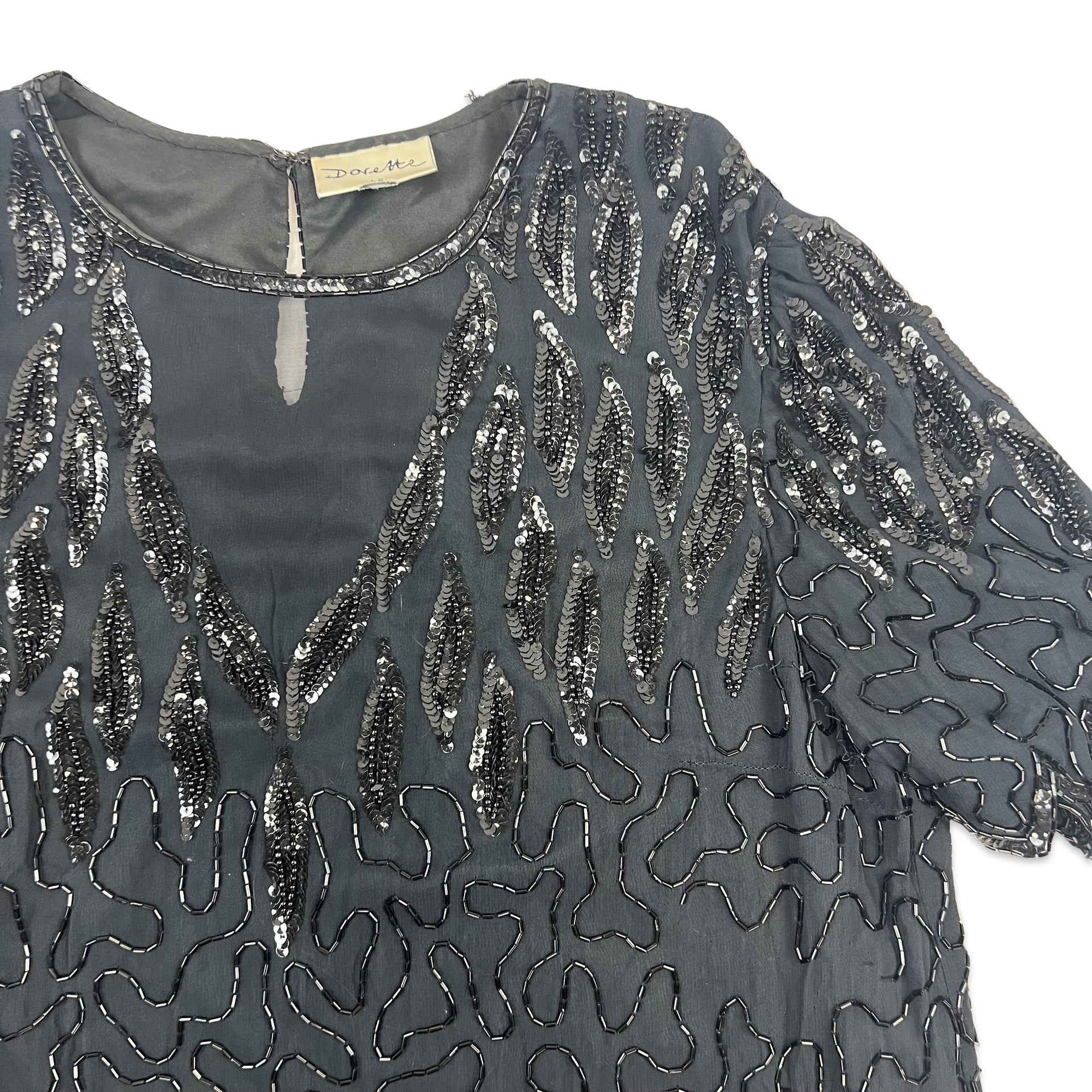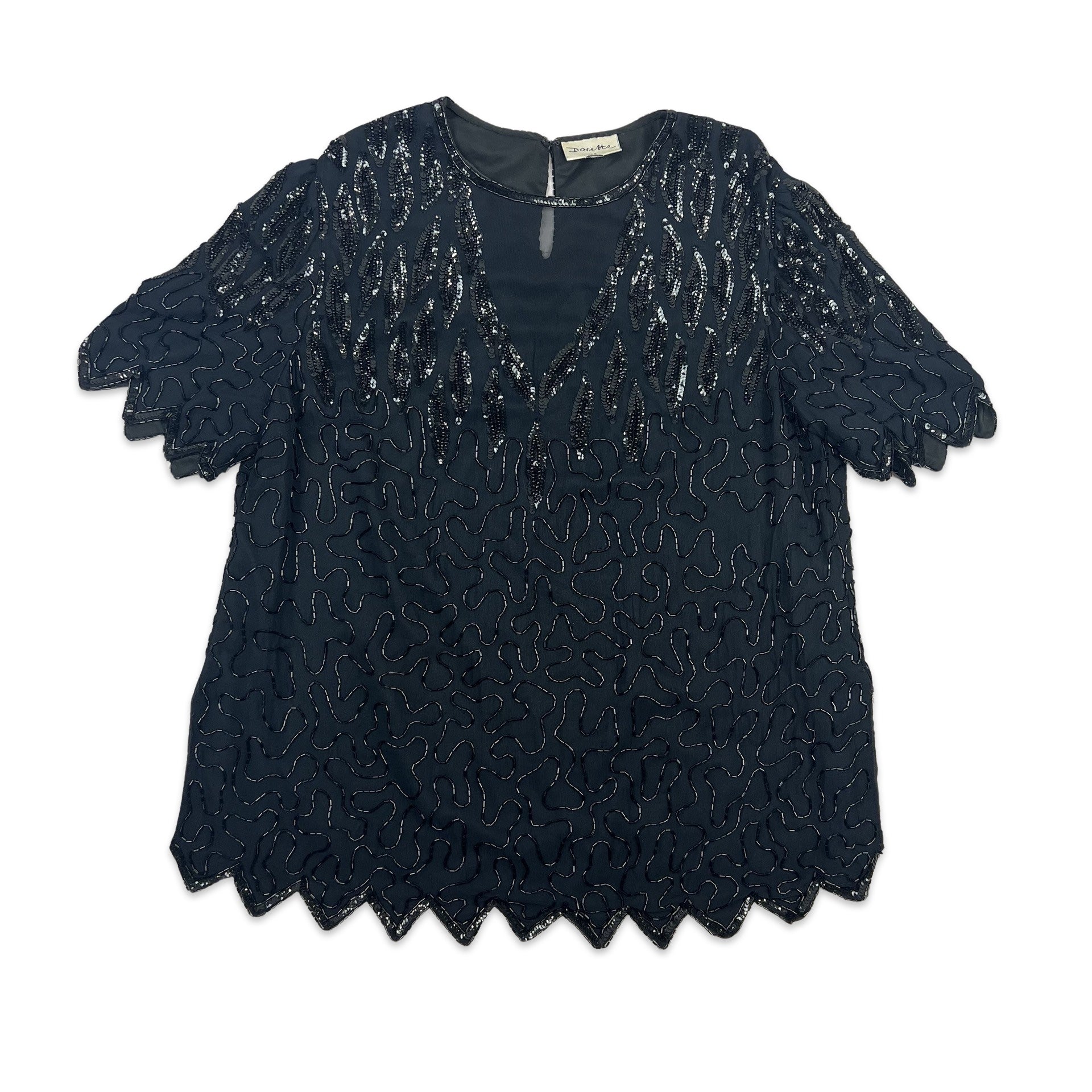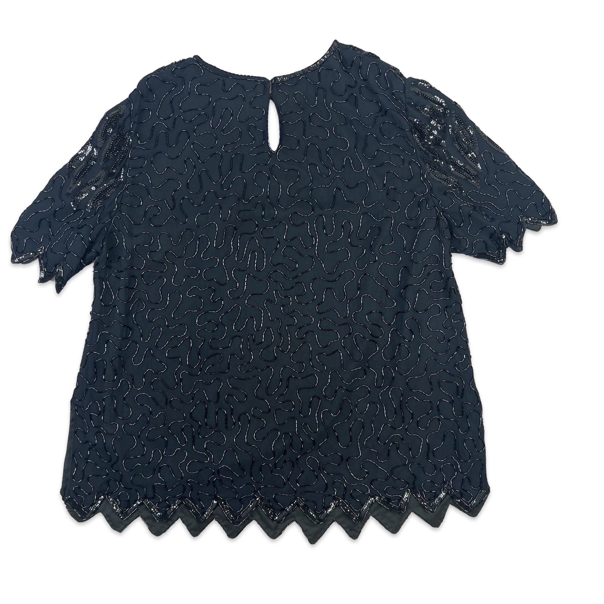 Vintage 80s Boxy Oversized Sequin Blouse Black 14 16