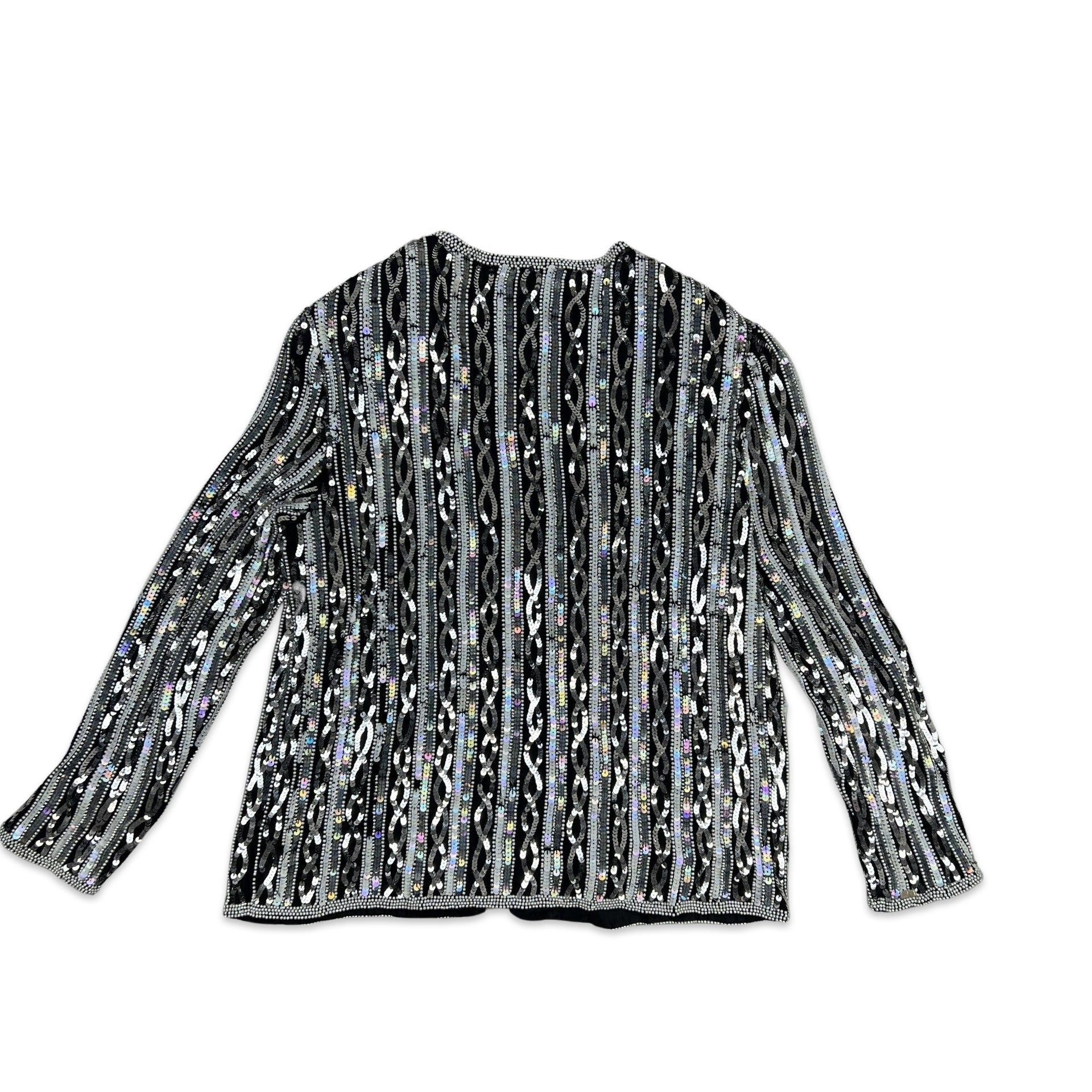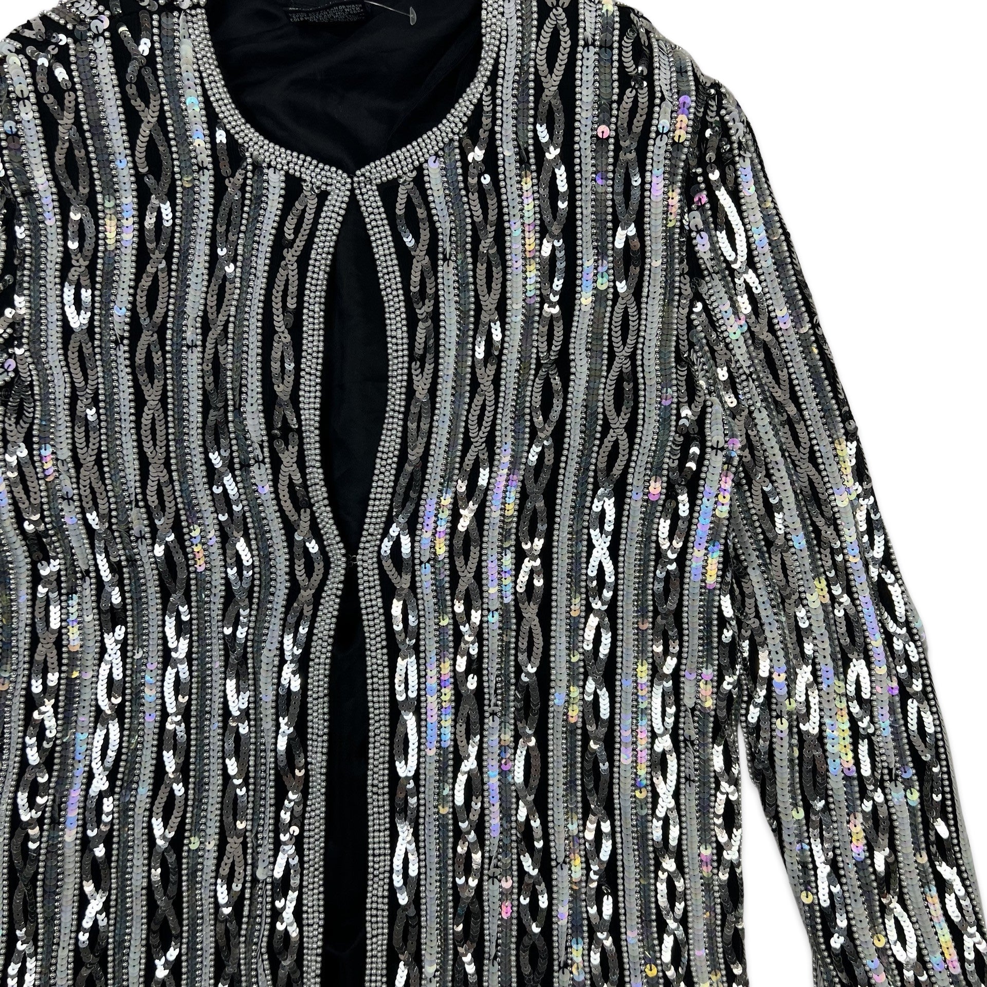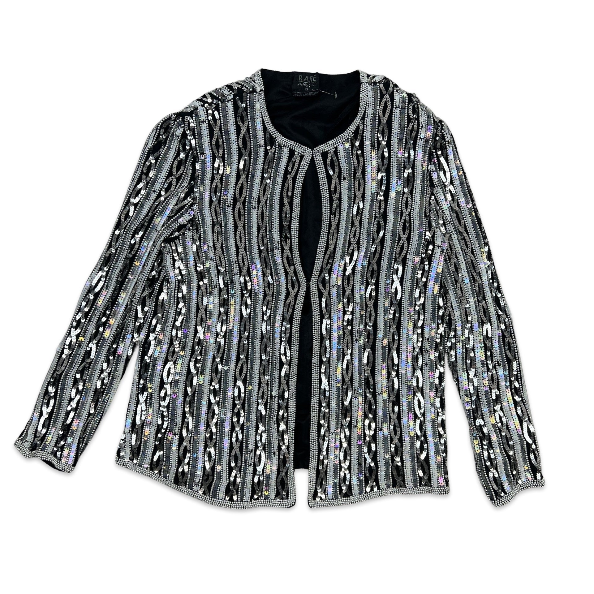 Vintage 80s Sequin Jacket Black Silver 12 14