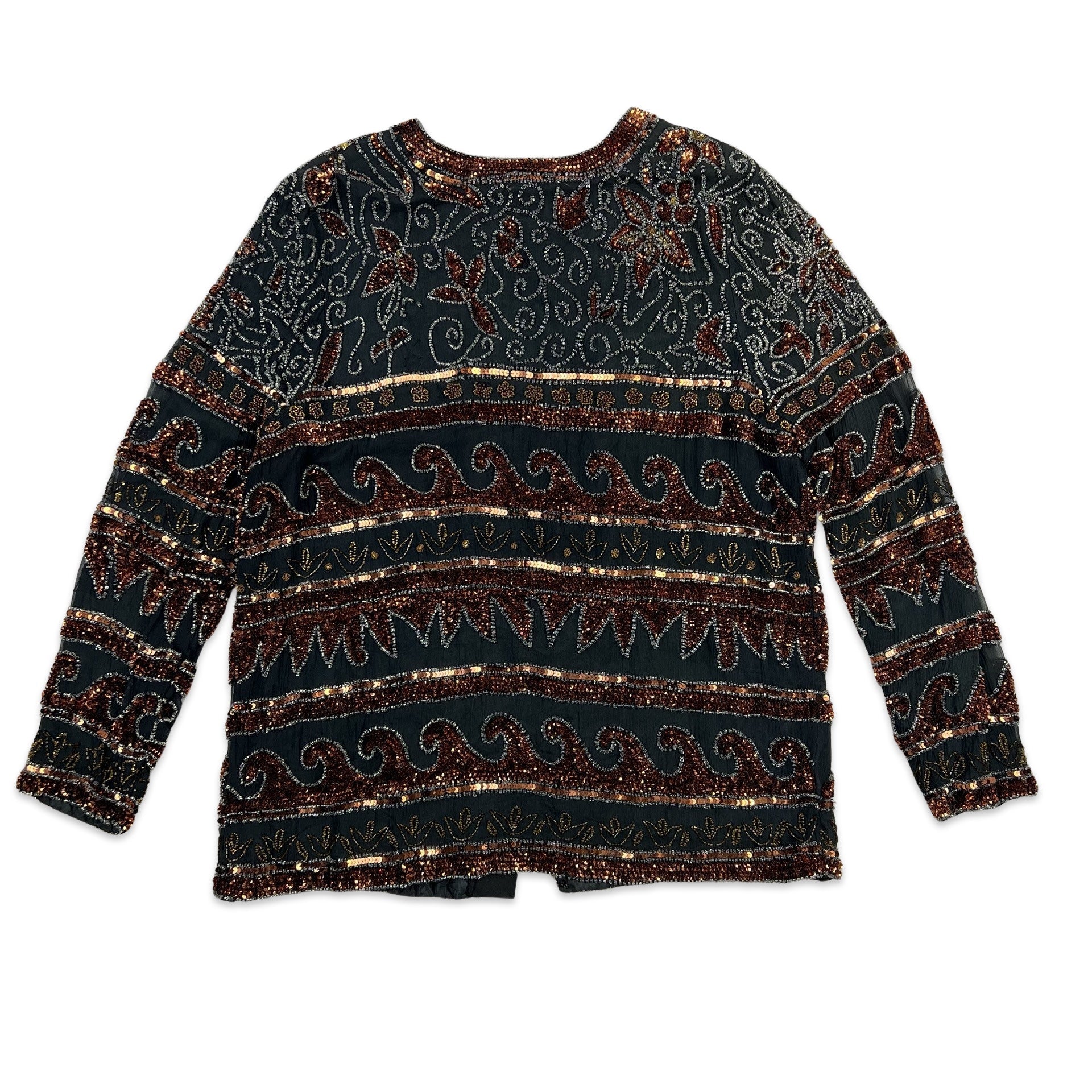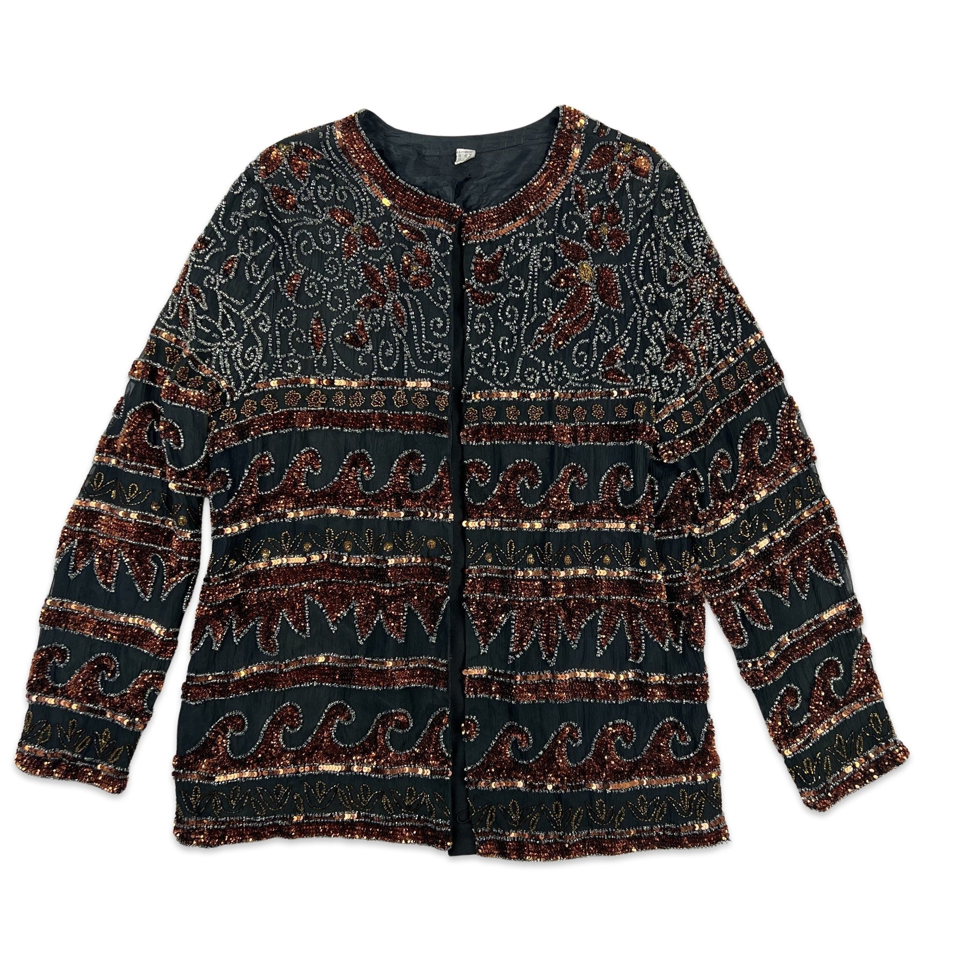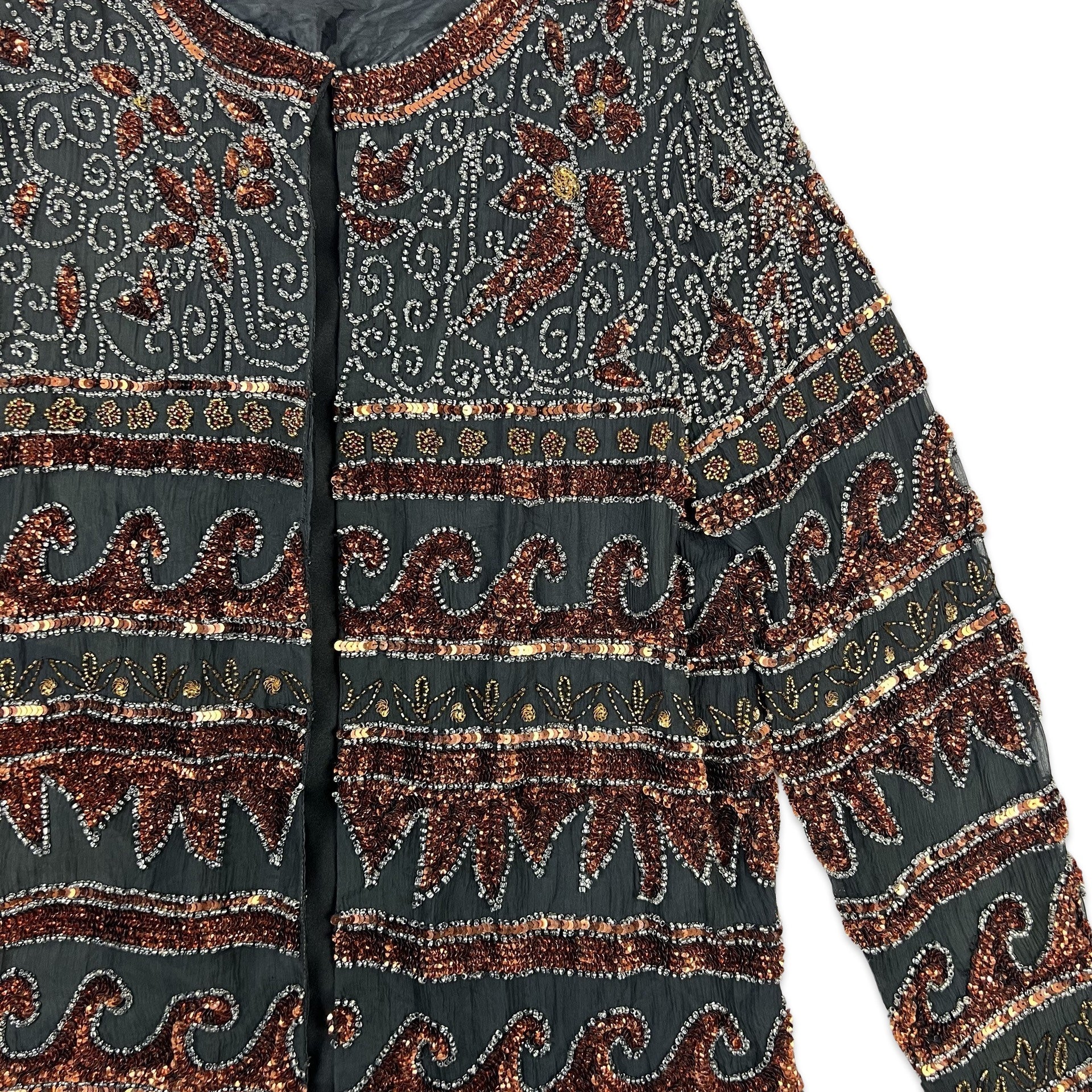 Vintage Sequin Jacket Black Bronze Silver 12 14