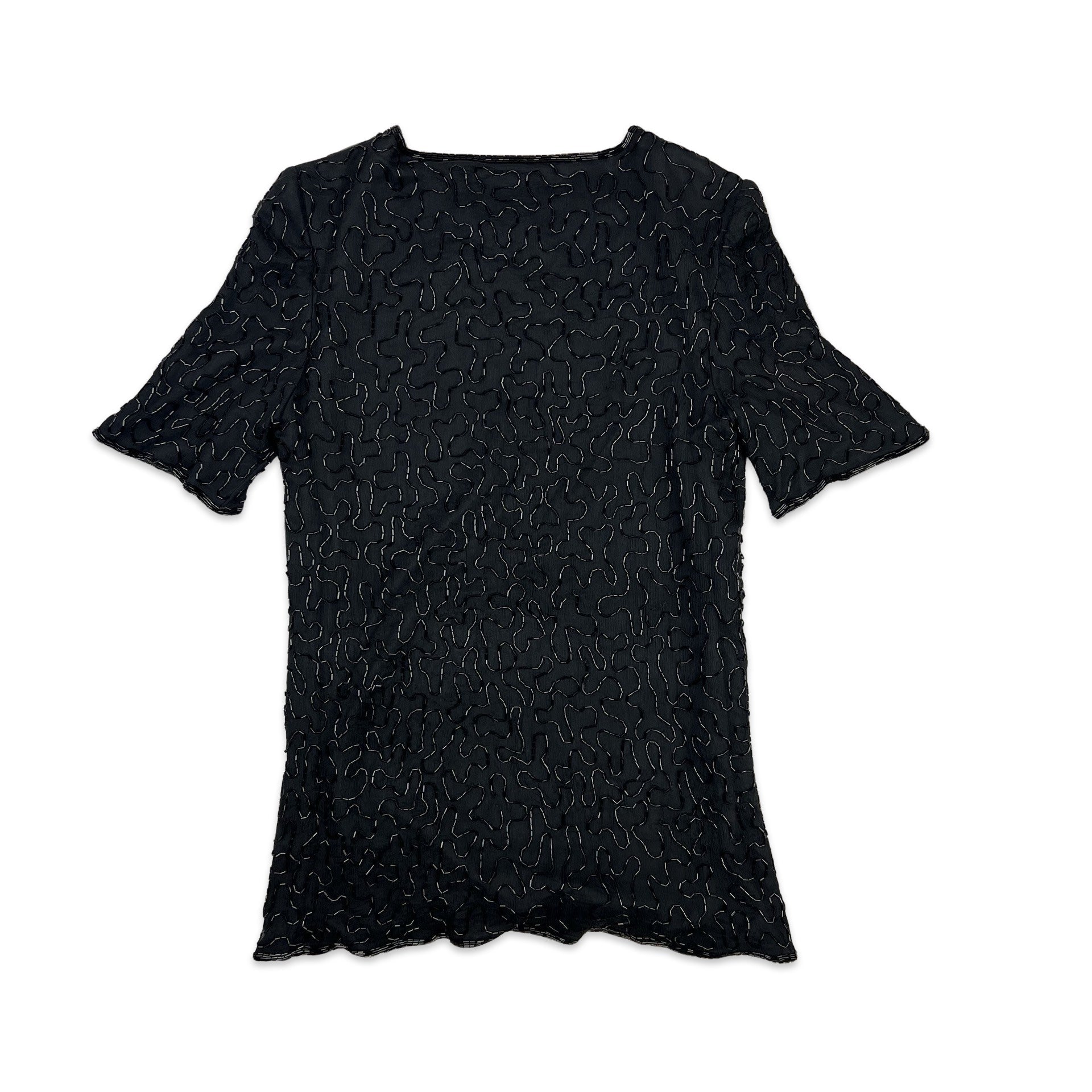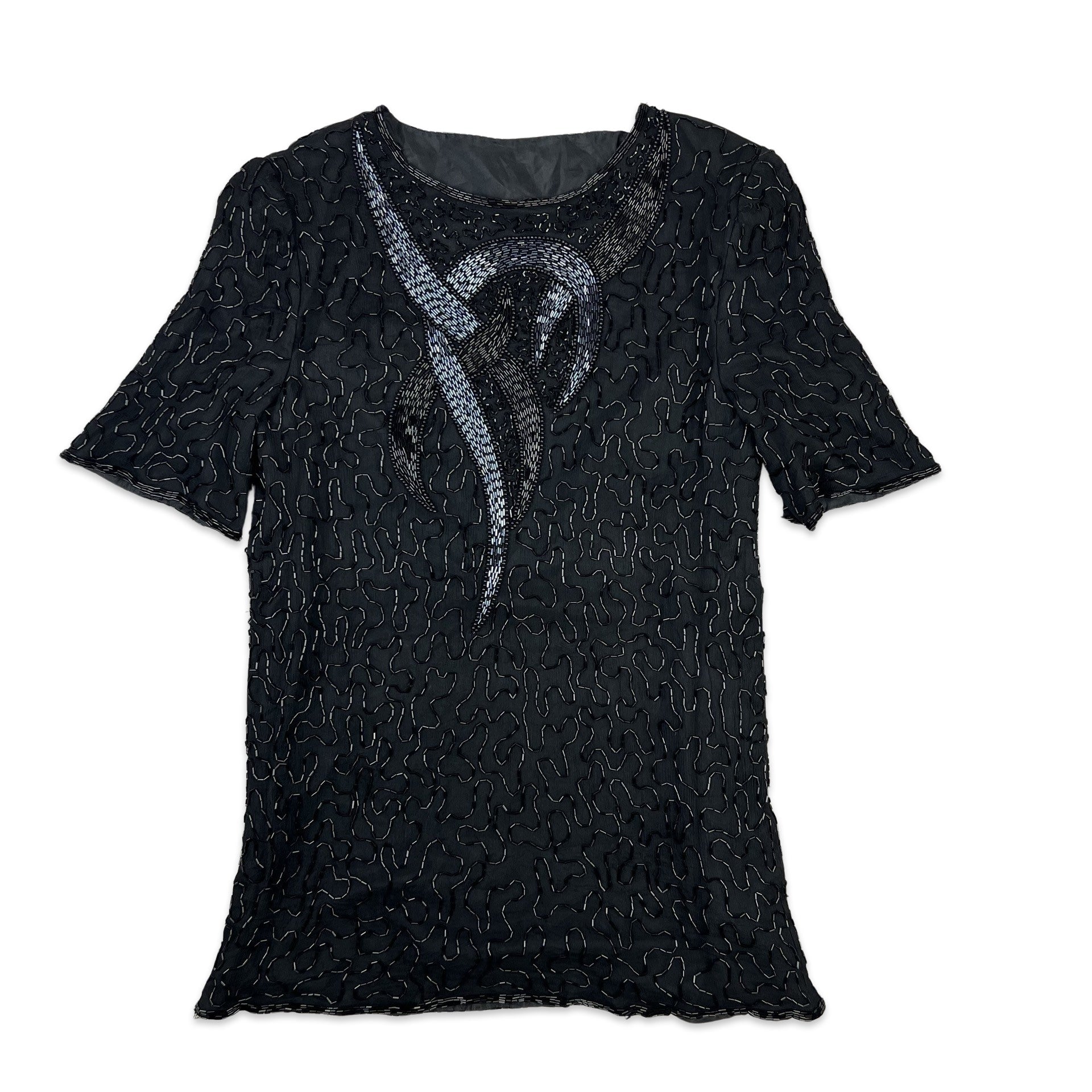 Vintage 80s Boxy Oversized Sequin Blouse Black 8 10