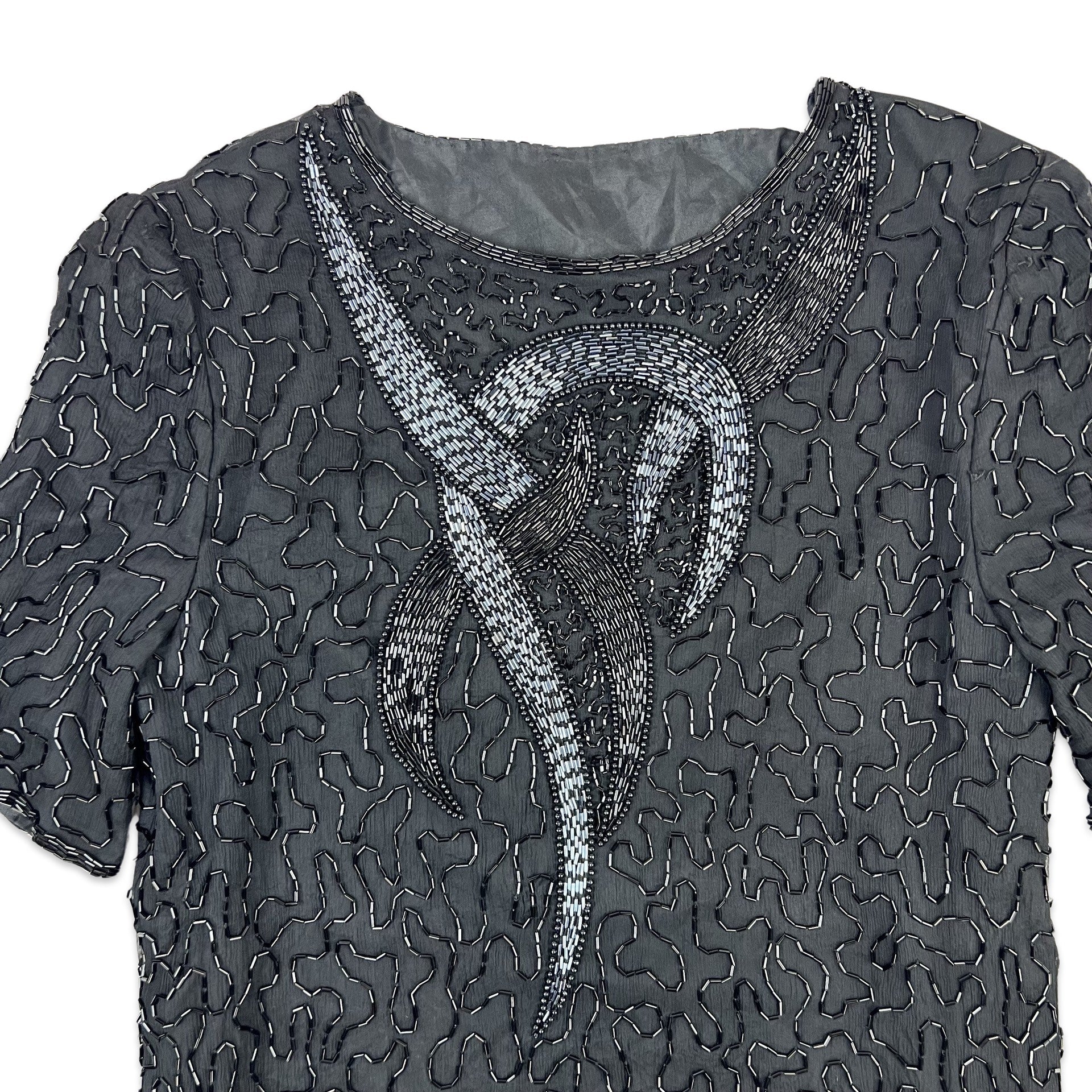 Vintage 80s boxy oversized sequin blouse. Beaded swirl detailing.