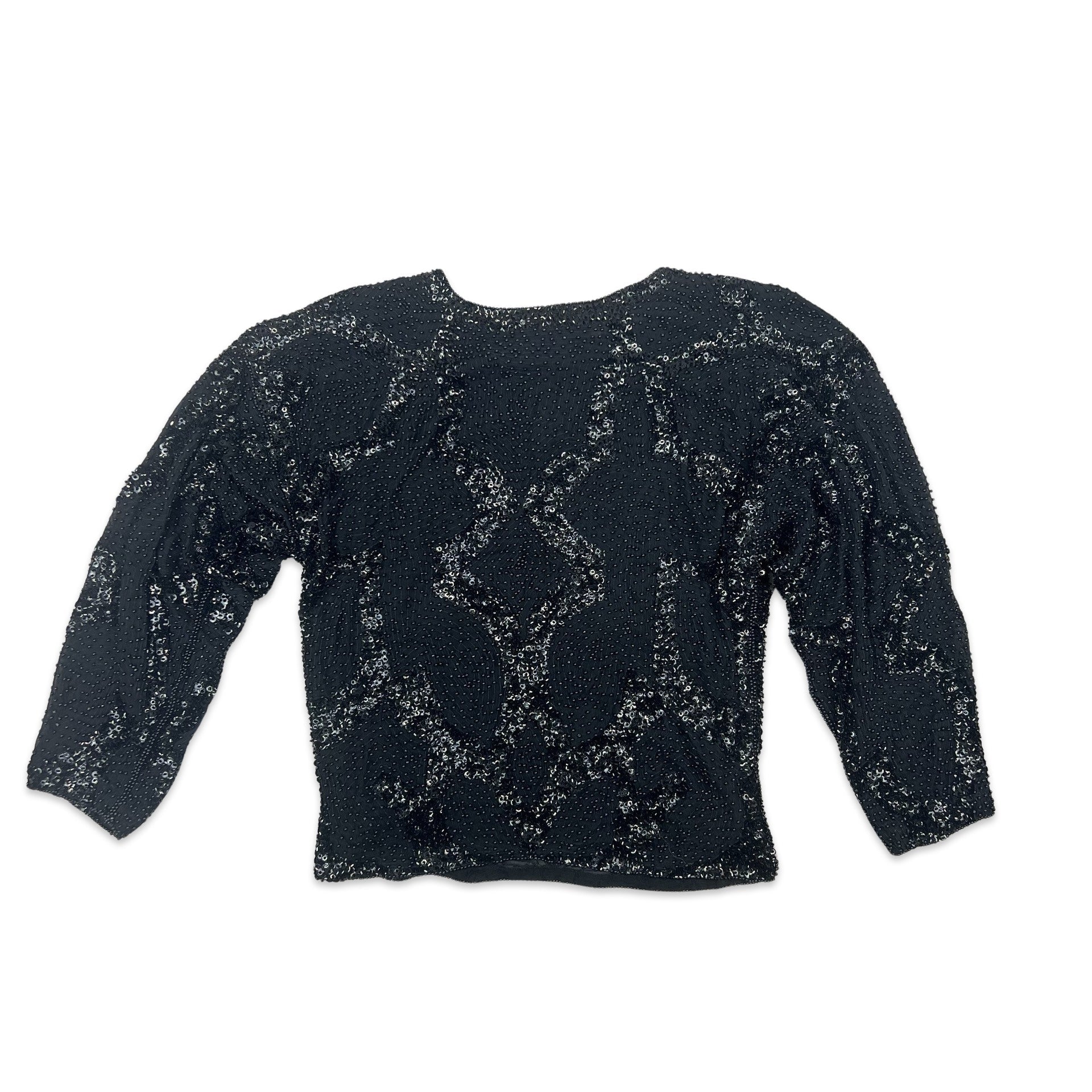 Vintage 80s Oversized Sequin Blouse Black 8 10 12