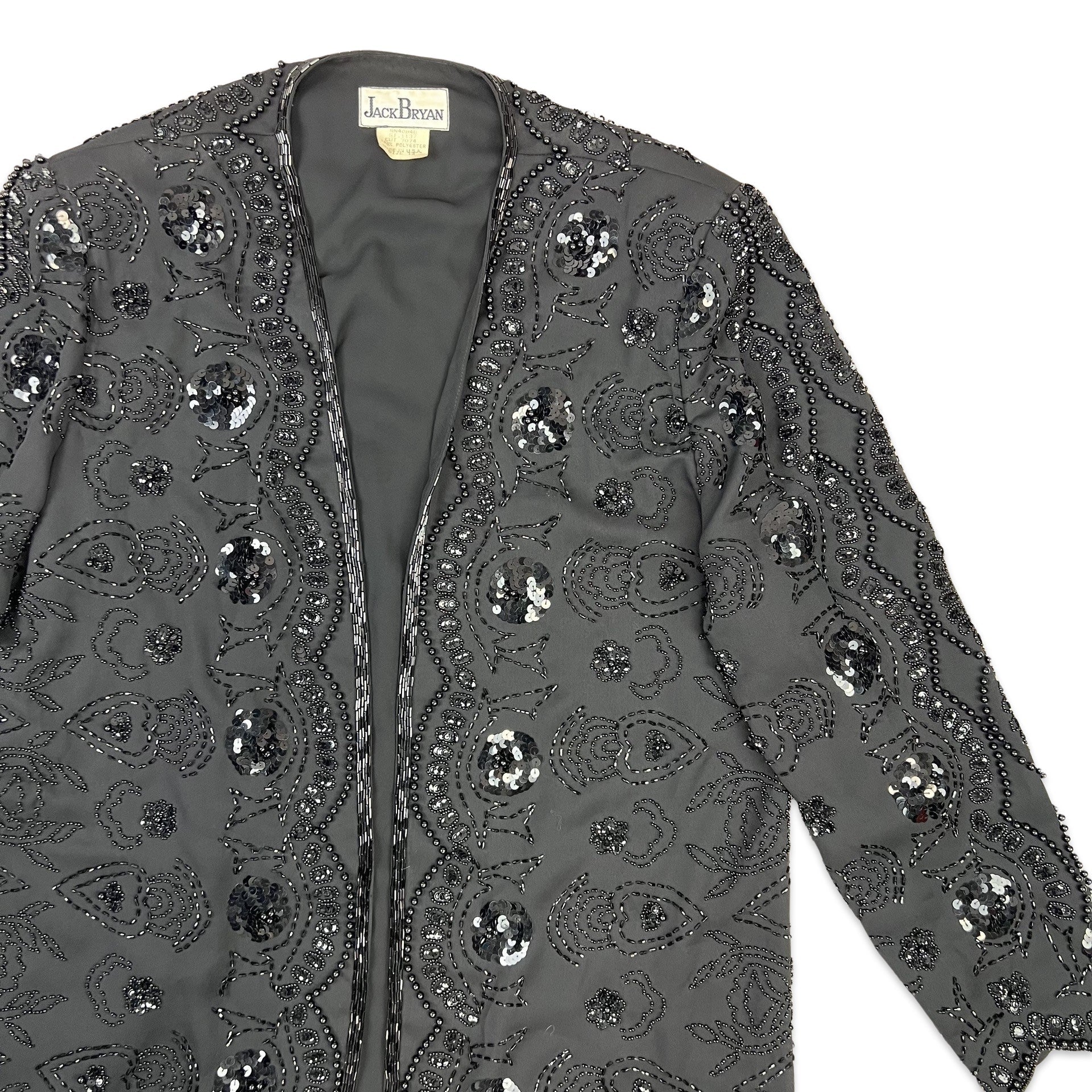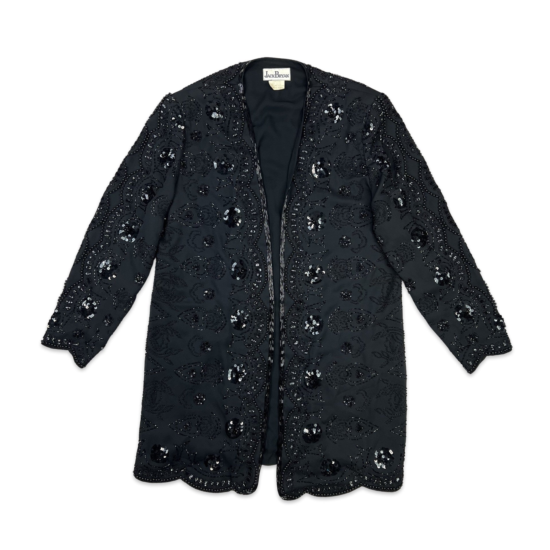Vintage 80s Longline Sequin Jacket Black 12 14