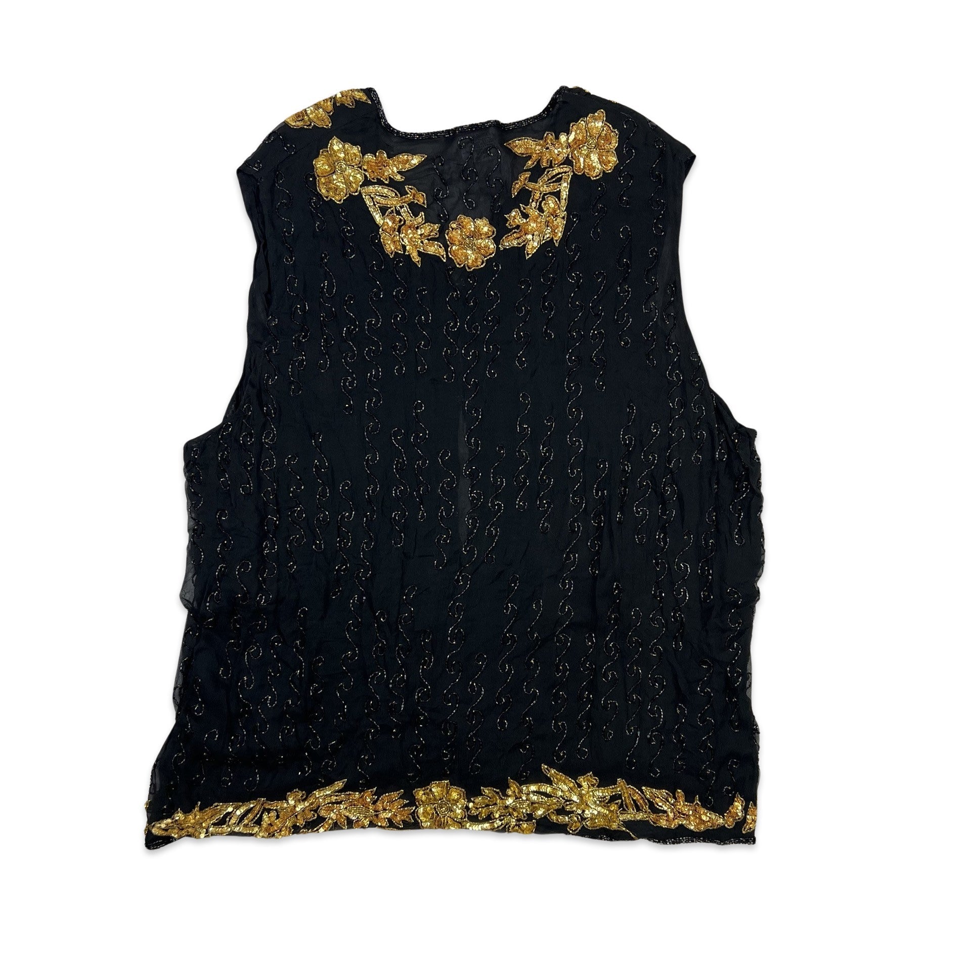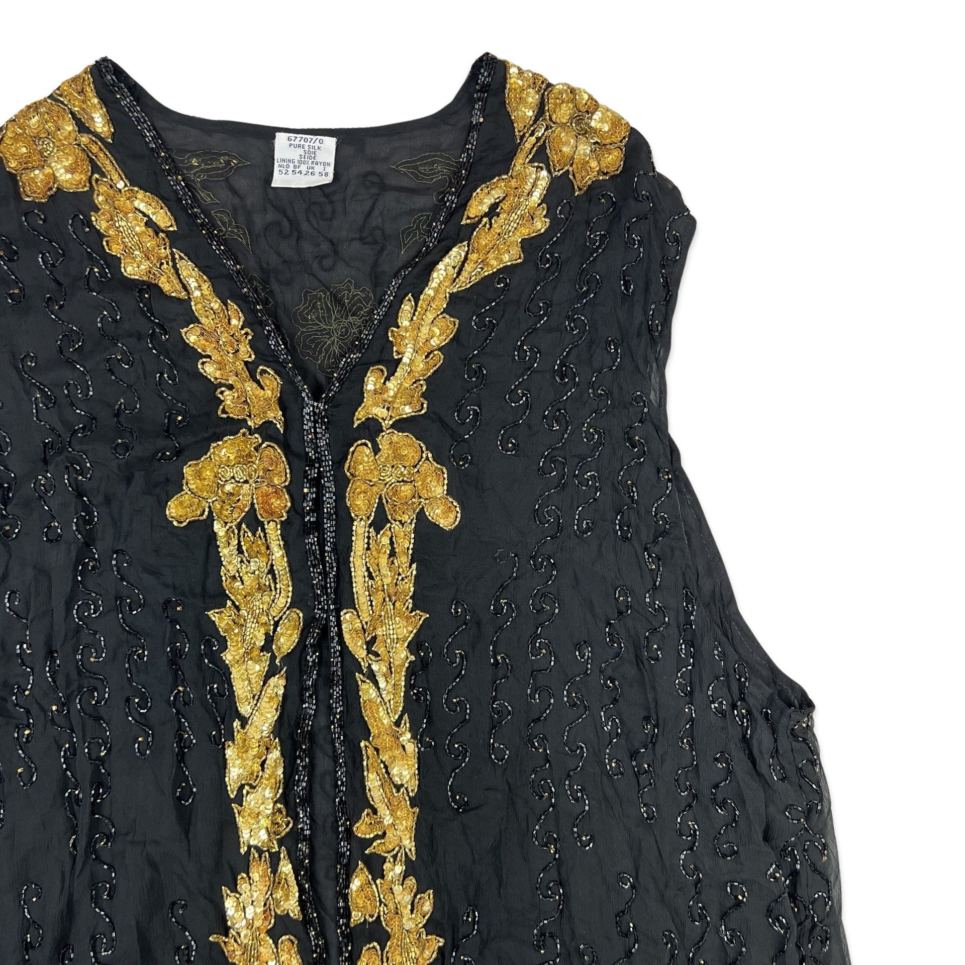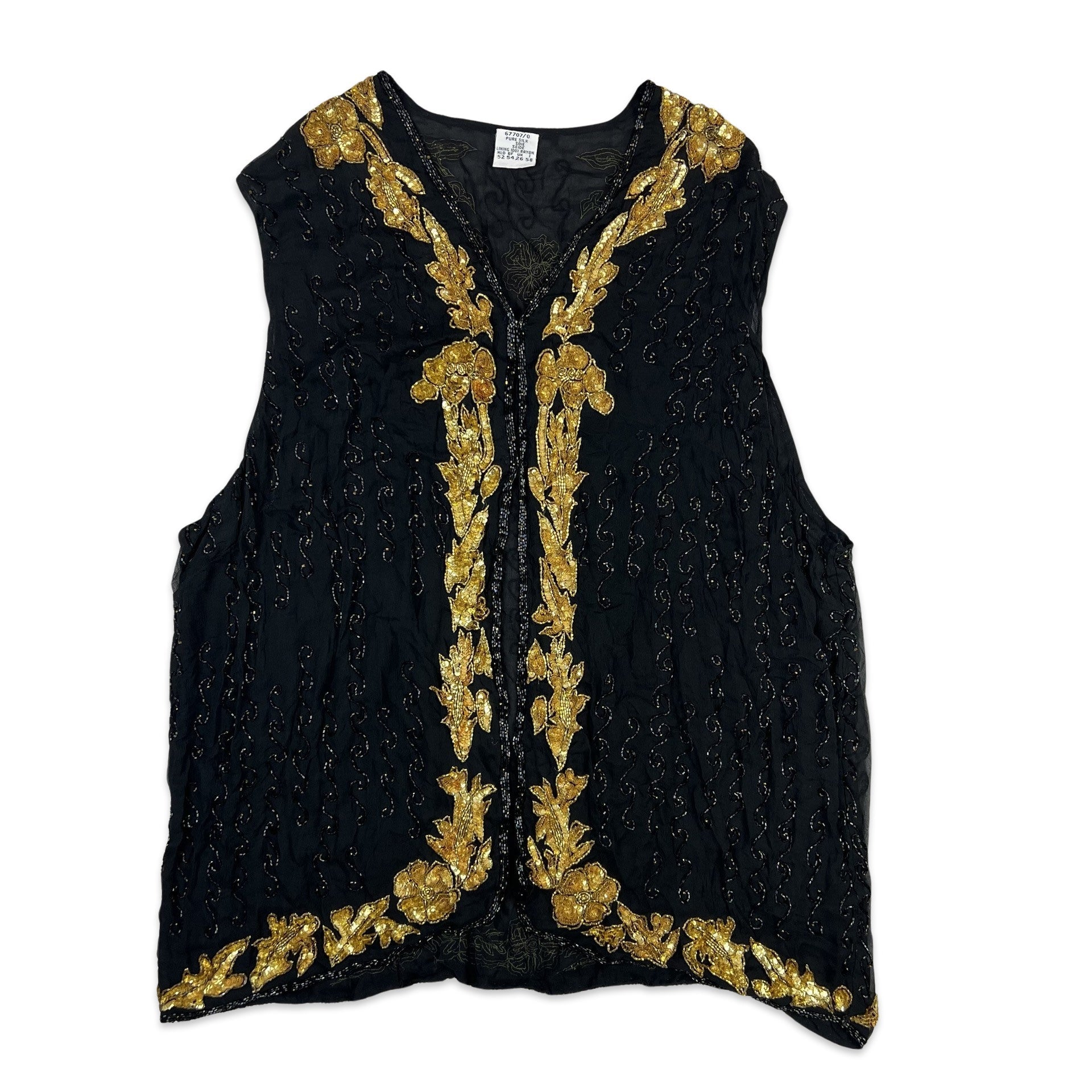 Vintage Sequin Blouse Waistcoat Black Gold 16