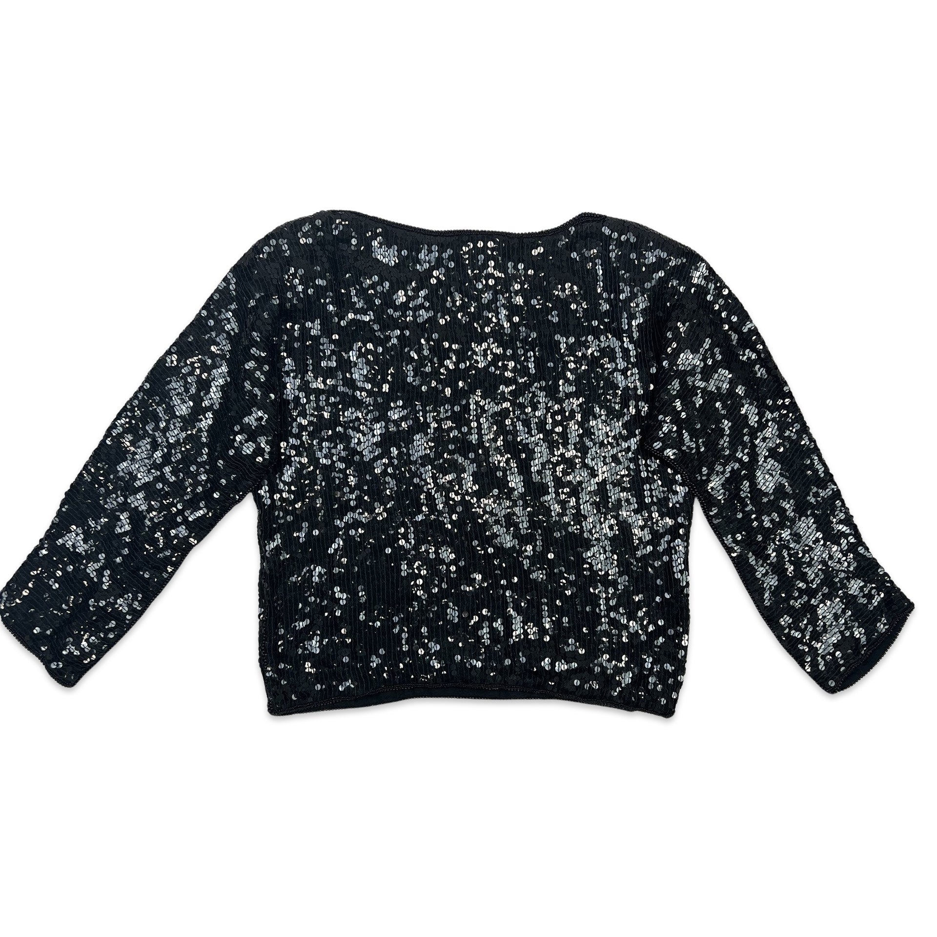 Vintage 80s style long sleeve sequin blouse. Paisley sequin pattern.