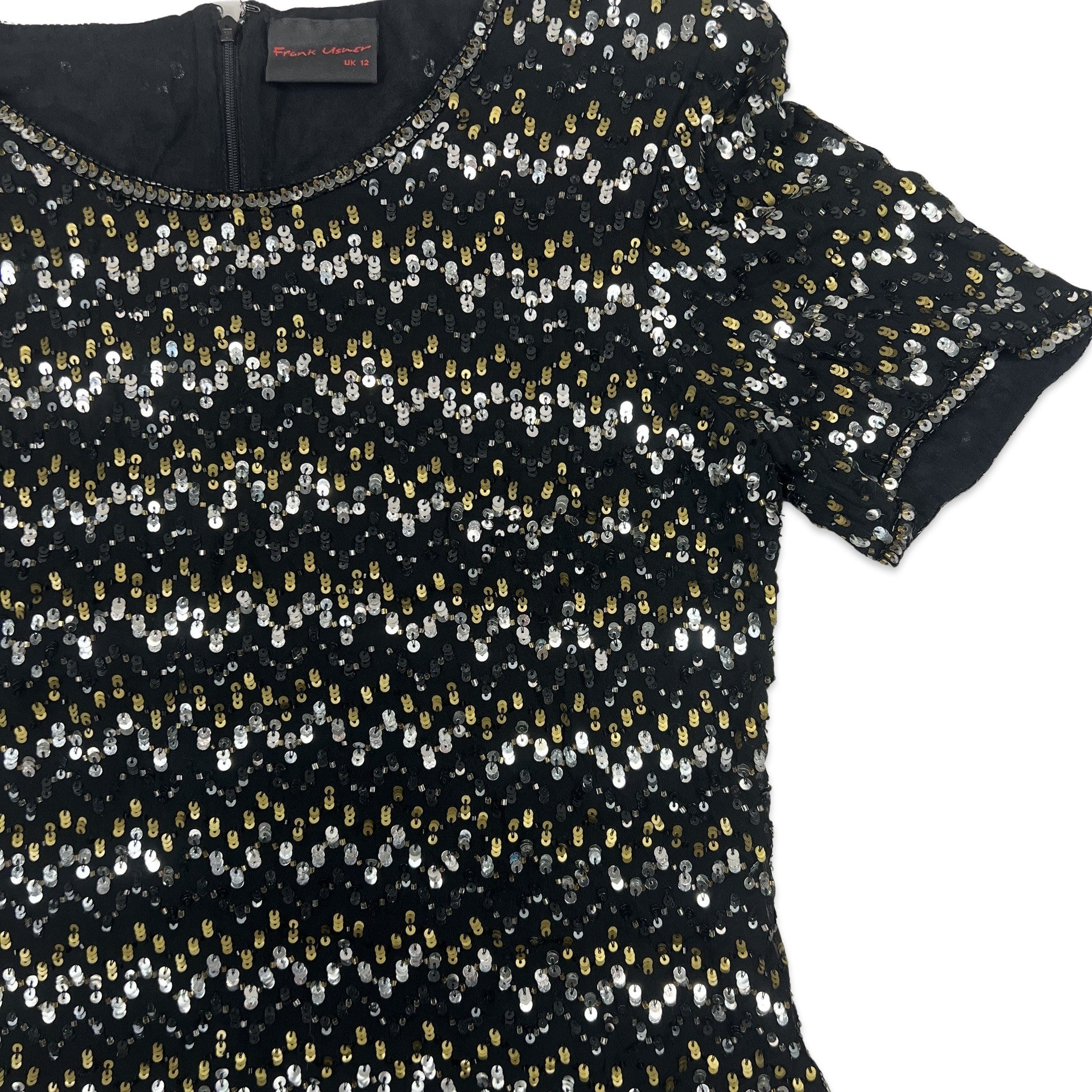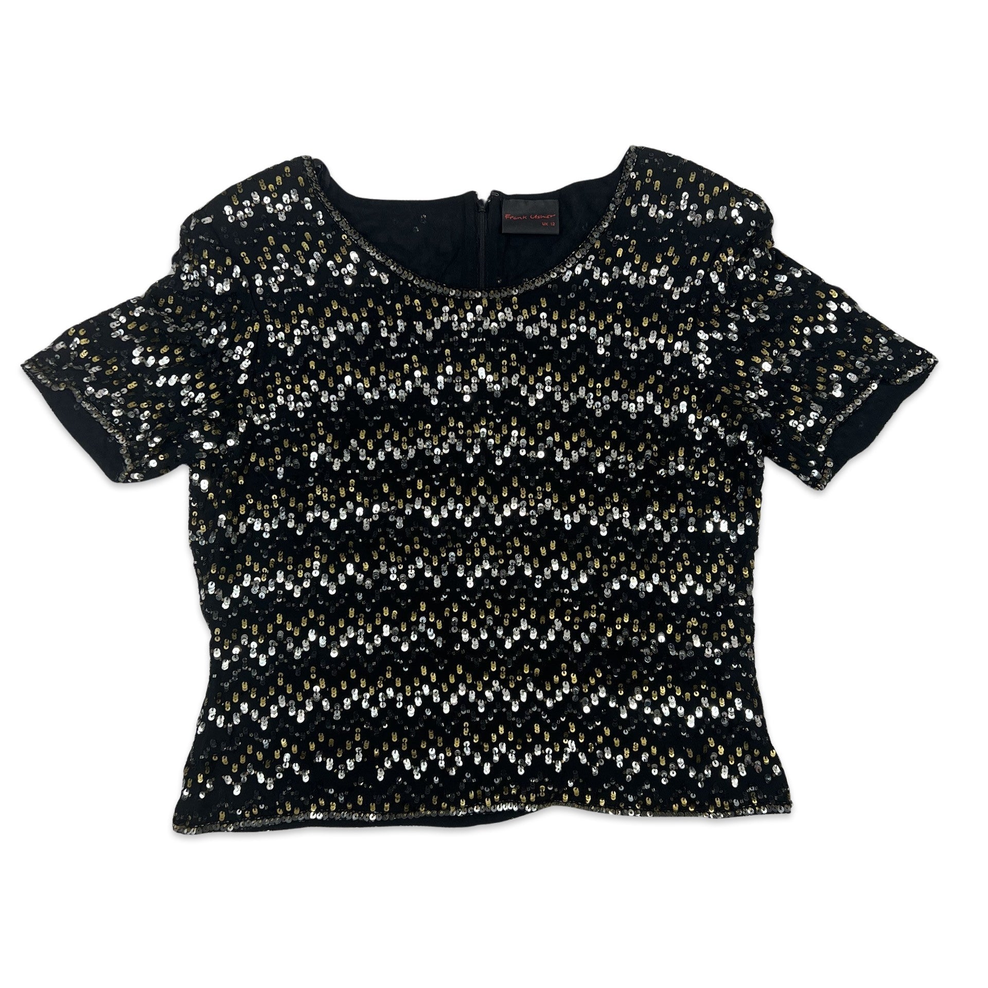 Vintage 80s Boxy Oversized Sequin Blouse Black Gold Silver 8 10