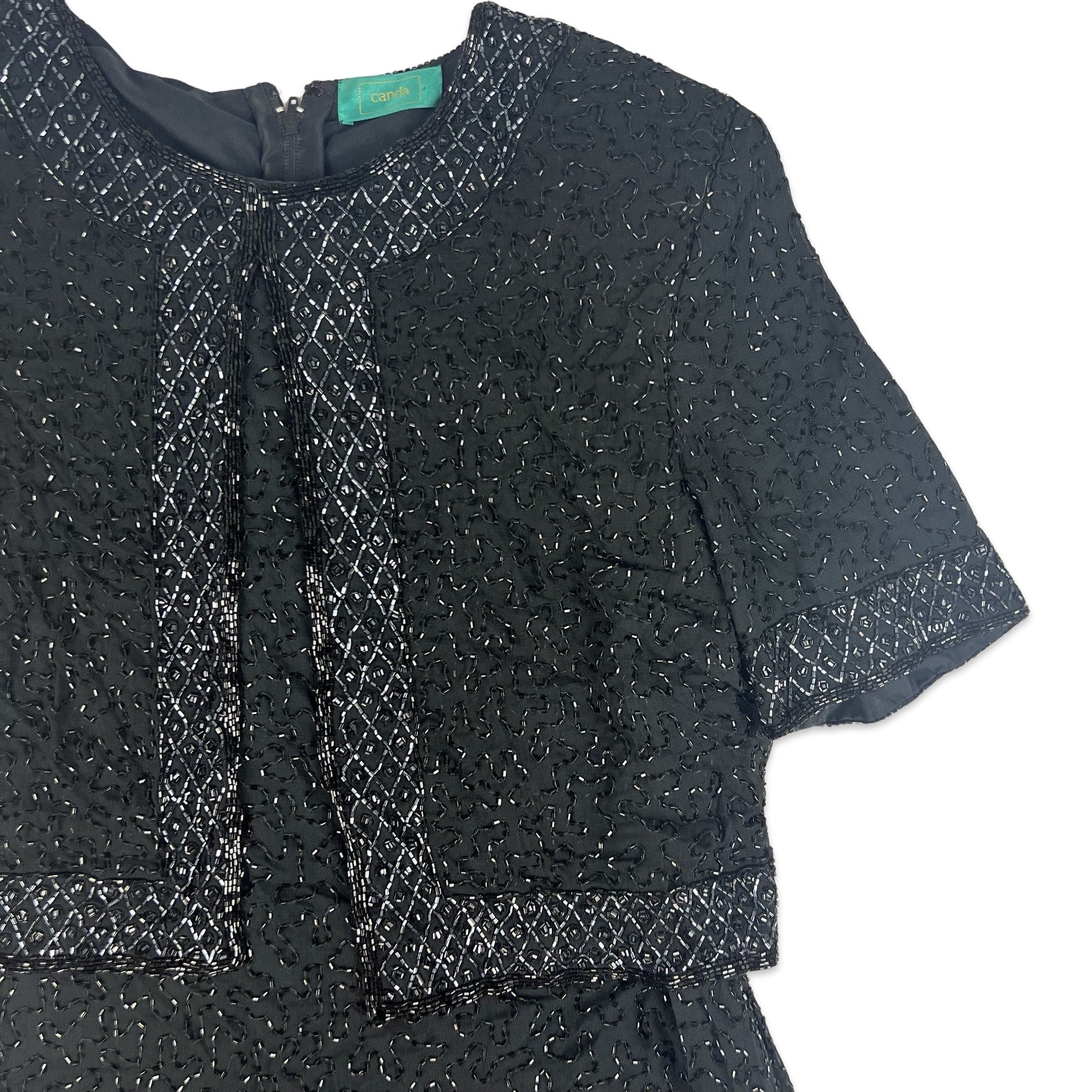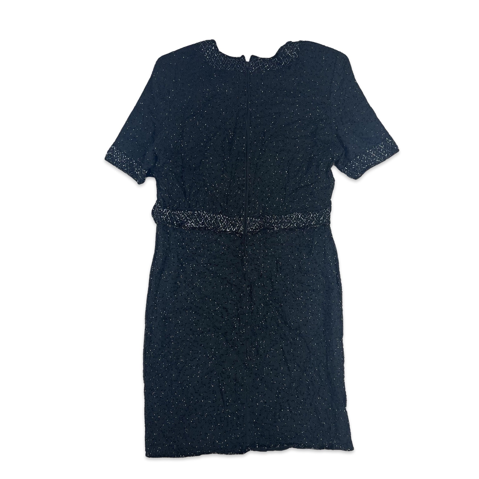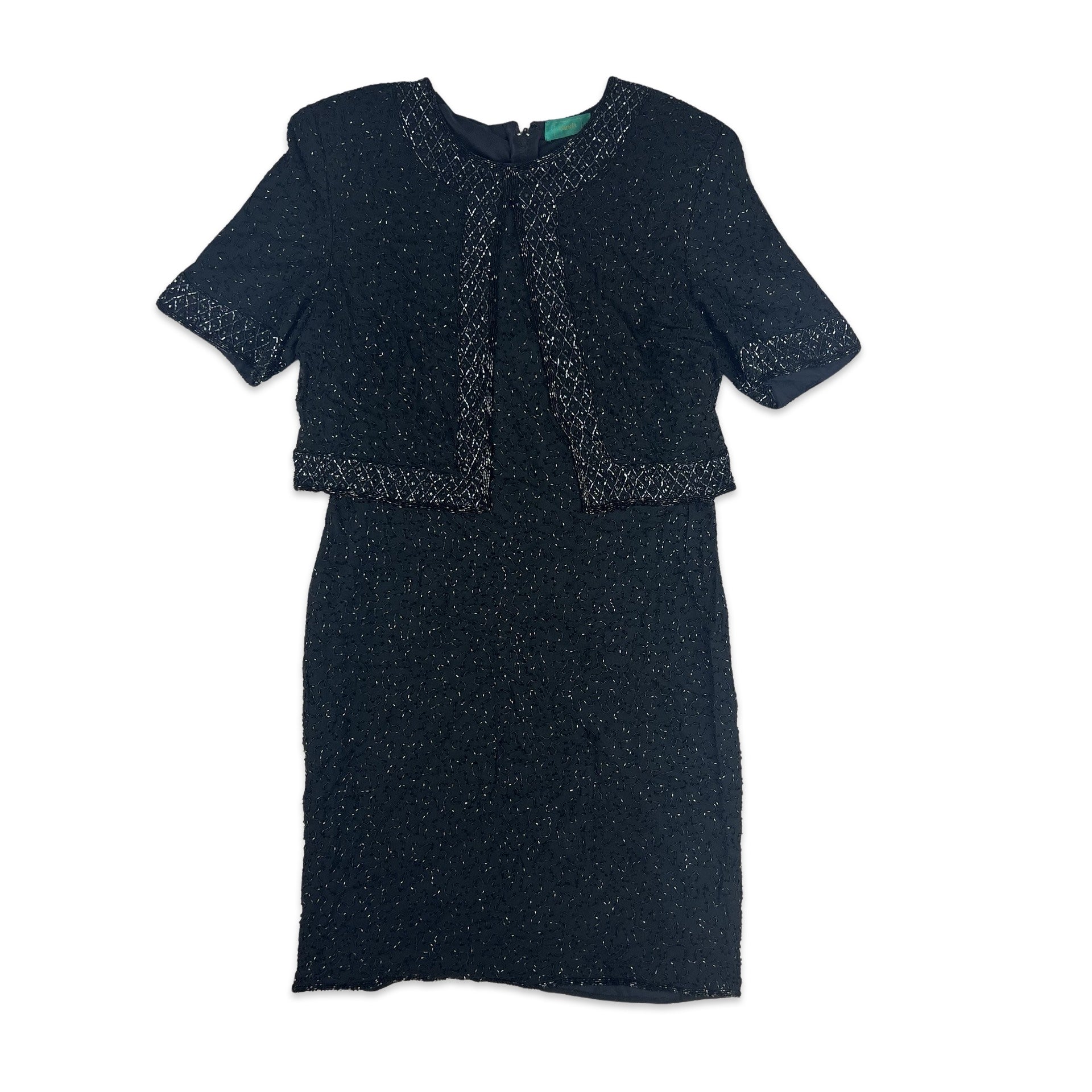 Vintage Black 80s Sequin Midi Dress Black 10 12
