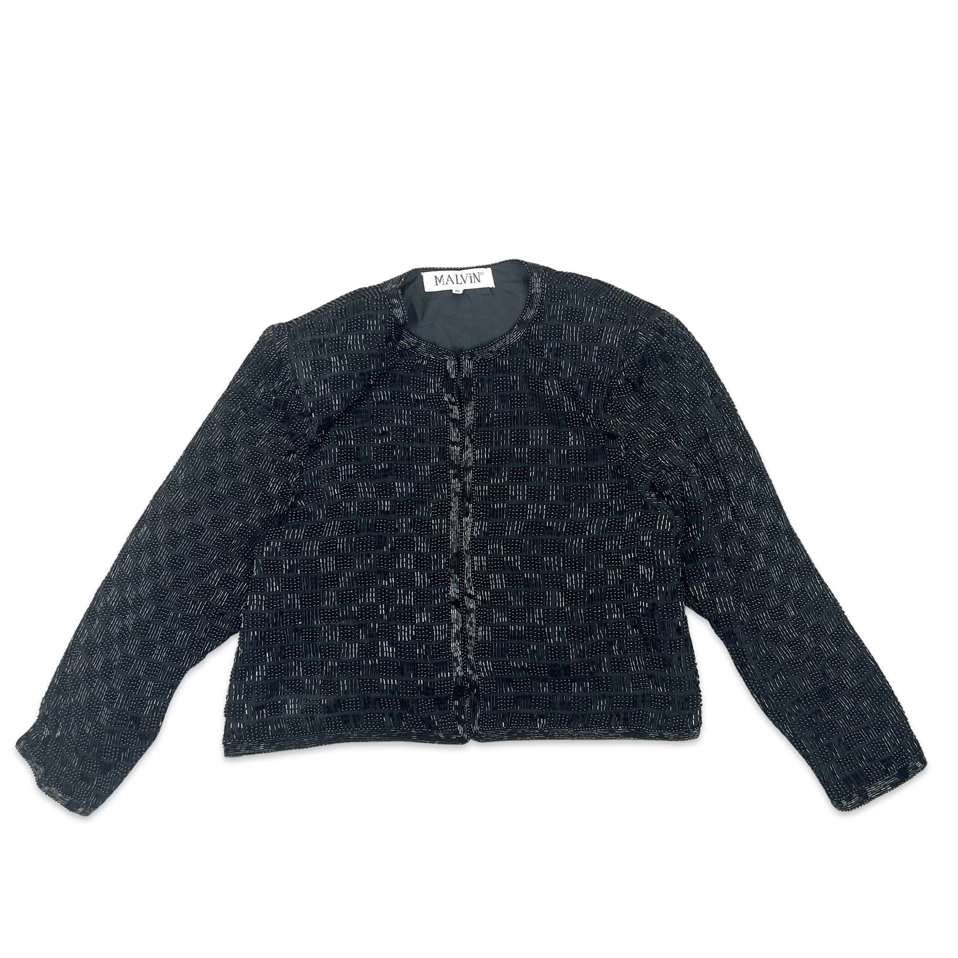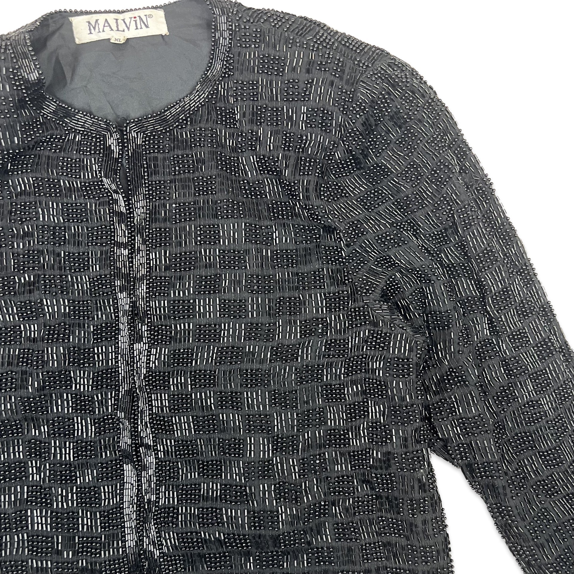 Vintage 80s sequin beaded embellished jacket/cardigan. Clasp fastening. Shoulder pads.