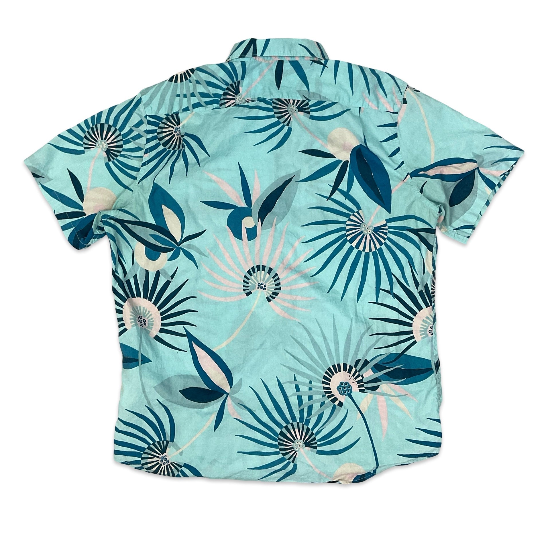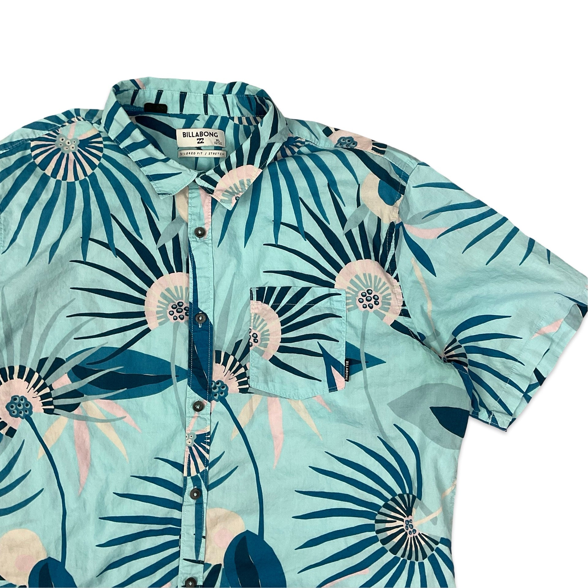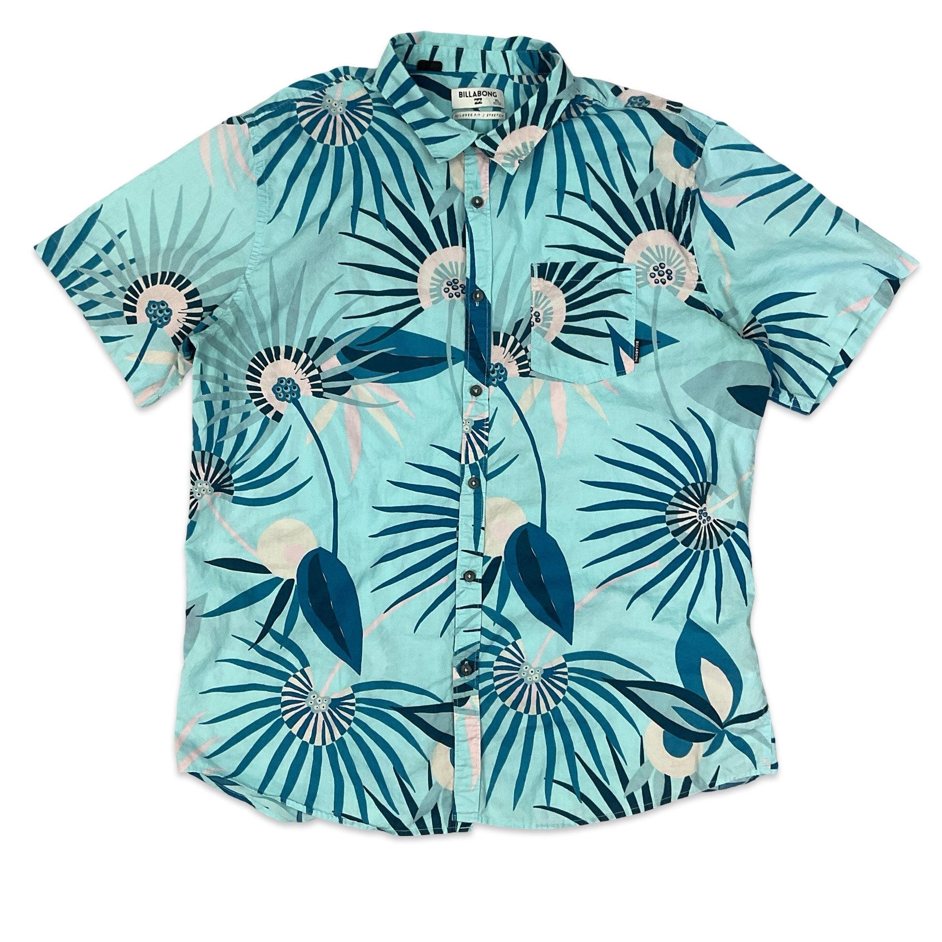 Preloved Billabong men's shirt in blue with abstract all-over print.