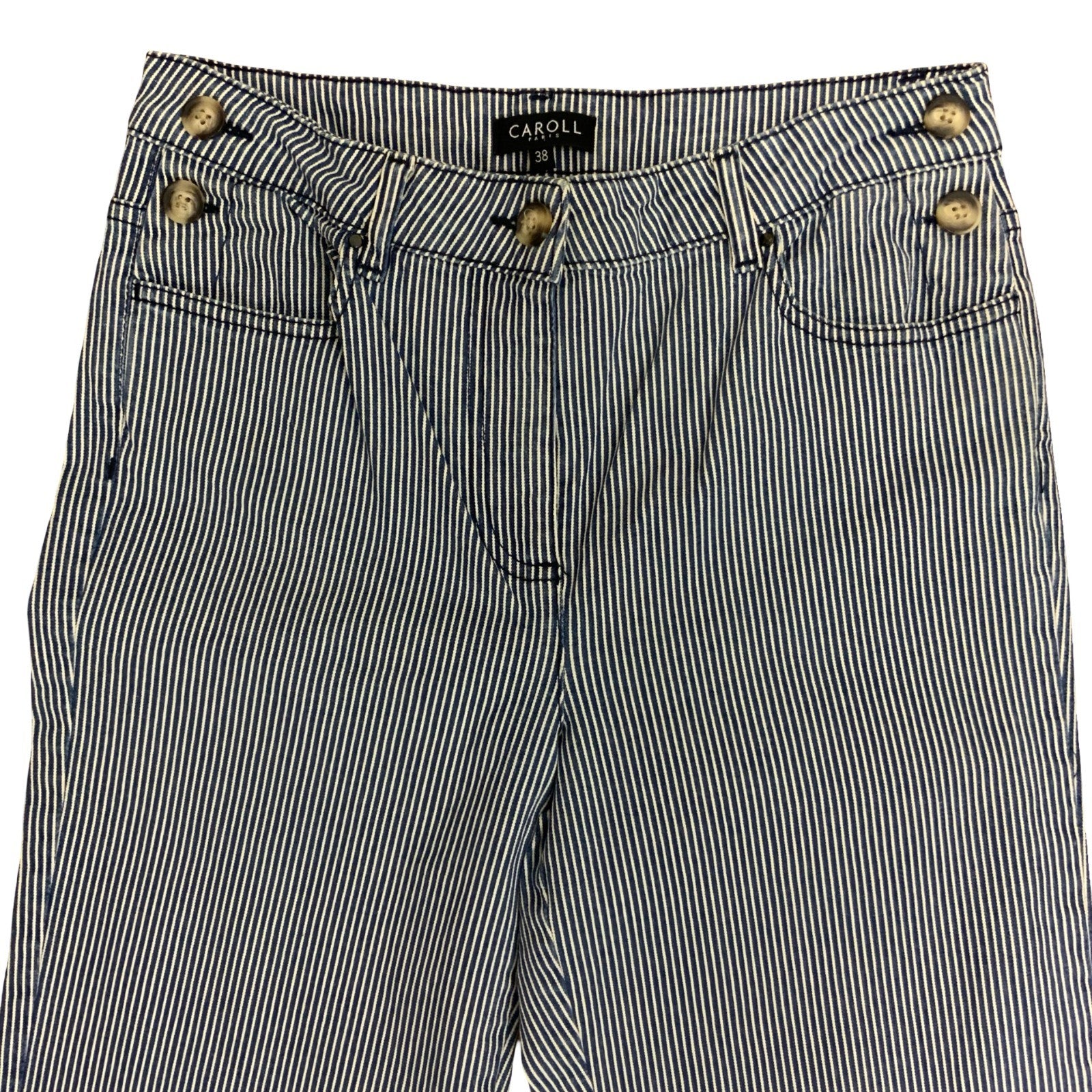 'CAROLL PARIS' STRIPED BLUE WHITE HIGH-WAIST WIDE-LEG DENIM JEANS M 12