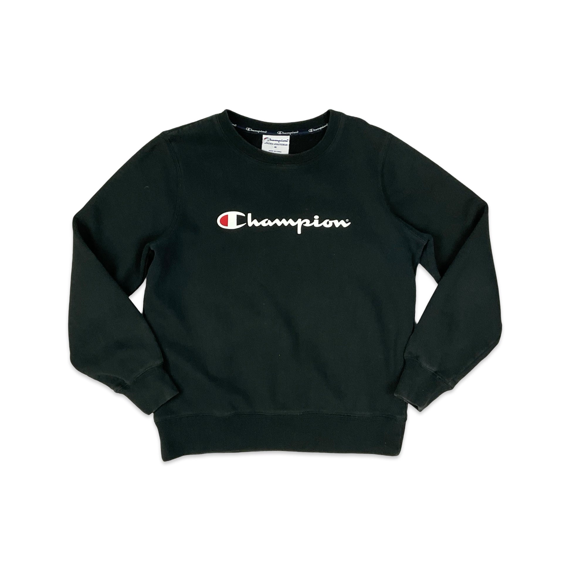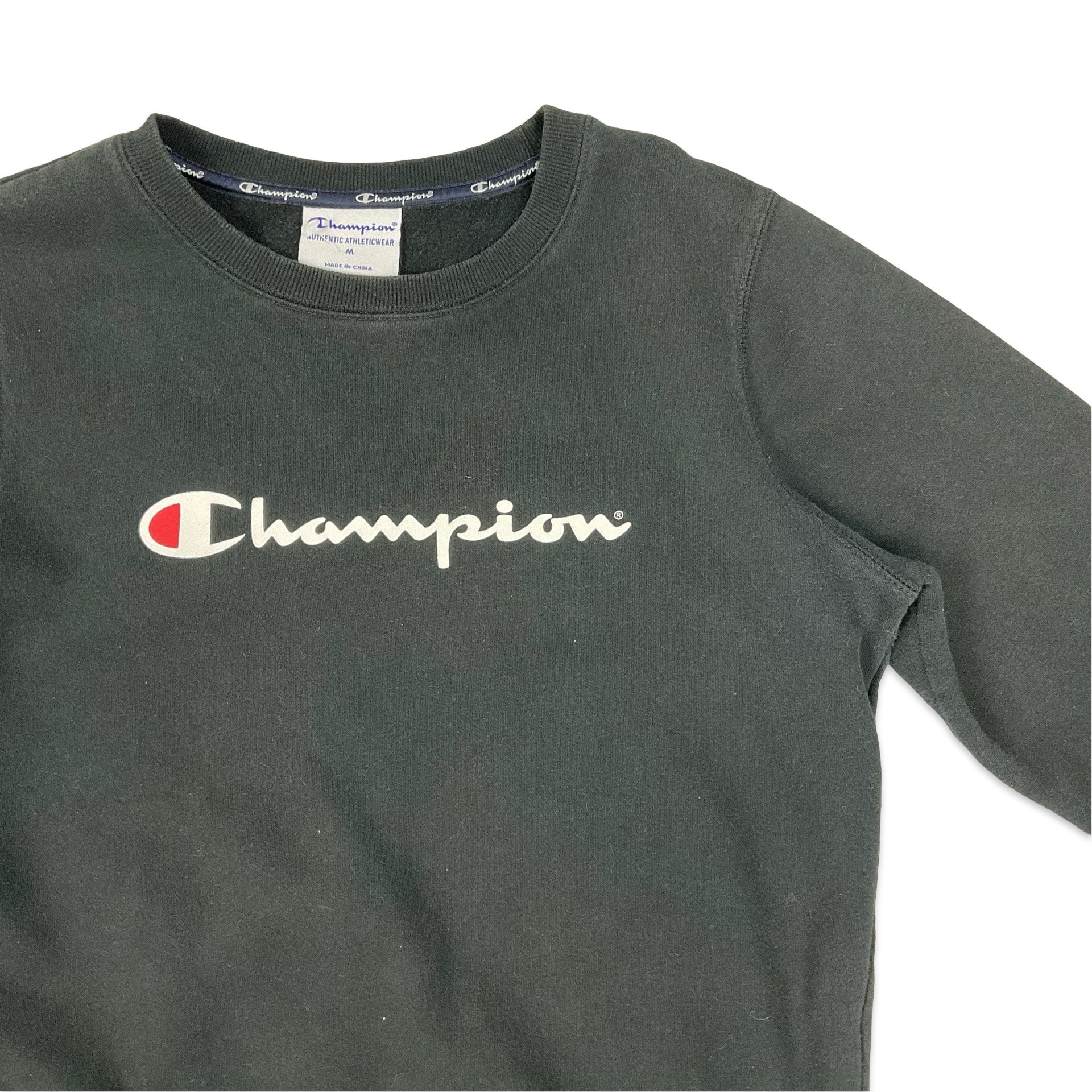 Champion Black Spell Out Crew Neck Sweatshirt M L