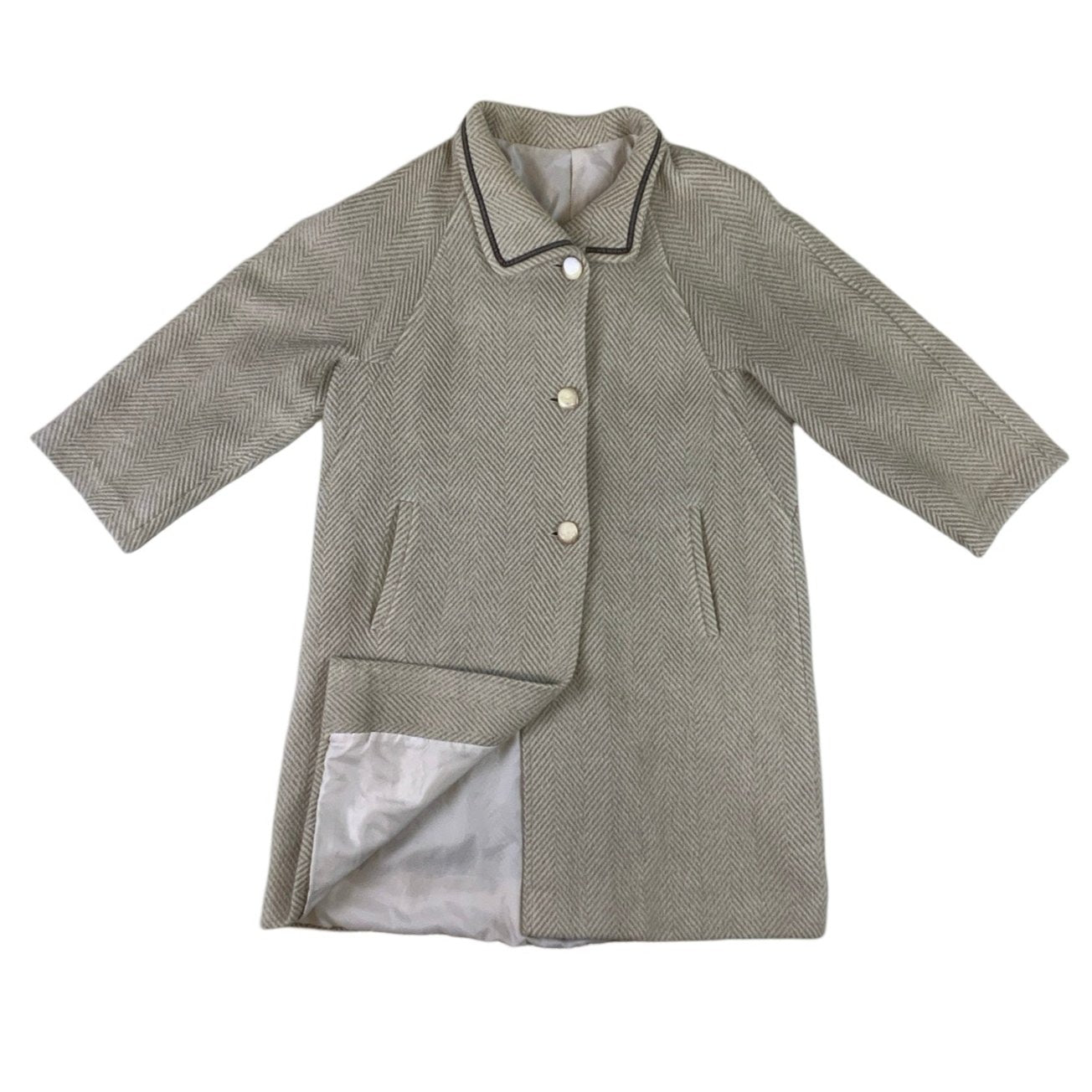 Vintage 90s trench coat.two front pockets in white and grey. front button up fastening. 100% wool.