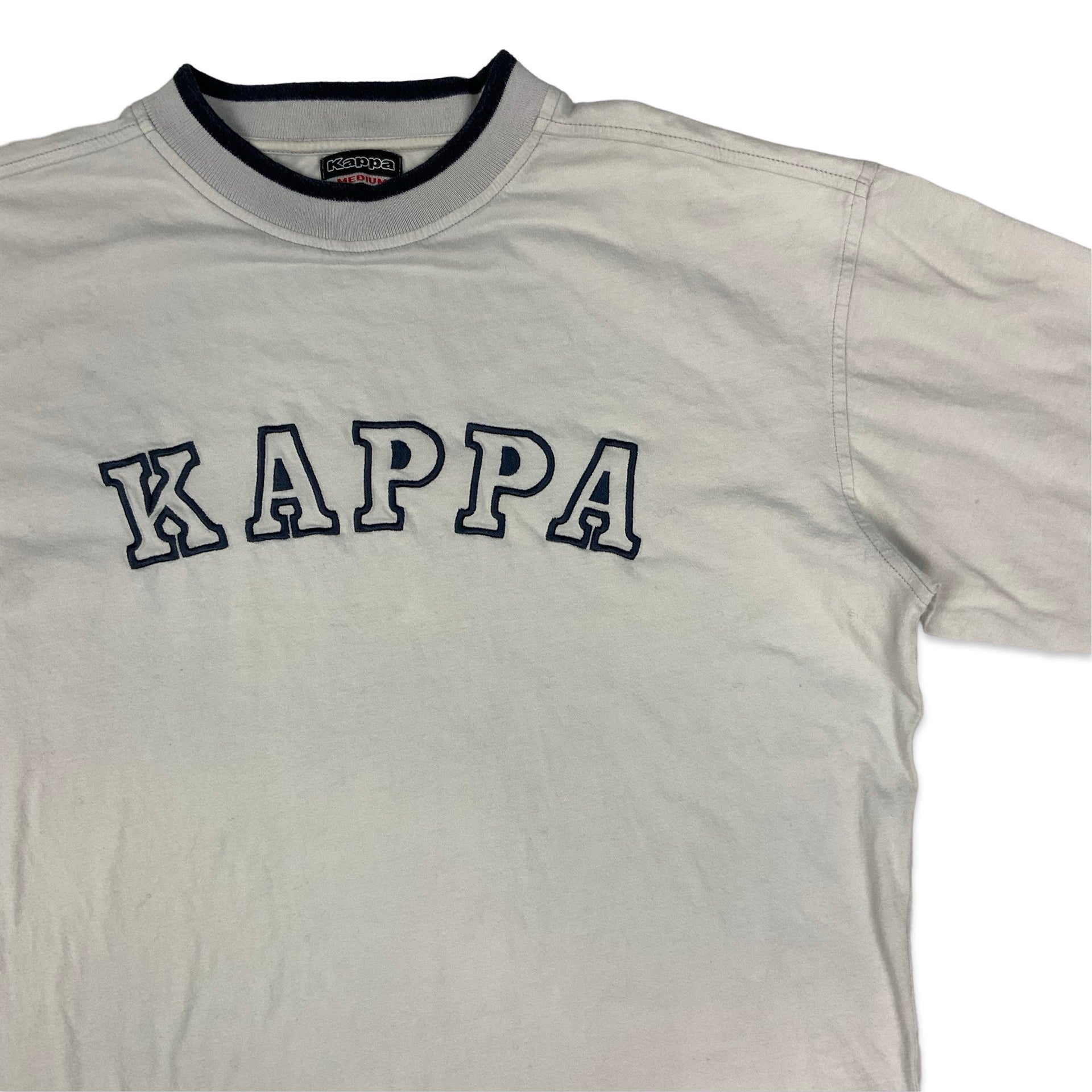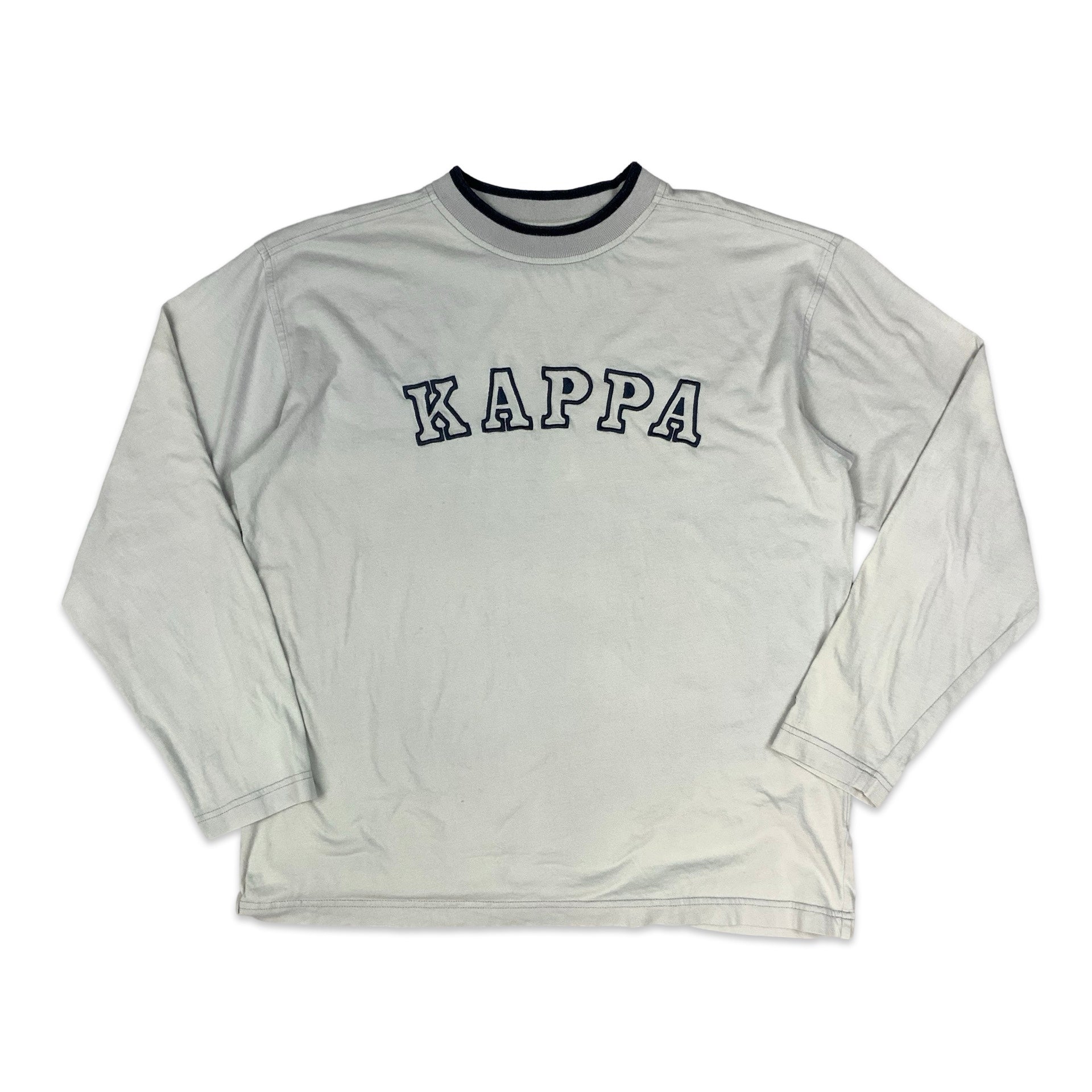 Preloved Kappa long sleeved white tee with embroidered spell out across chest.
