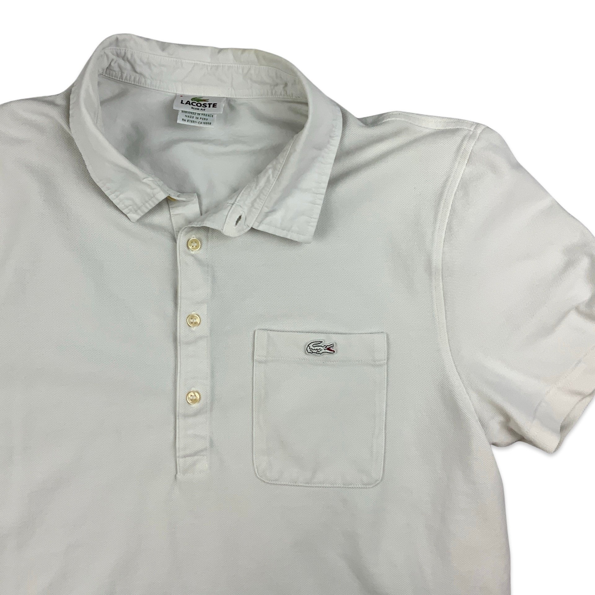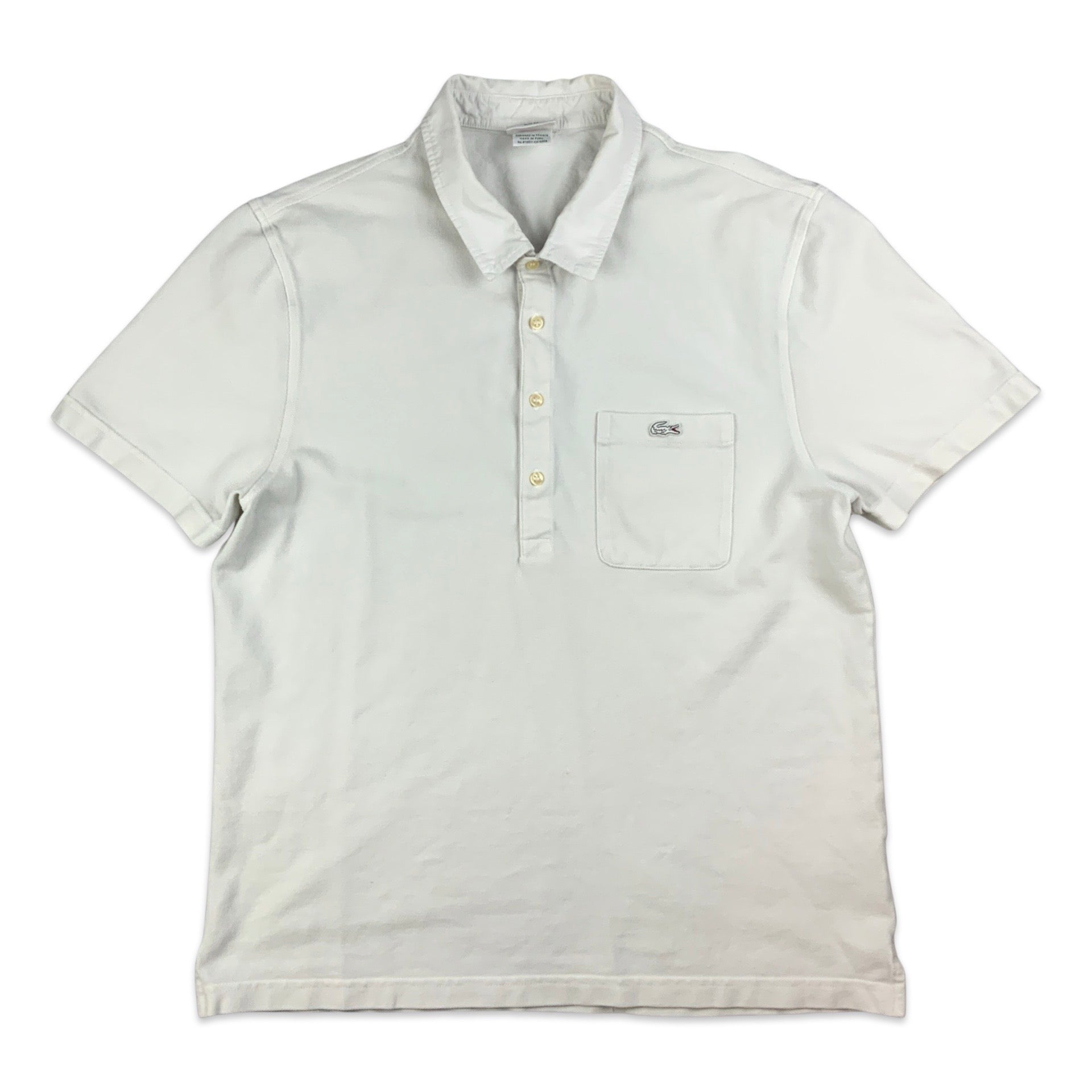 Preloved Lacoste men's white polo shirt with chest pocket.