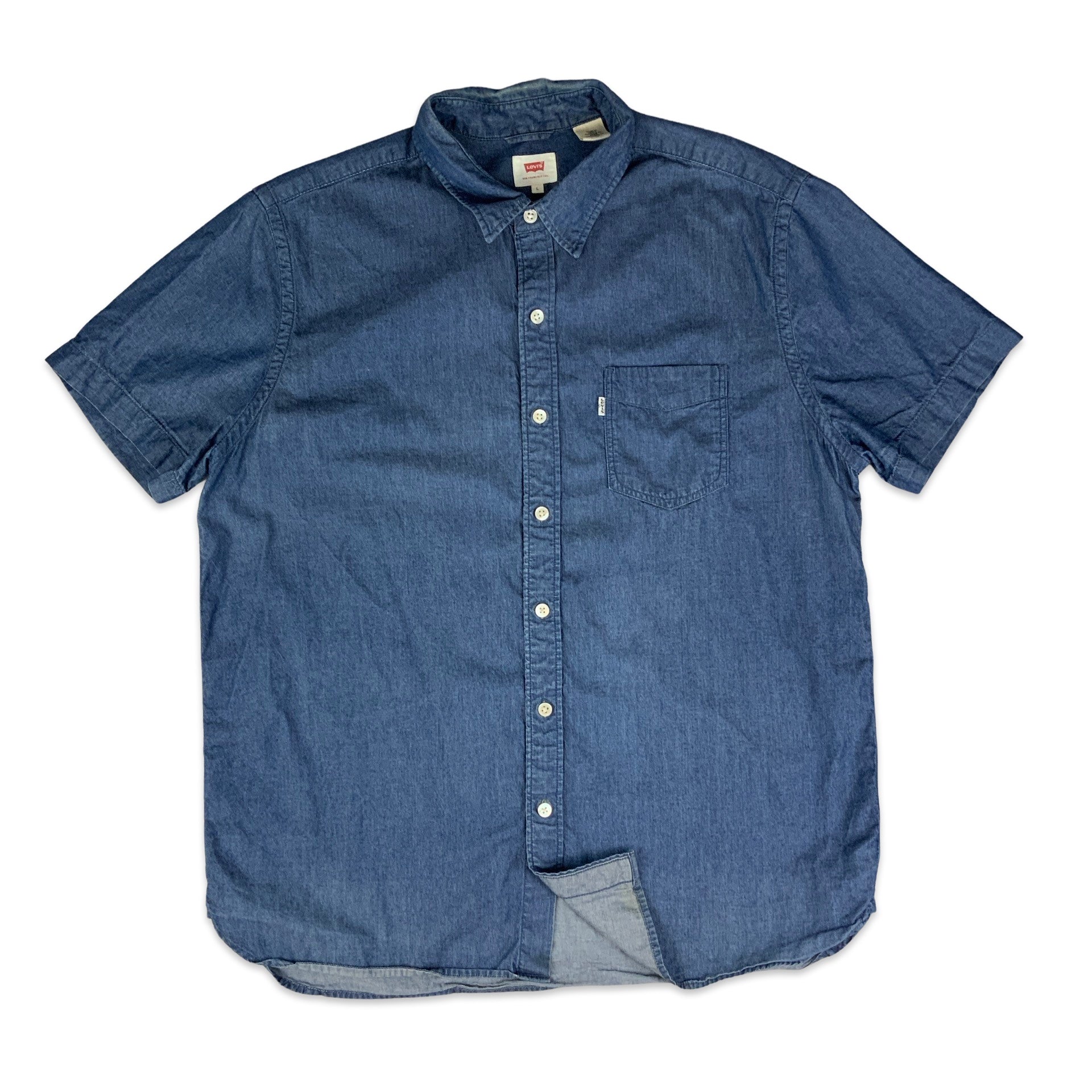Preloved Levi's button-up deep blue chambray short sleeved shirt.
