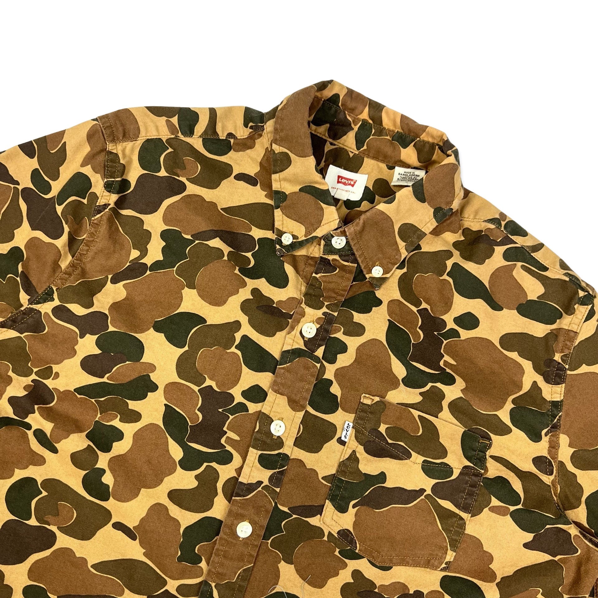 Preloved Levi's canvas button-up shirt with chest pocket in hunting camouflage.