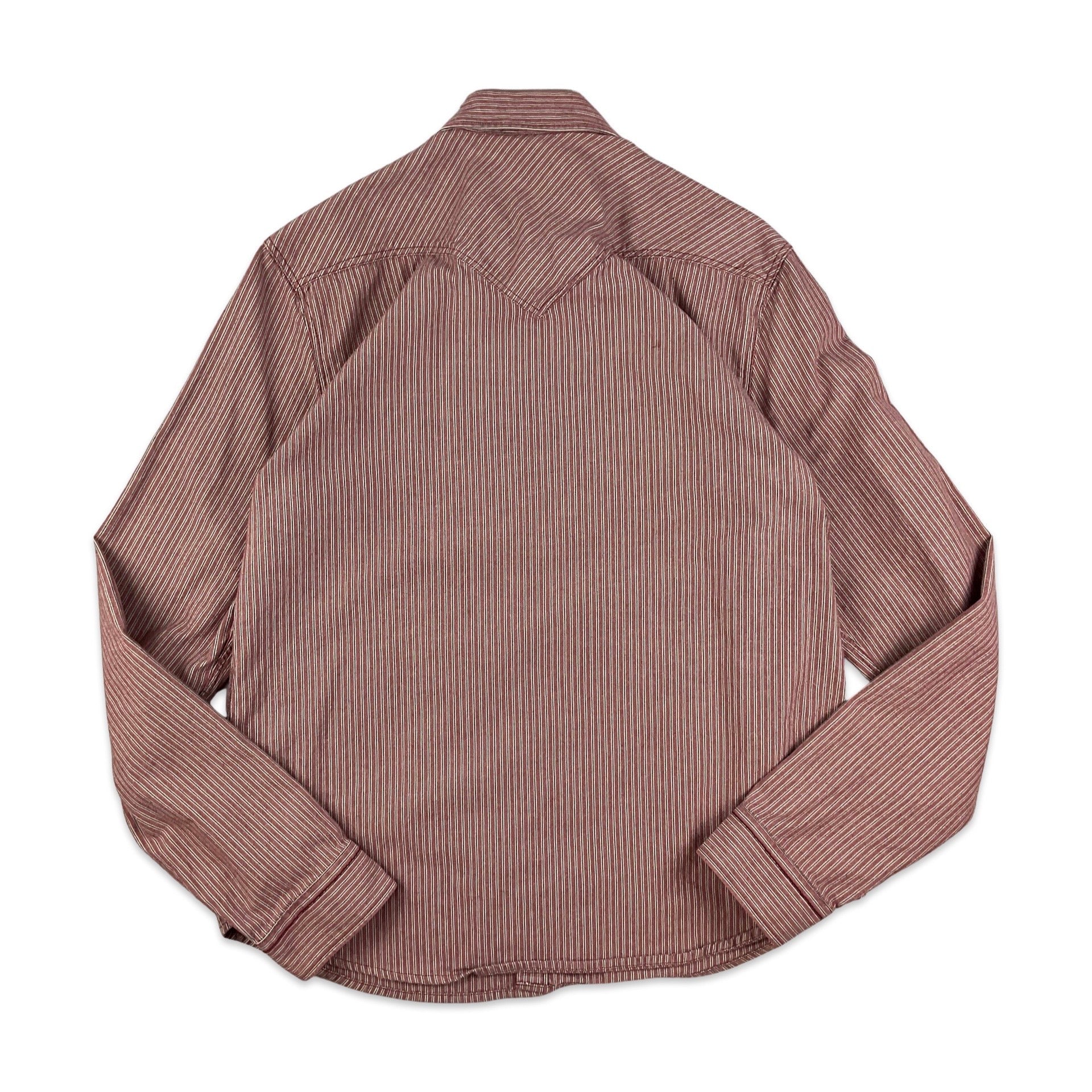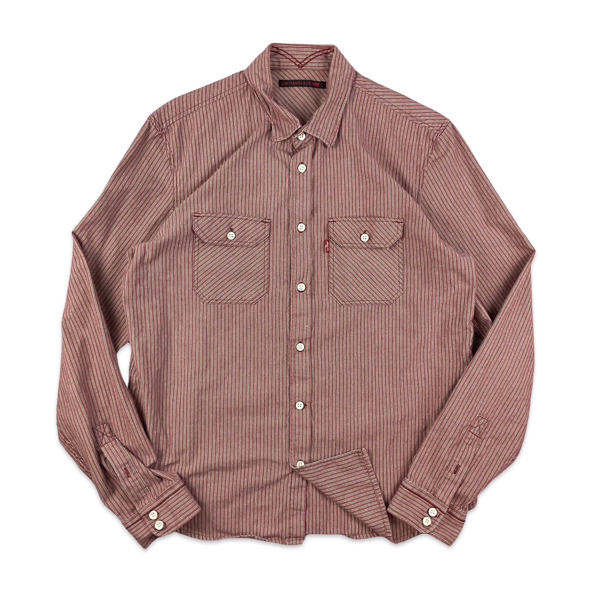 Preloved mens Levi's heavyweight button-up long sleeve shirt with red and blue stripe pattern. Buttoned chest pockets.