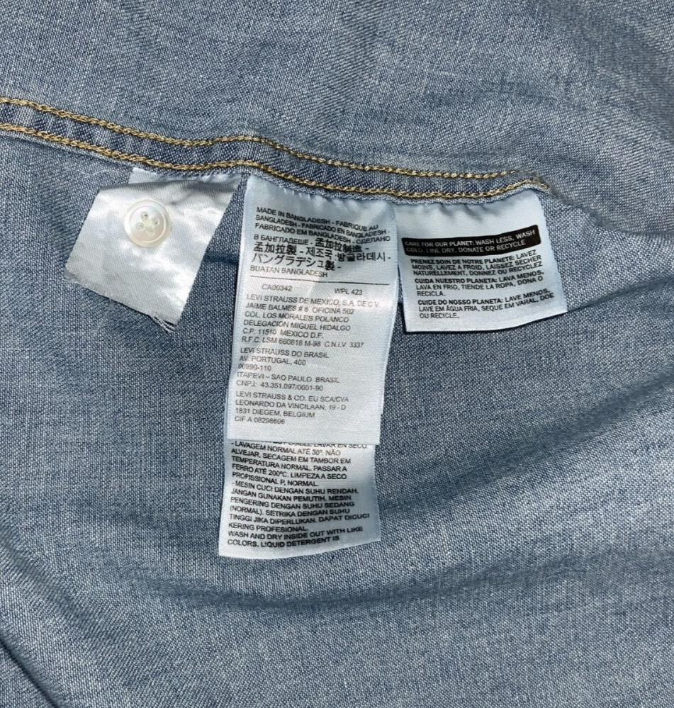 Vintage Levi's men's Western shirt. Standard fit shirt, relaxed, with pointed yokes made from a sturdy and soft denim. Classic design featuring snap placket, curved hem, and is versatile enough to be worn both casually and formally or even as a jacket.
