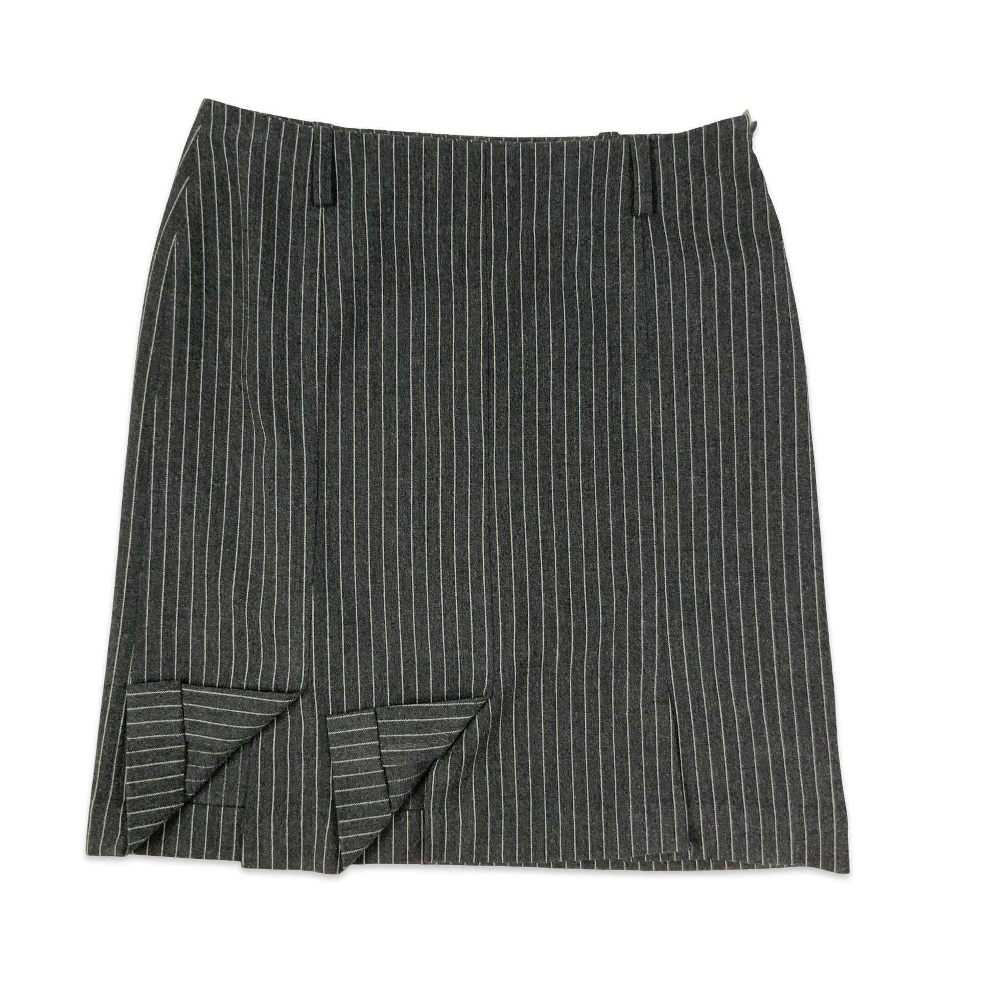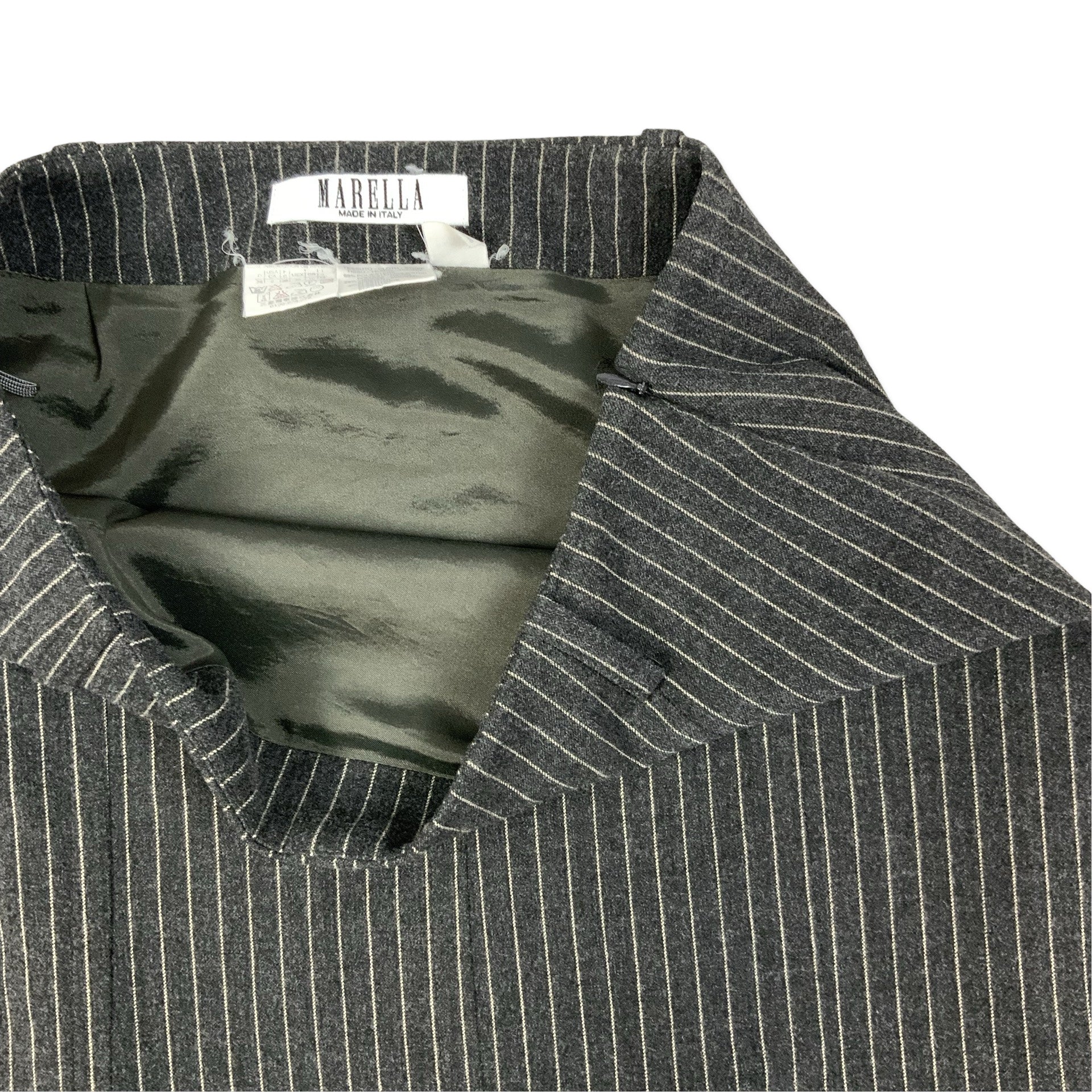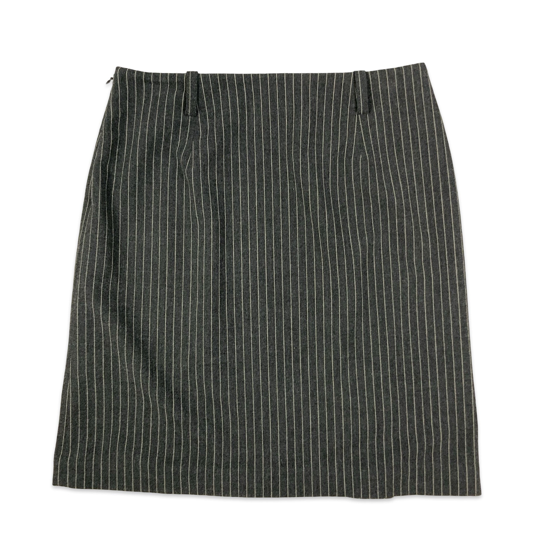 Preloved Marella grey pinstripe pencil skirt with belt loops and side zip fastening.