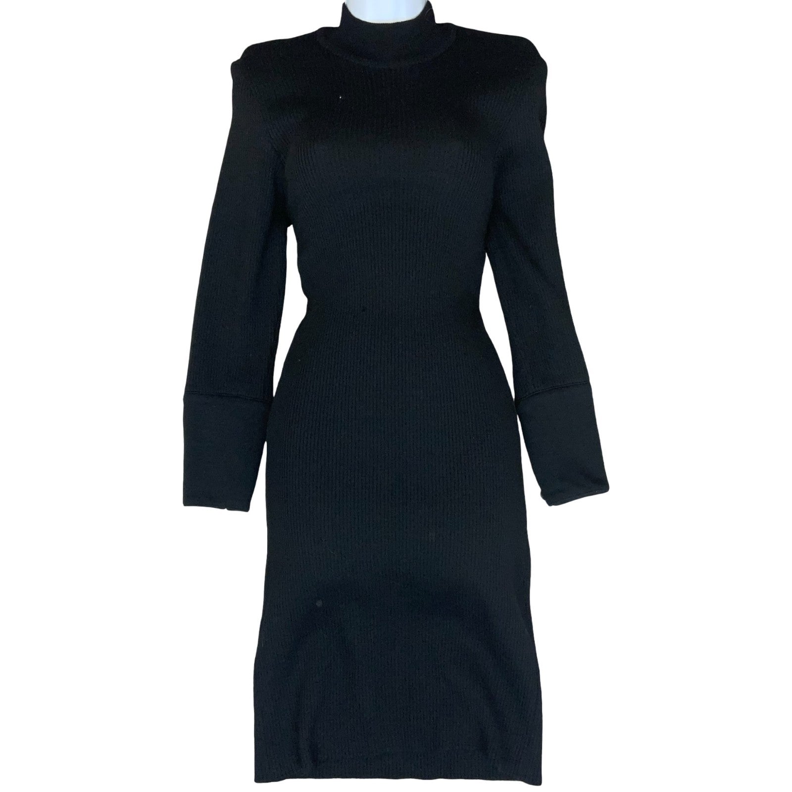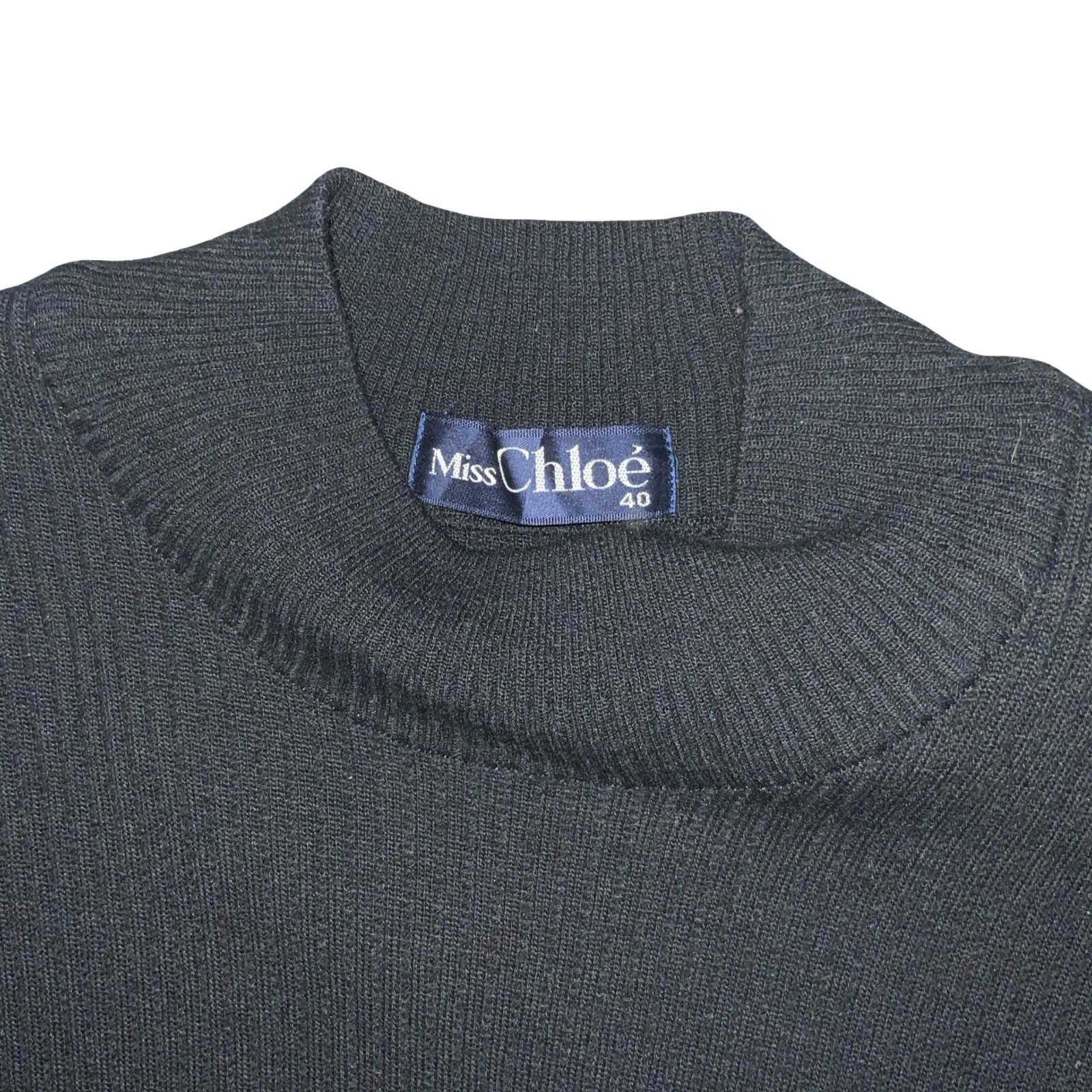 Miss Chloé luxury French designed dress in black made from 100% wool. The overall aesthetic is elegance with a high neckline, long sleeves and a figure hugging mid-length skirt. Gorgeous.