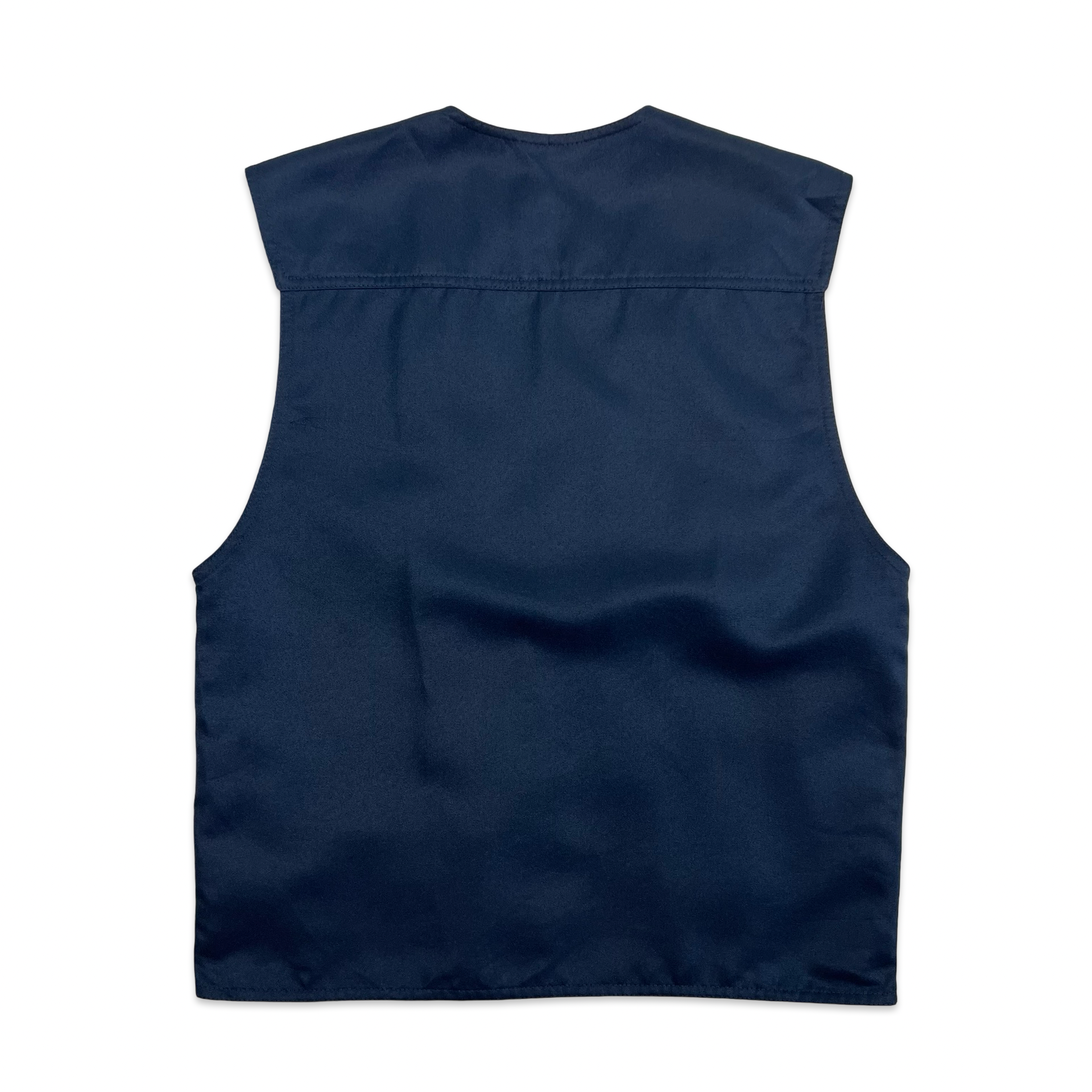 Navy polyester waistcoat gilet with multiple utility pockets. A perfect cargo utility vest for summer adventures!