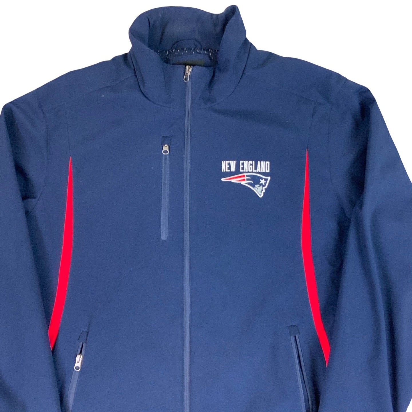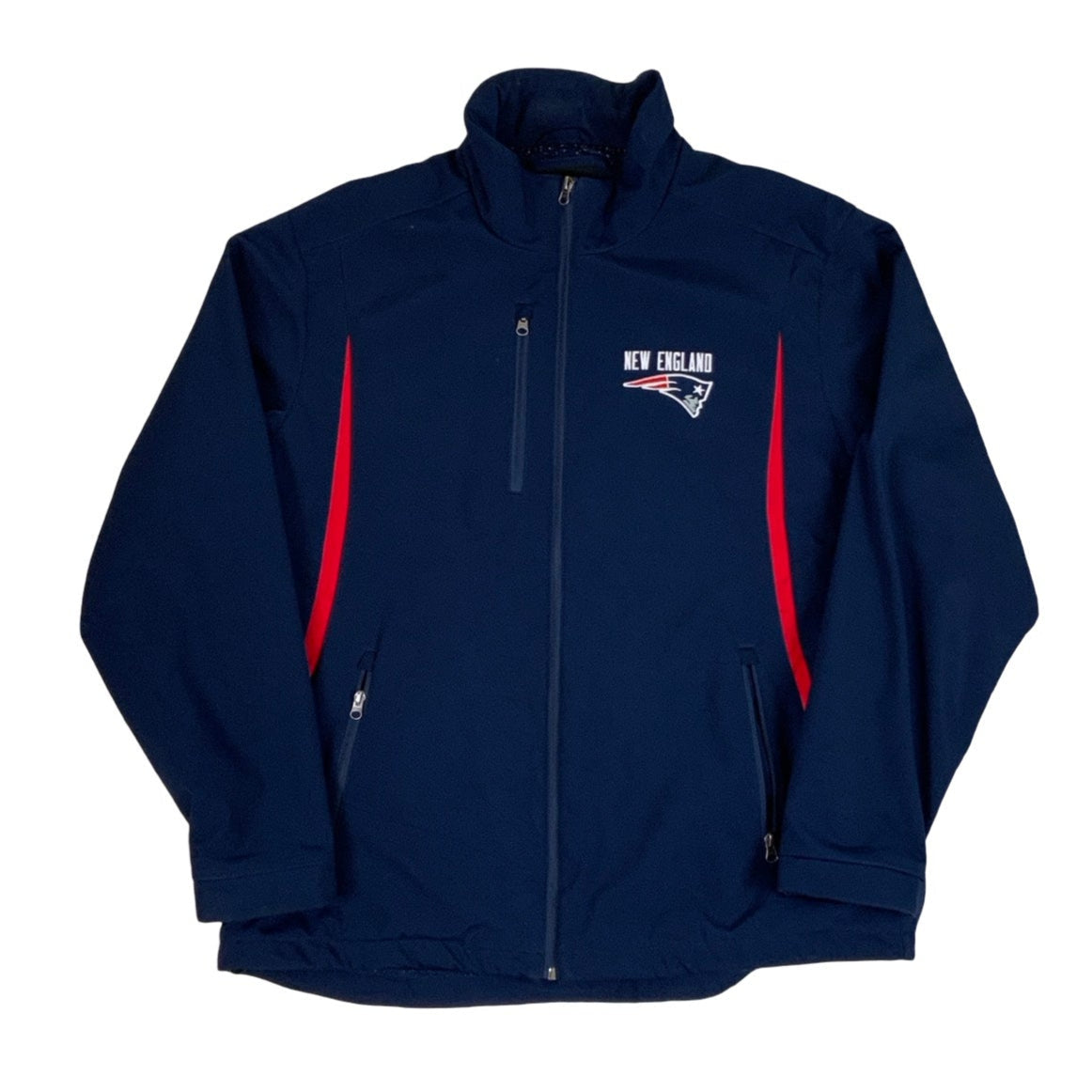 Navy Blue NFL American football Track jacket, featuring, branding on front and back of jacket, zip closure, zip pocket on chest.