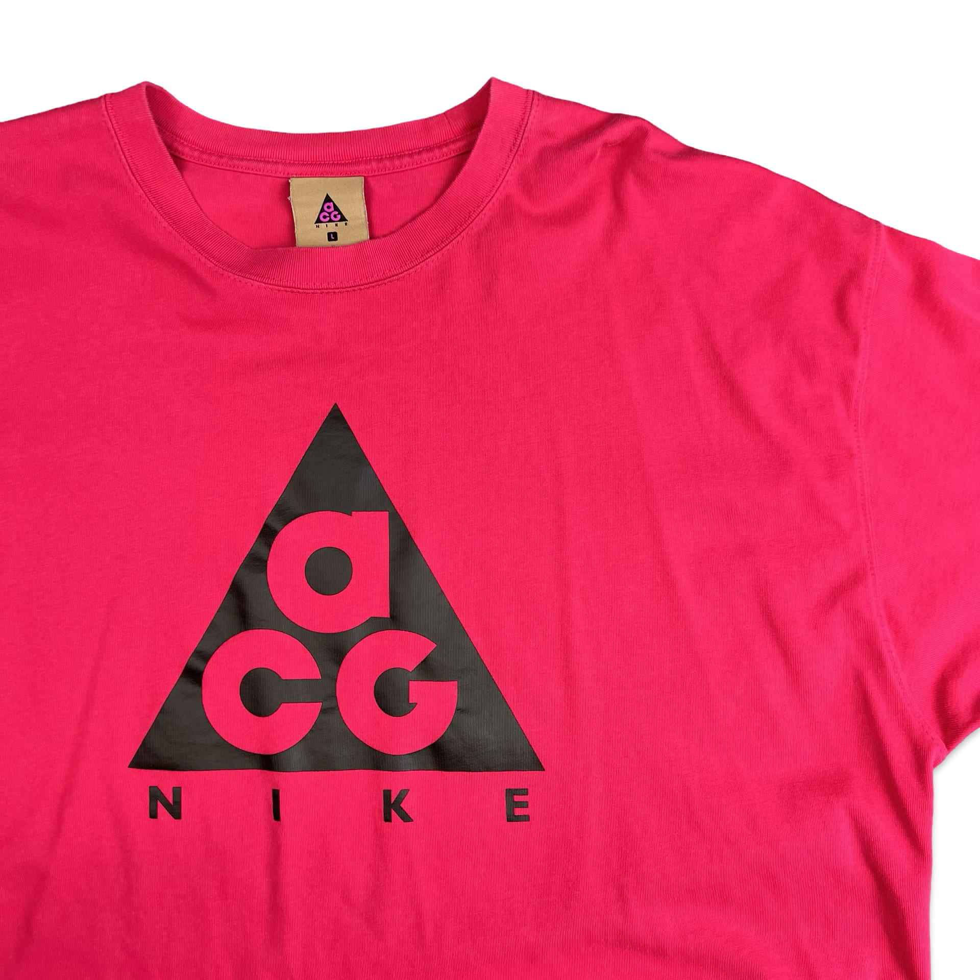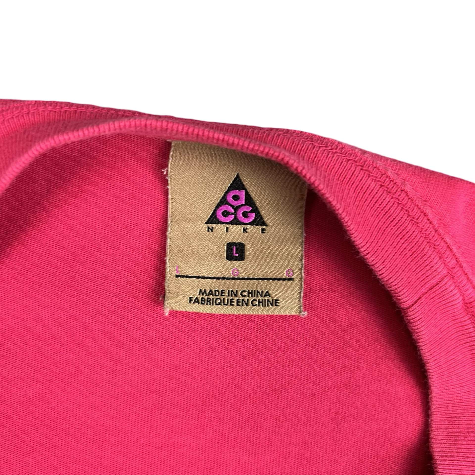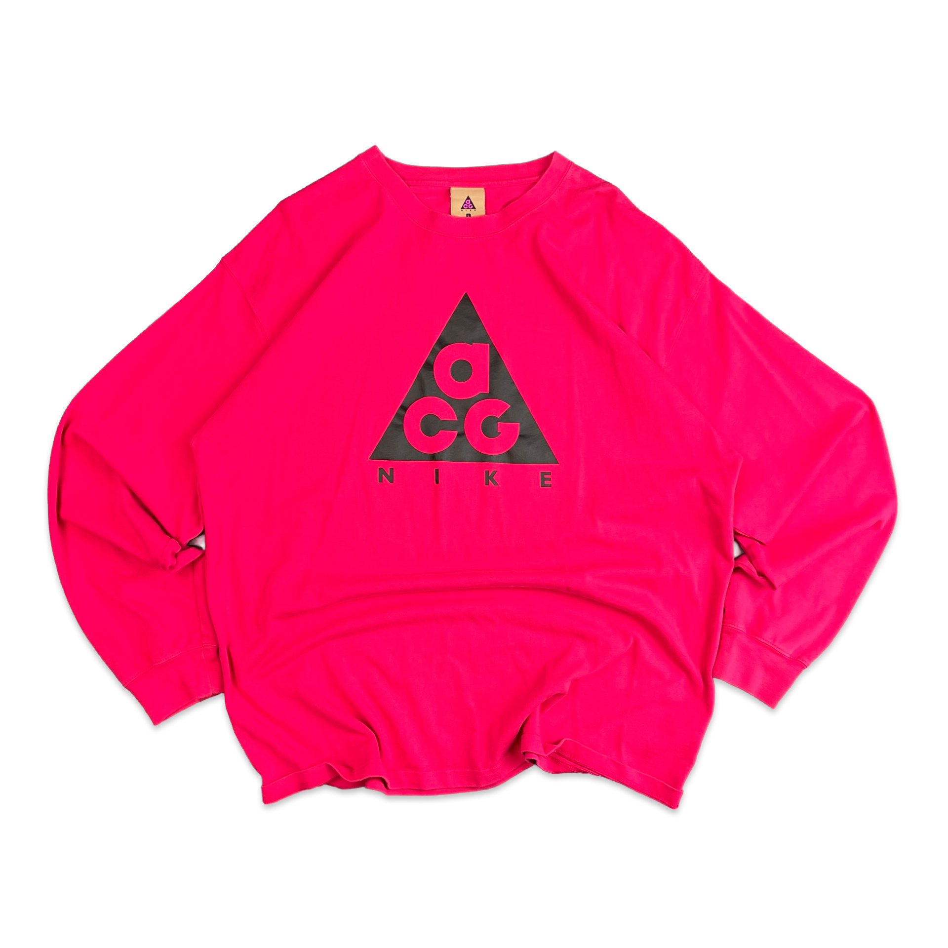 Preloved Nike ACG hot pink long sleeve top with logo graphic print across front.