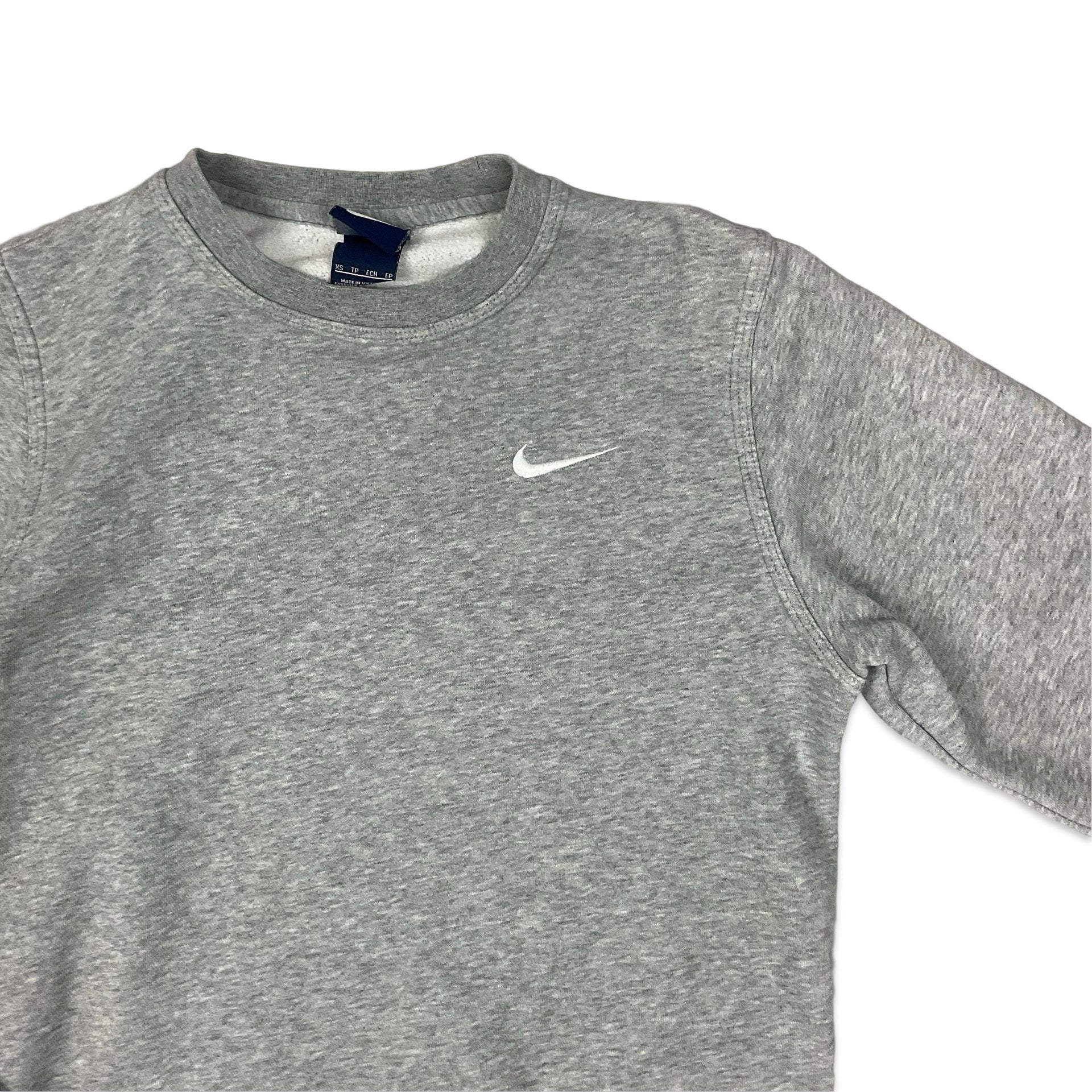 Preloved Nike grey crew neck sweatshirt with embroidered swoosh logo on chest.