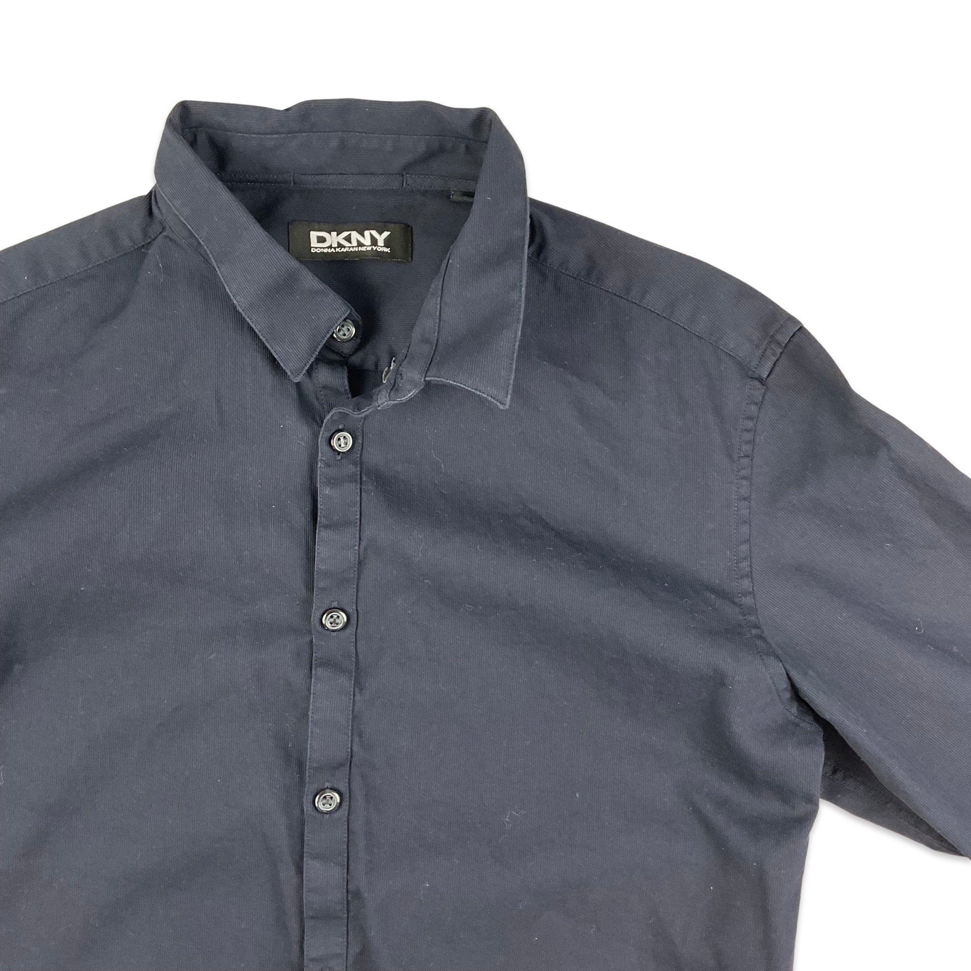 Preloved mens DKNY button-up plain dress shirt in navy.