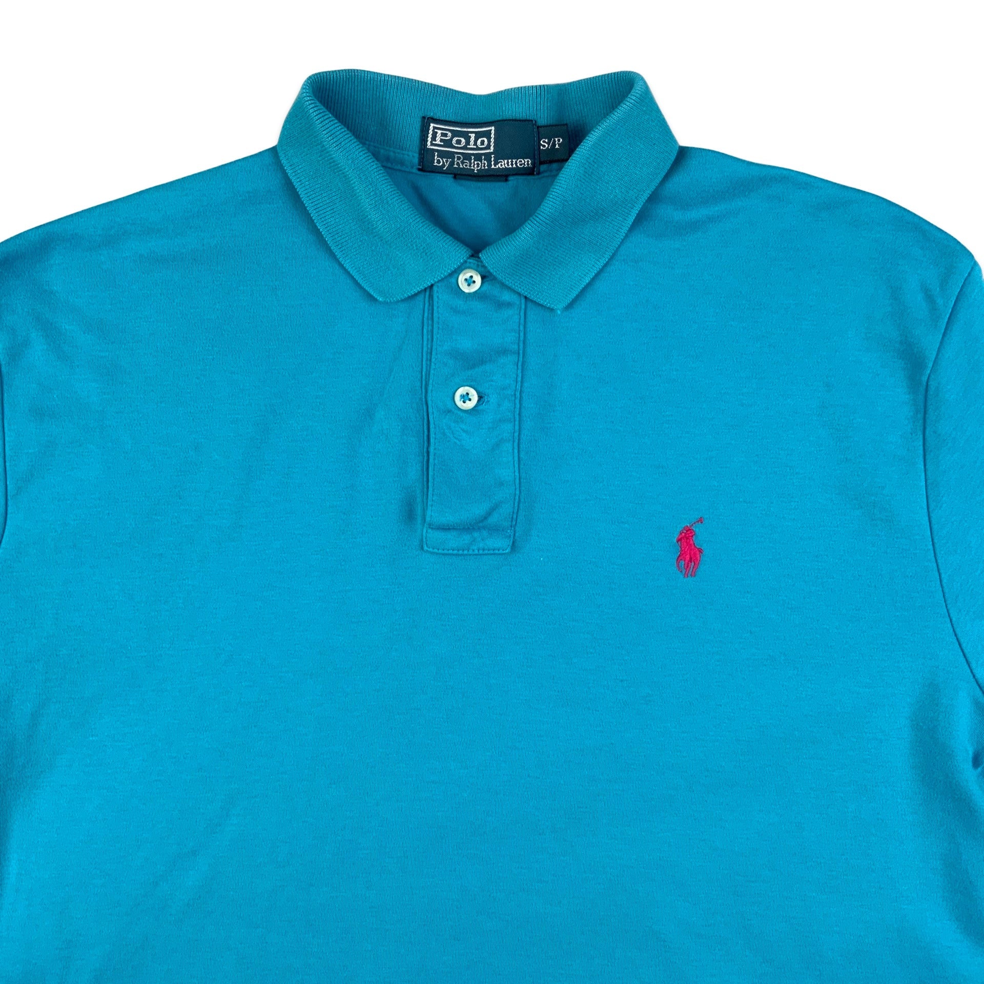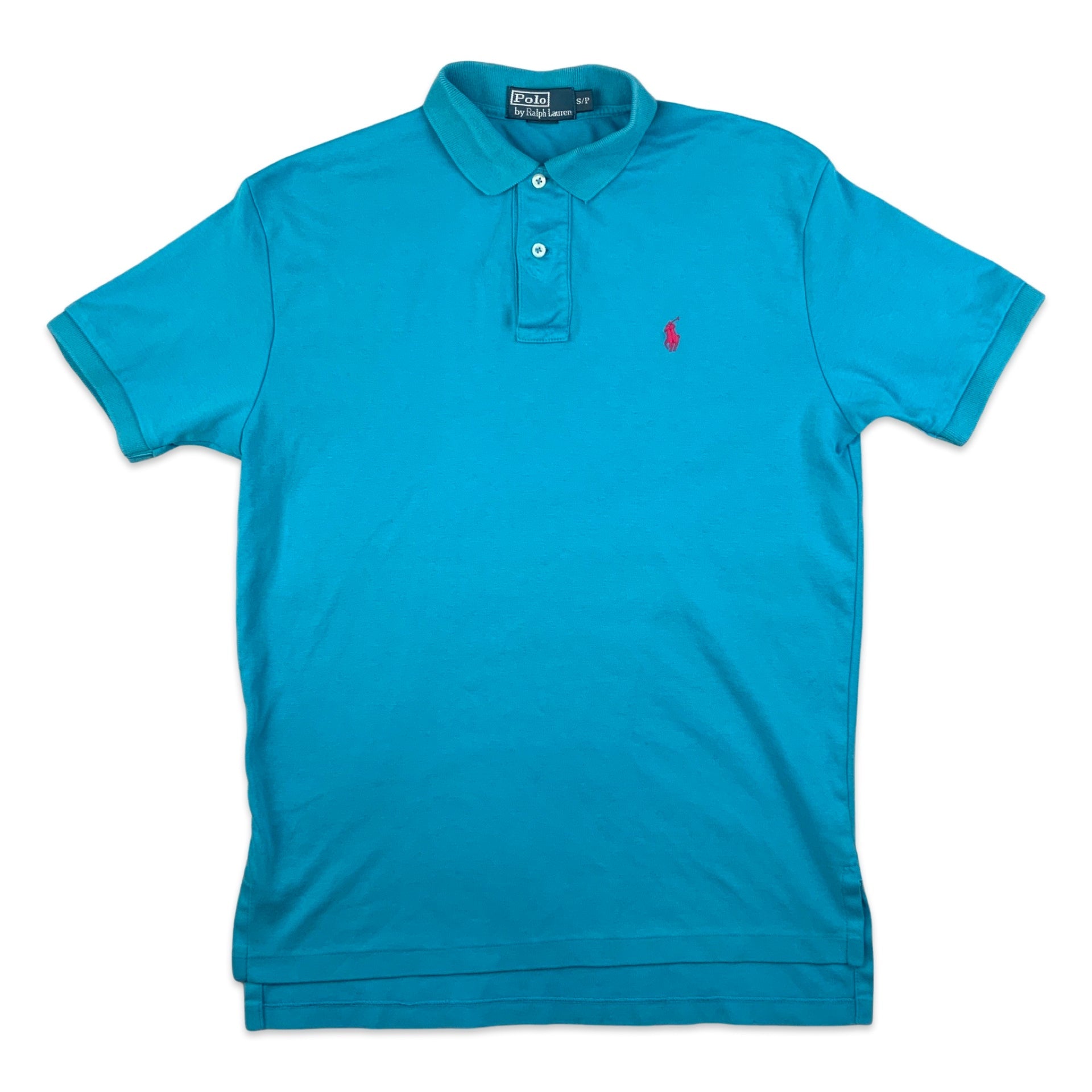 Preloved men's Ralph Lauren plain light blue polo shirt.