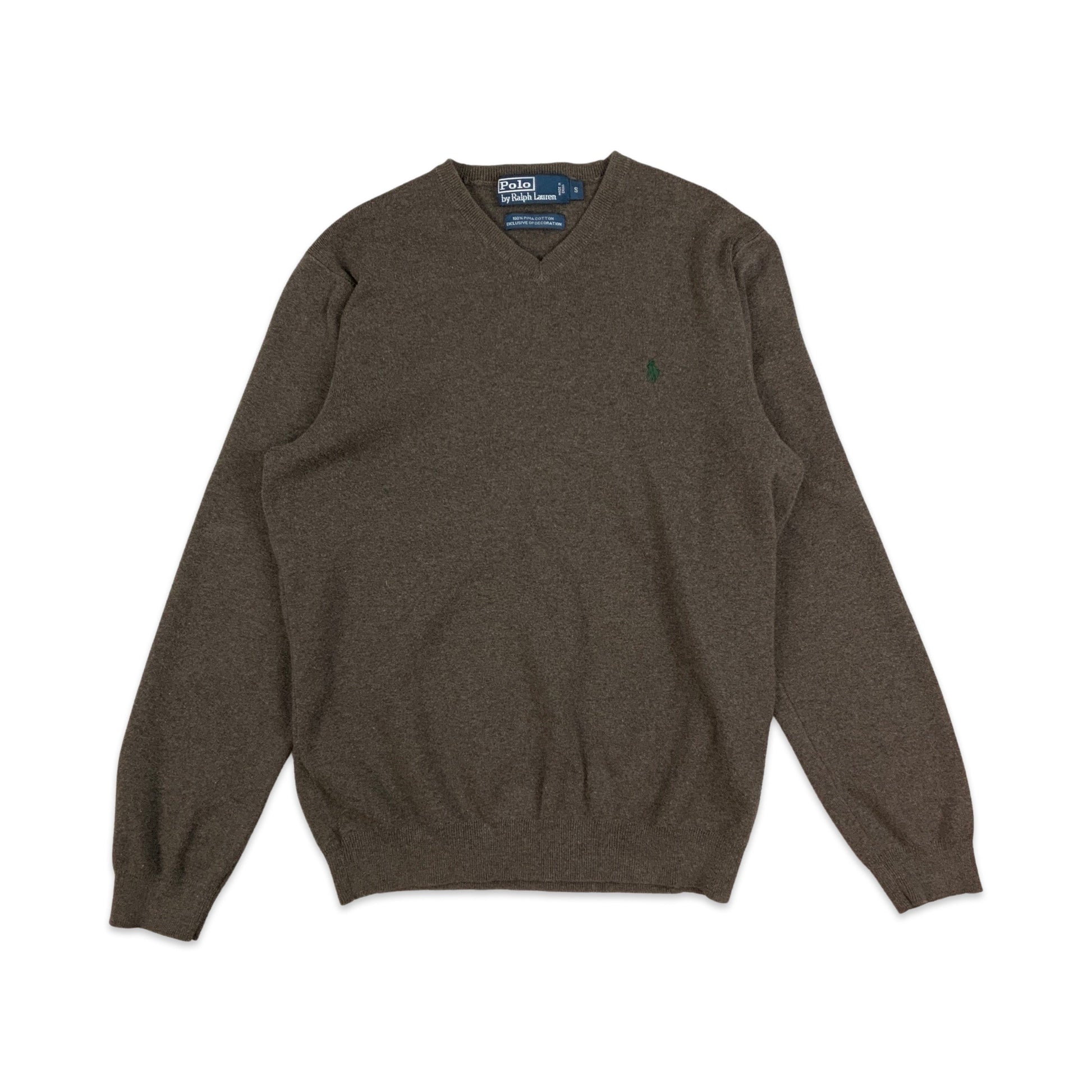 Vintage mens Polo Ralph Lauren V-neck brown pima cotton jumper.