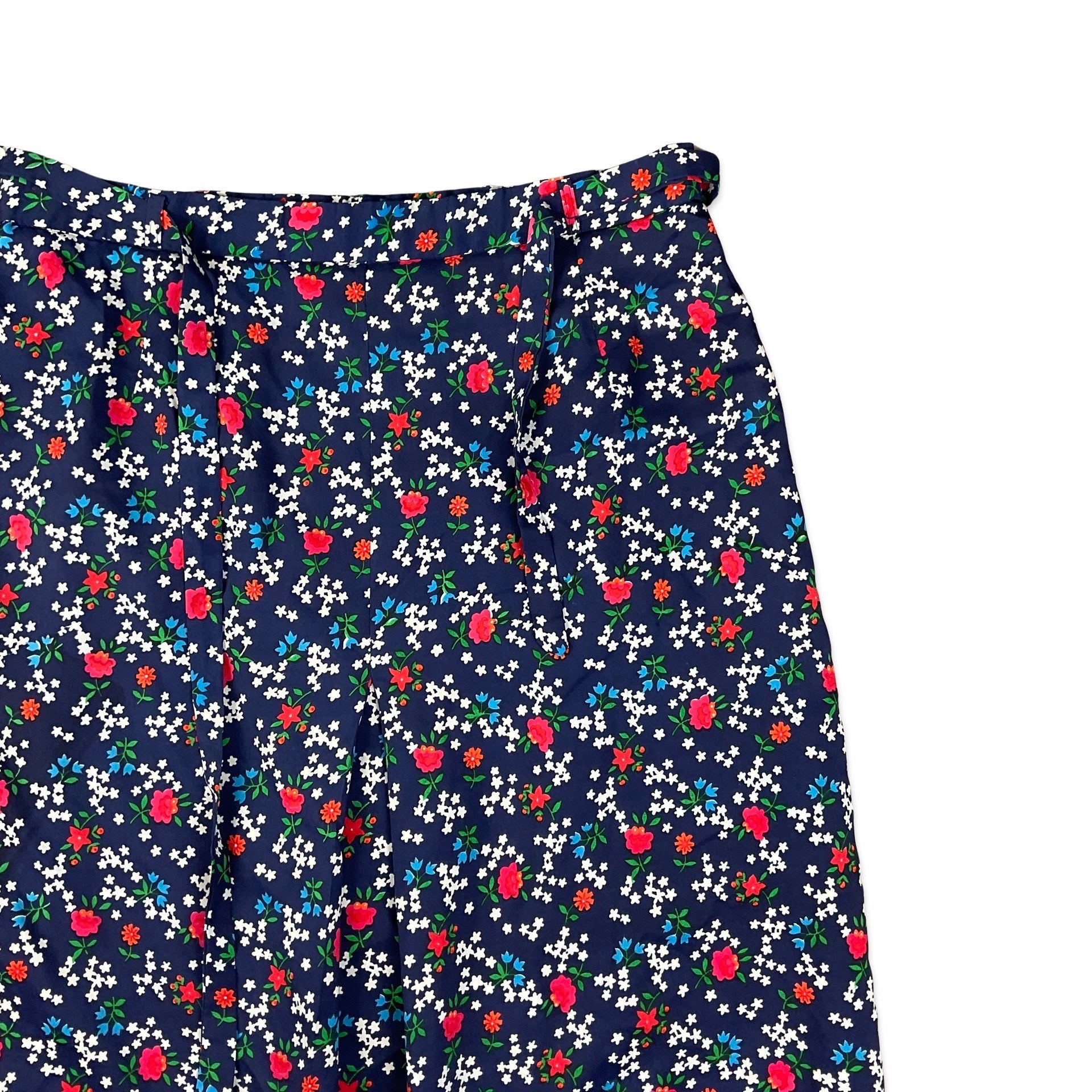 Vintage Navy White Green & Red Floral Print A-line Midi Skirt 4 6