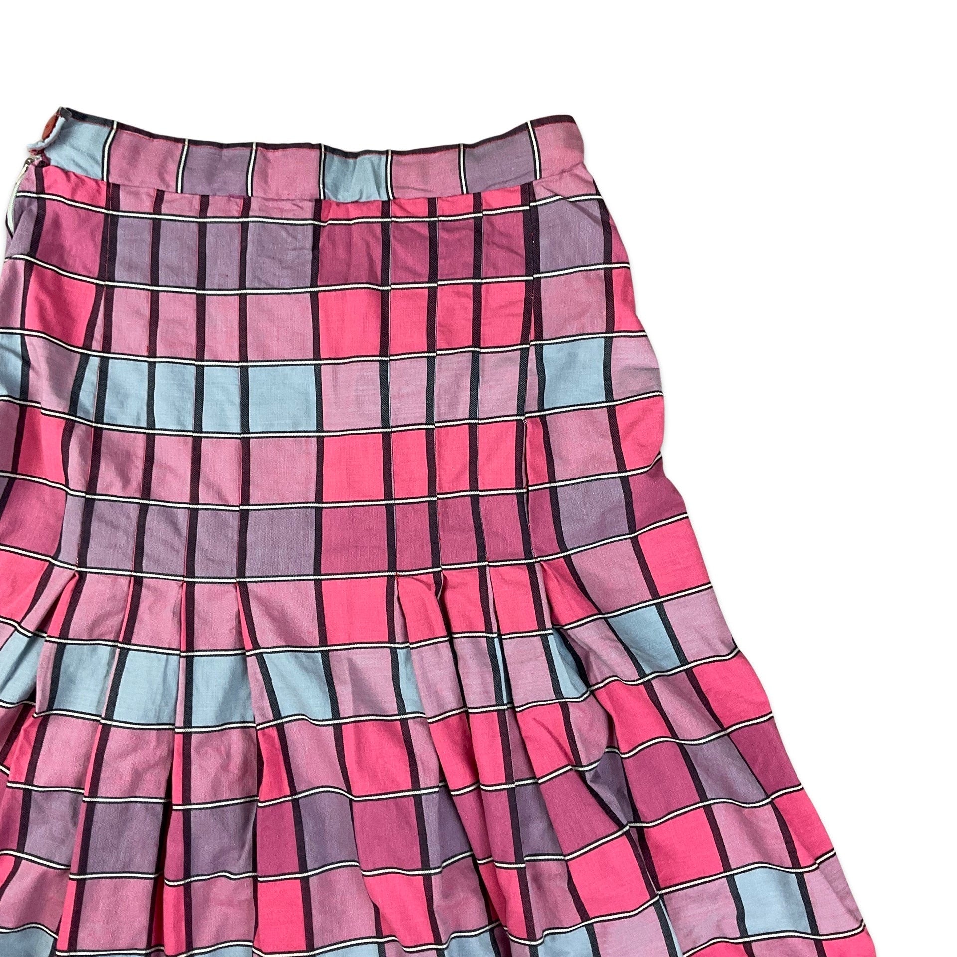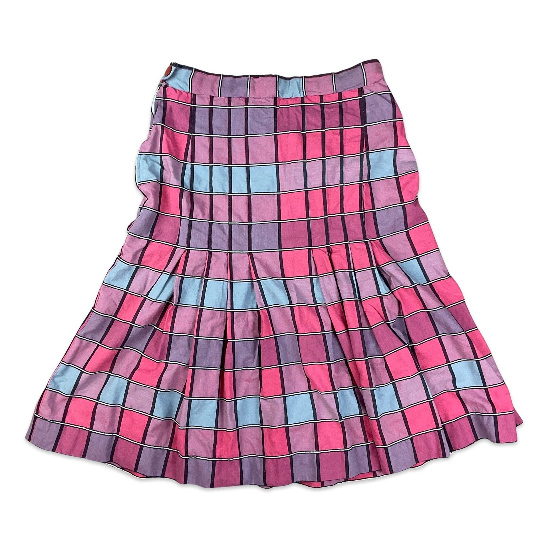 Vintage Purple Black & Blue Check pleated midi skirt.