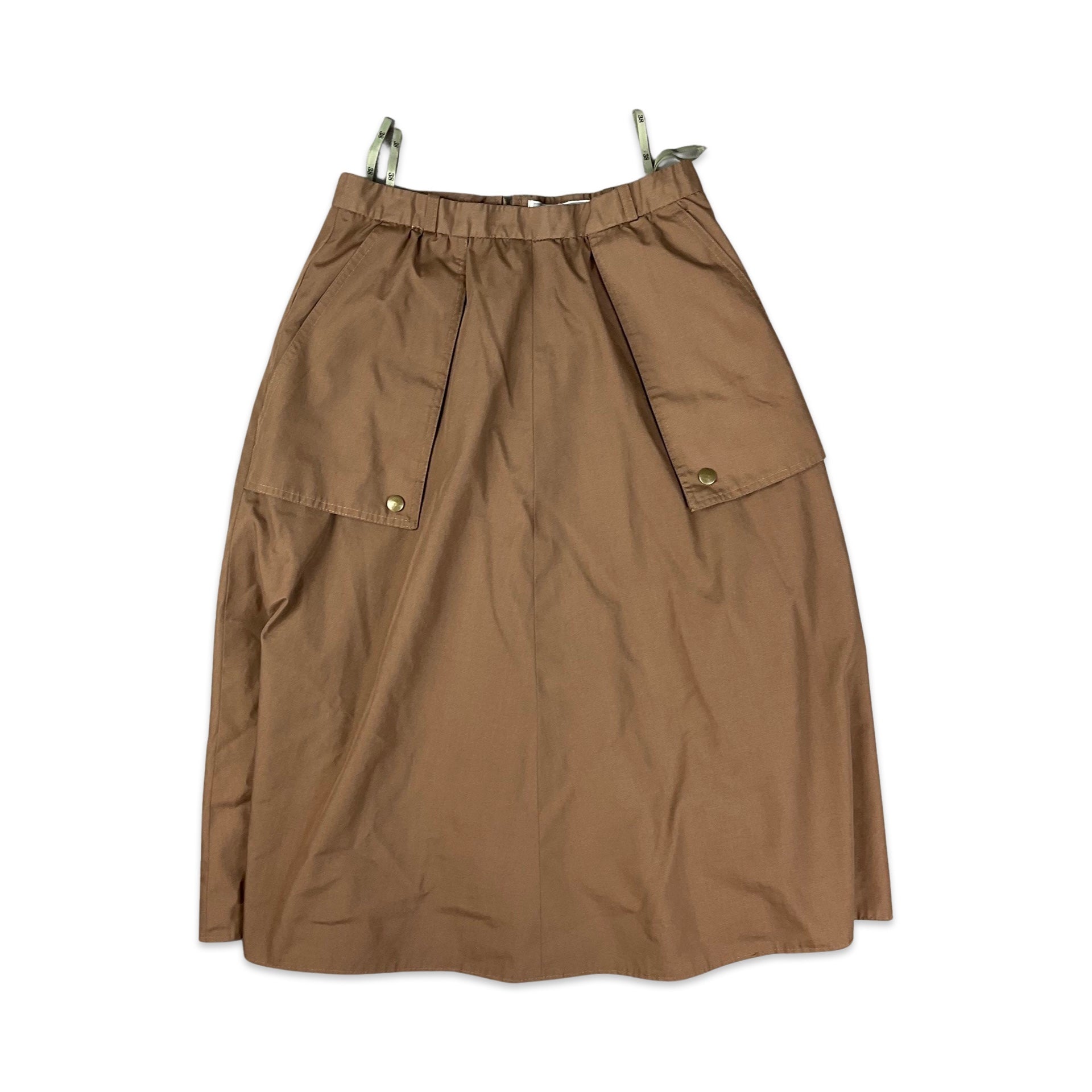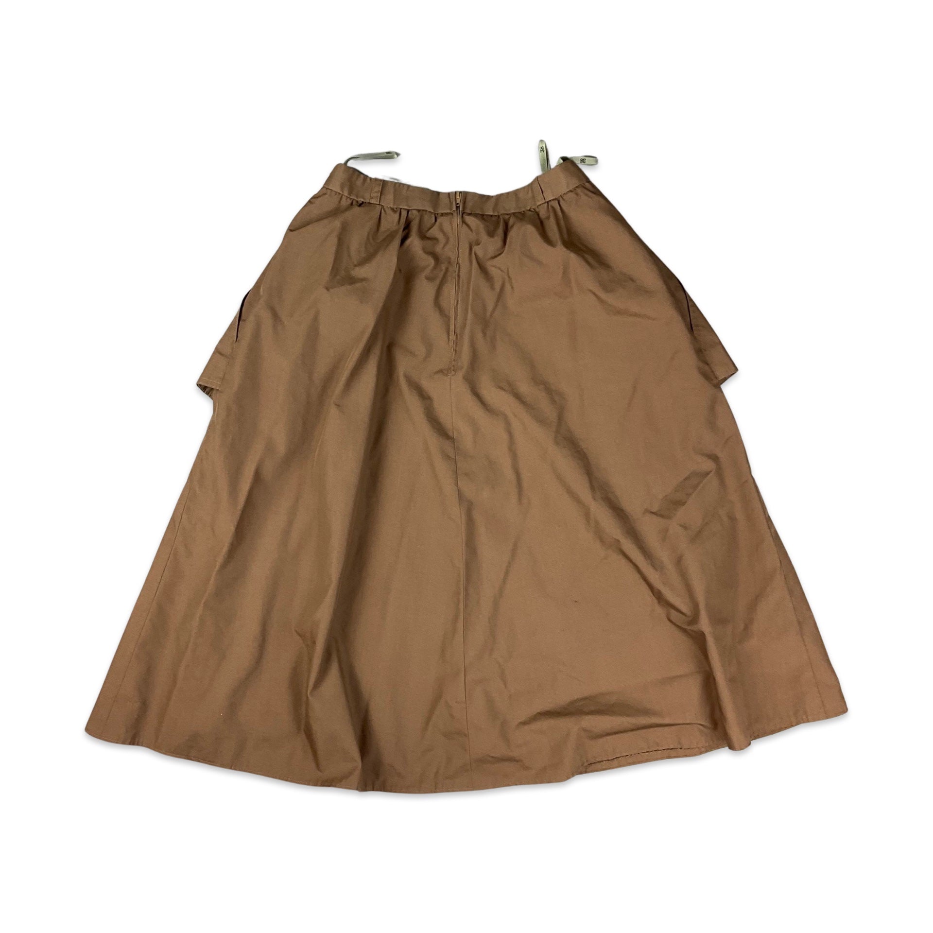 Vintage brown midi skirt with large exterior pocket details. Zip fastening.