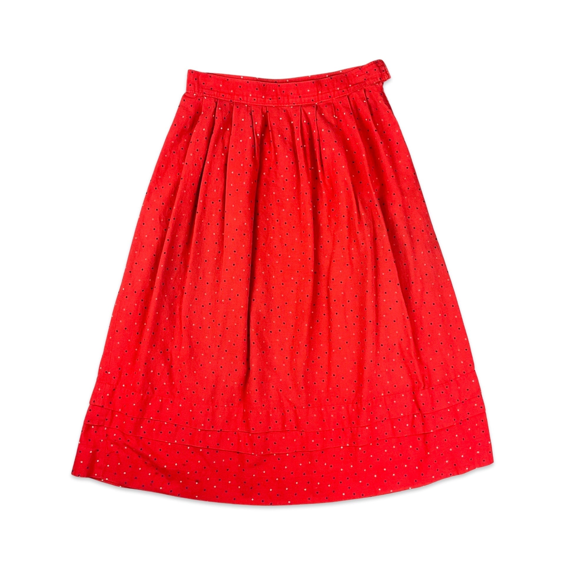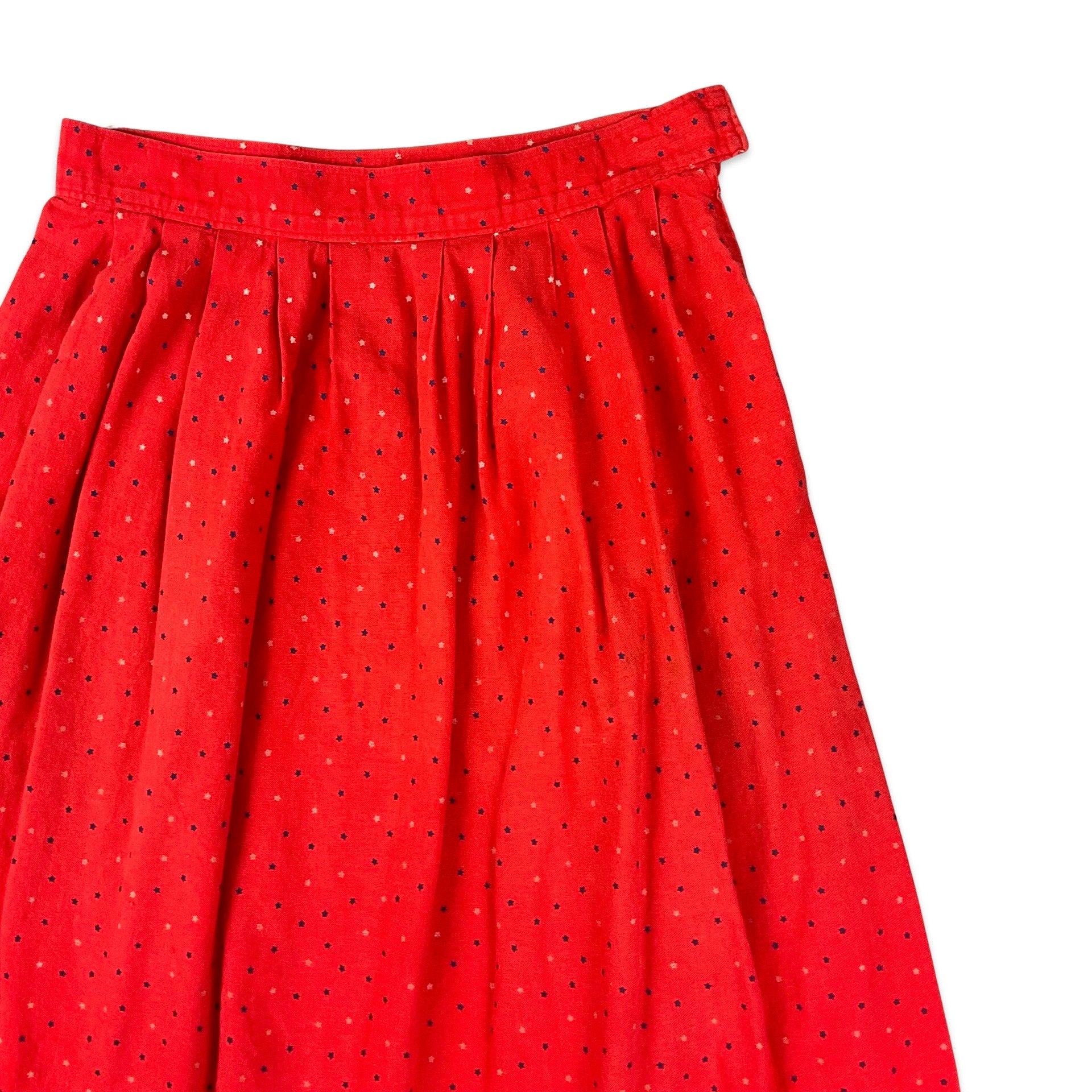 Vintage red pleated midi skirt with subtle star print all-over. Zip fastening, no interior lining.