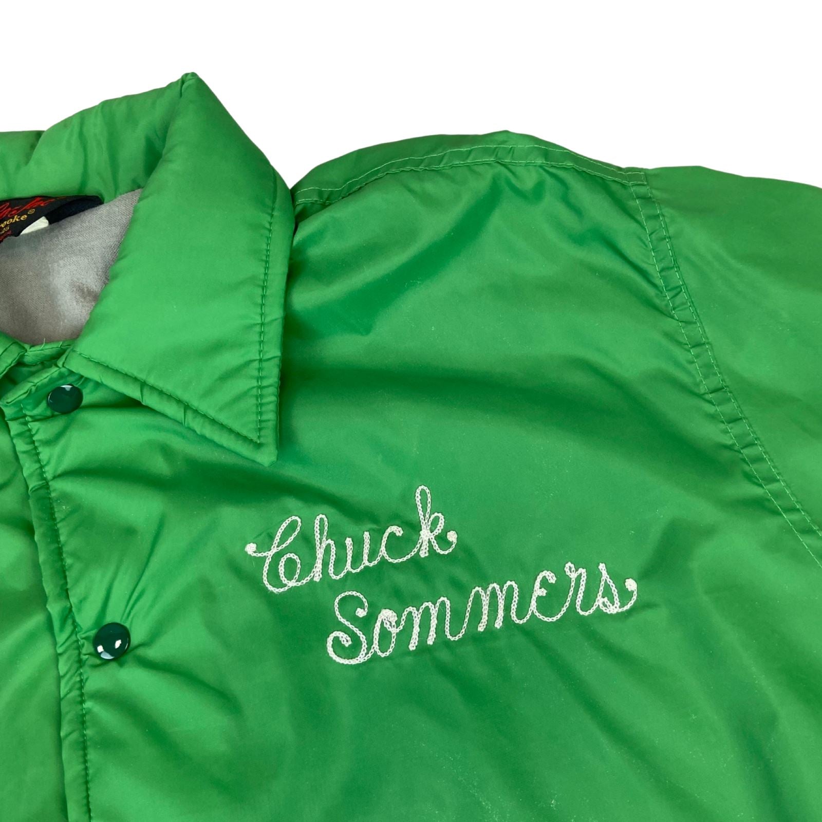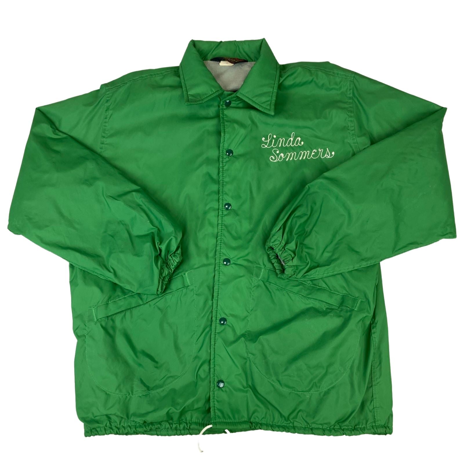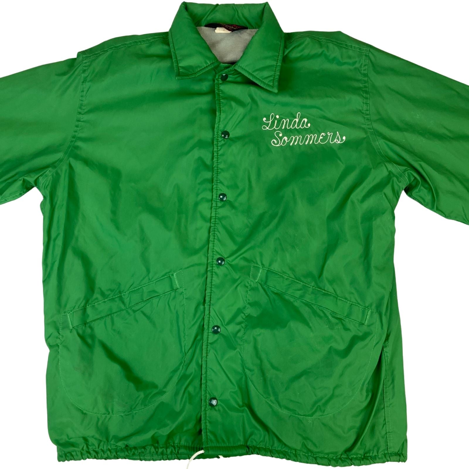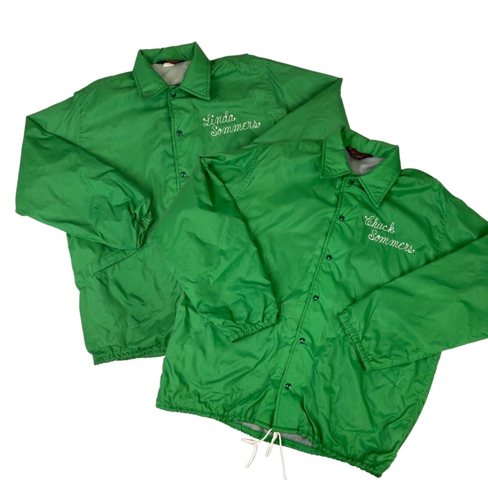 He we have a superb vintage rarity, a pair of his & hers vintage 1970s PLA-JAC BY DUNSBROOKE USA lined nylon windbreaker jackets from the whispering pines campground in the black hills of South Dakota USA, they have superb vintage chain stitch names embroidered on the front “CHUCK SOMMERS” And presumably his wife “ LINDA SOMMERS” Who presumably worked at the campground in the 70s.