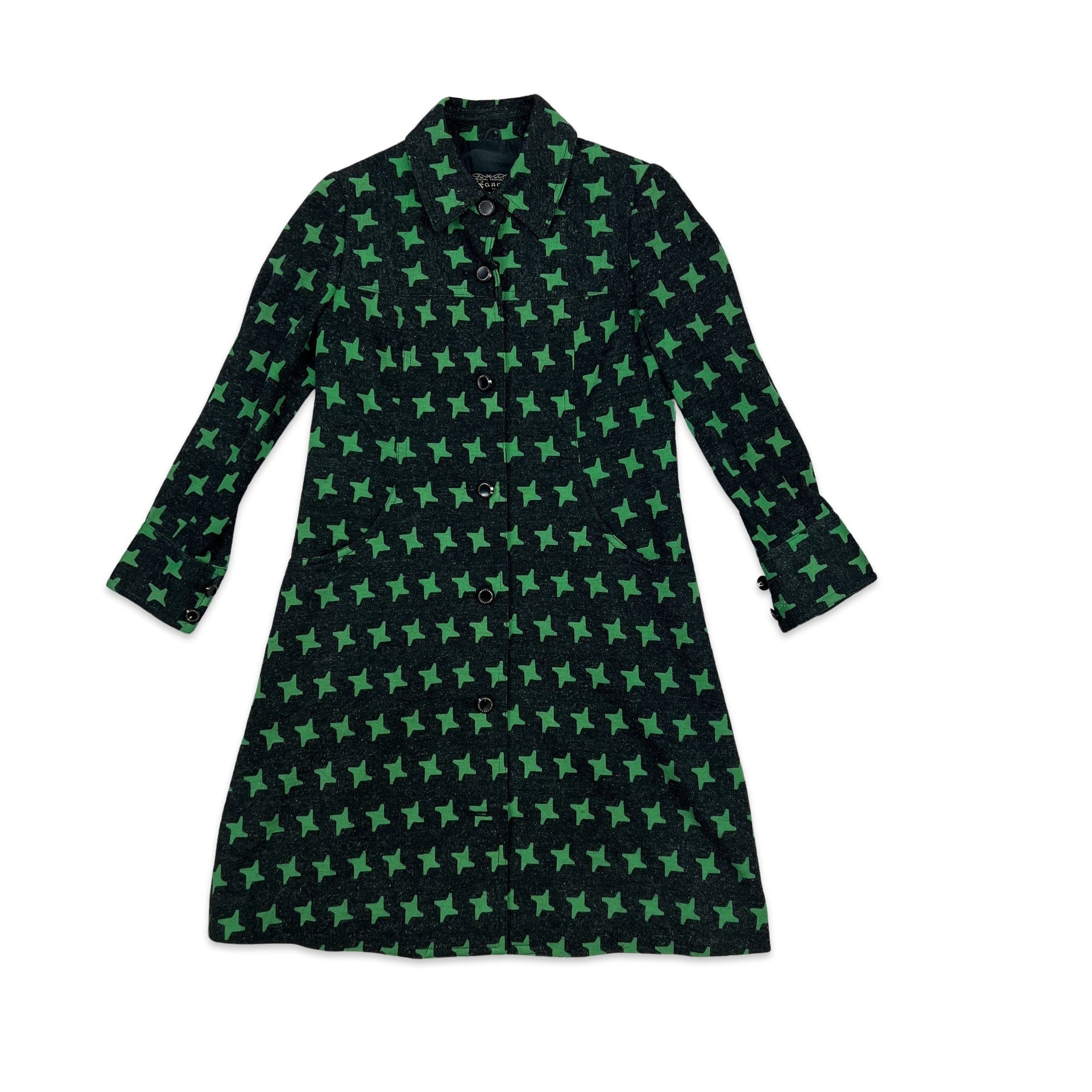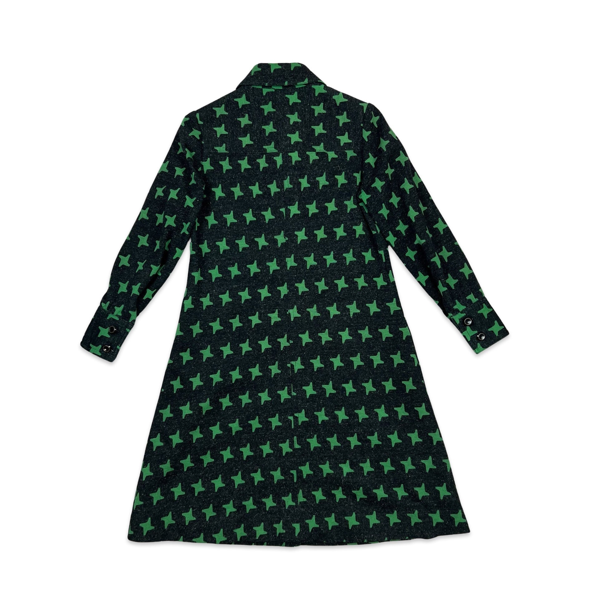 Patterned Midi Wool Coat Geometric Star Pattern Charcoal Green 8 10