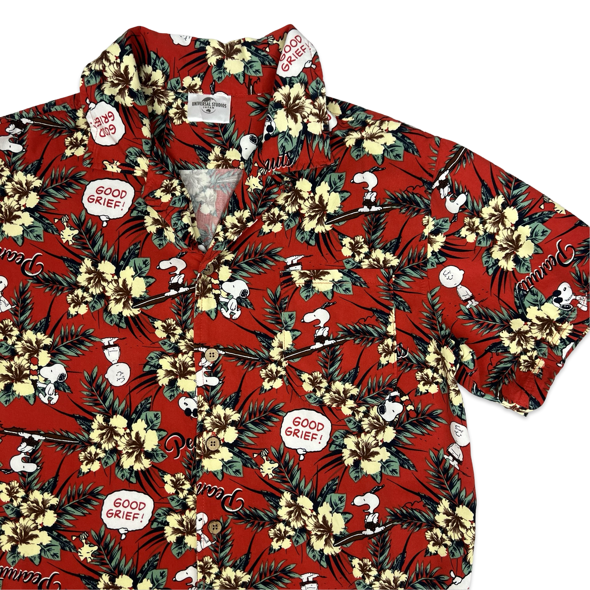 Peanuts Print Red Aloha Shirt S