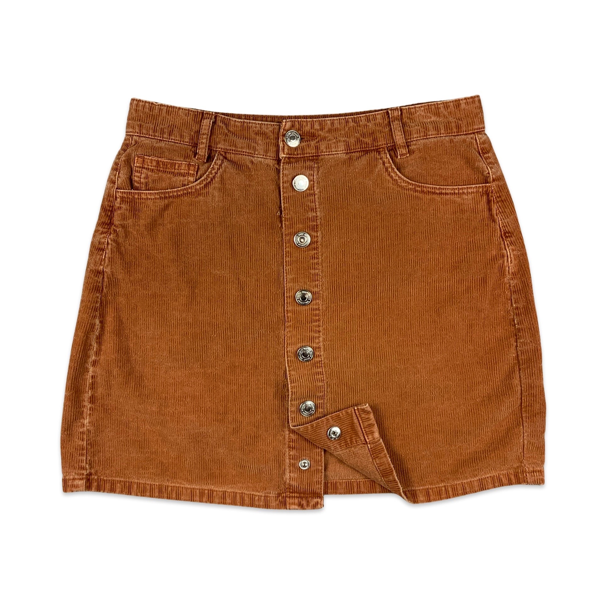 Preloved Orange Corduroy Button-up Mini Skirt 10