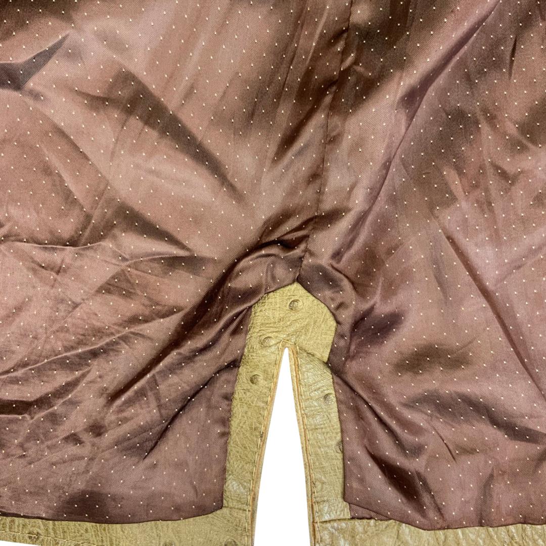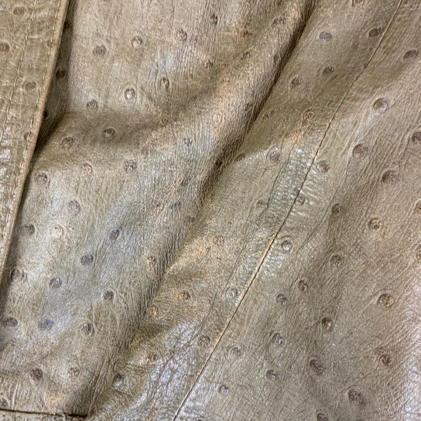 Here we have a very special vintage 1960s ladies coat made from genuine ostrich skin leather in a natural green beige colour, this is a super cool boxy shift mod style with 2 button opening (with large buttons covered with the same leather) and 2 front pockets , has an acetate/polyester dotted silky lining.