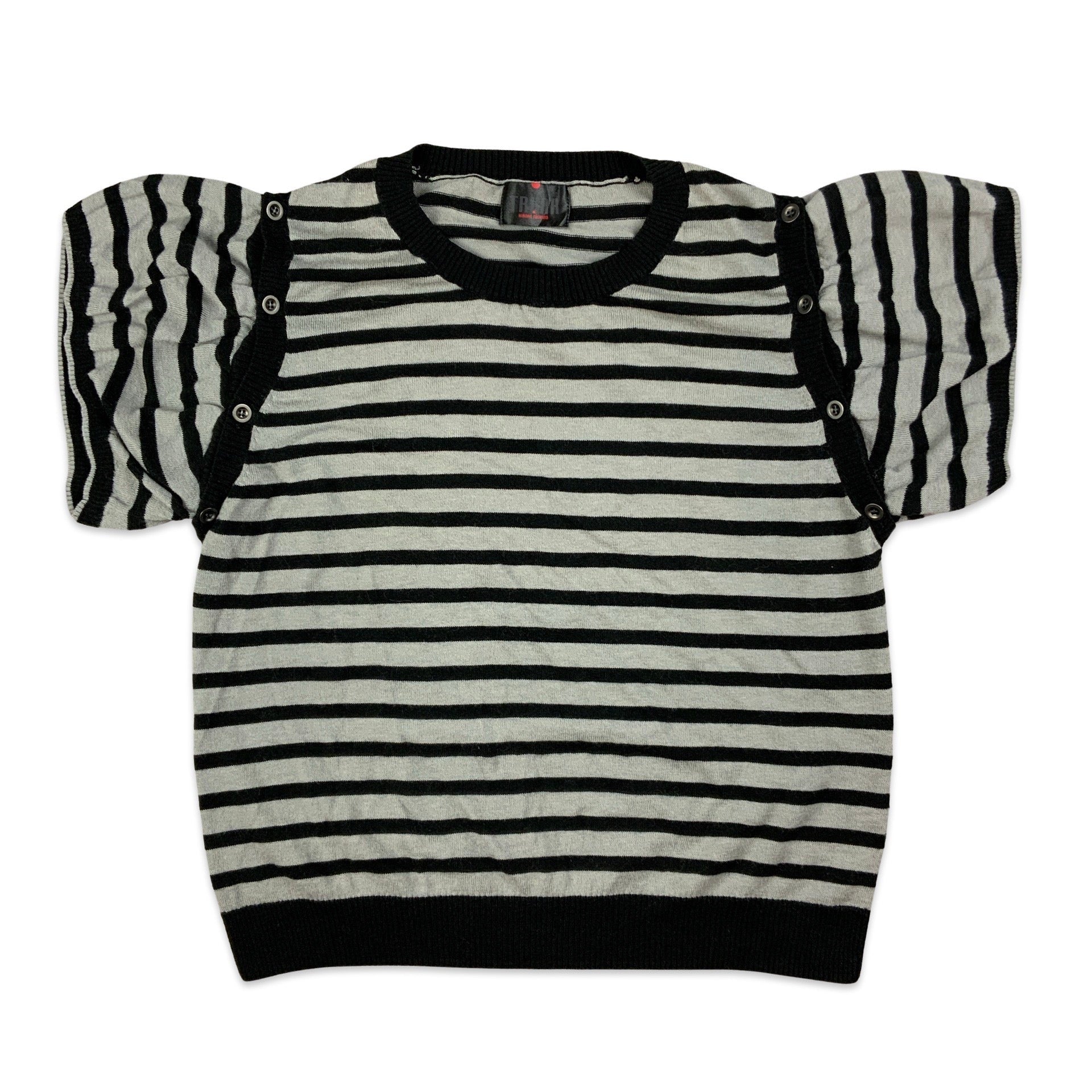 Striped Black & Grey Short Sleeve Jumper 8 10 12
