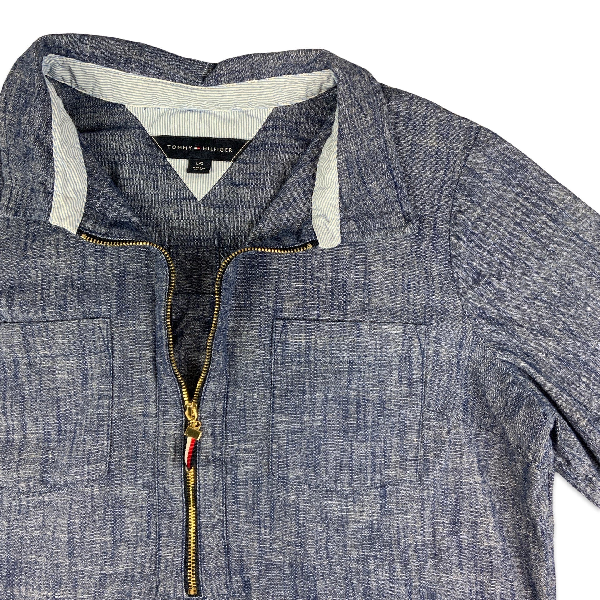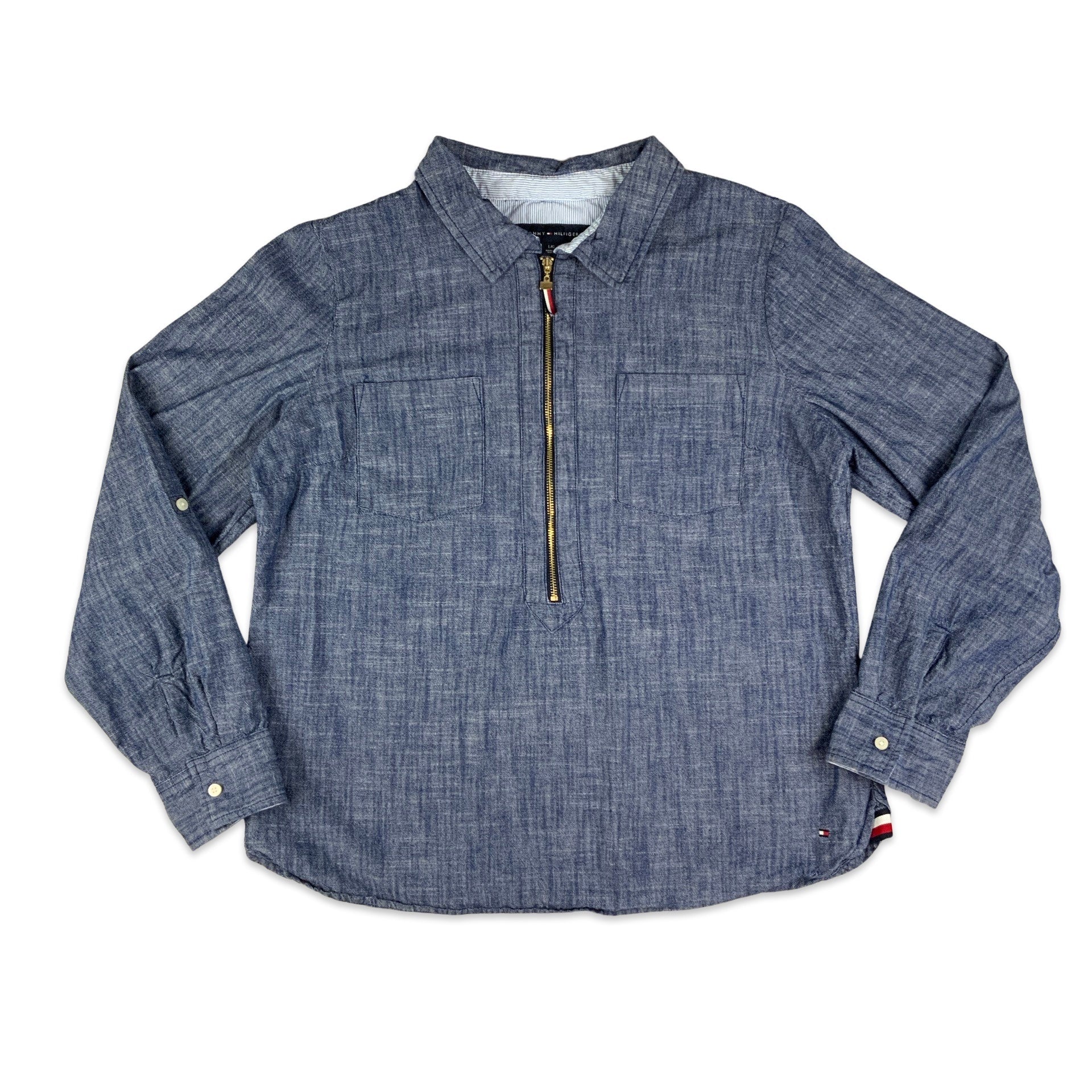 Tommy Hilfiger 1/2-zip Blue Denim Chambray Shirt M L