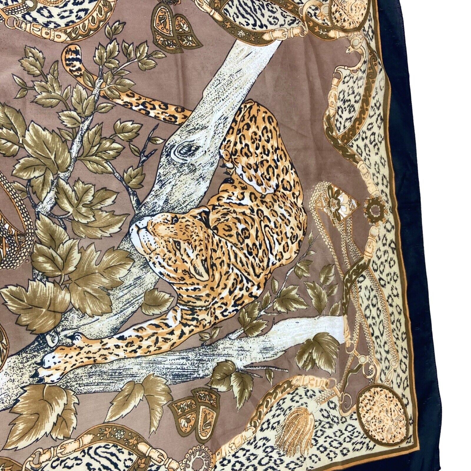 Vintage 00s 90s Brown Orange Leopard Print Graphic Print Scarf