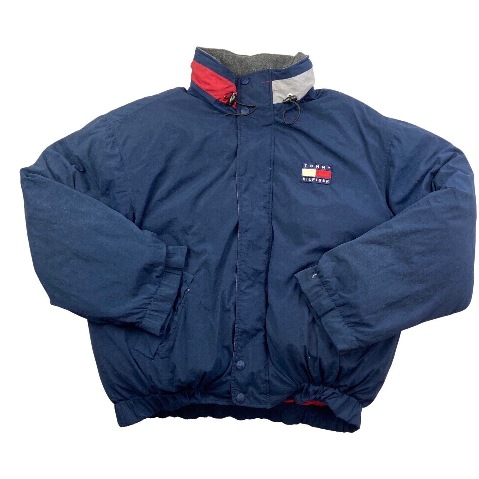Vintage 00s 90s Navy Blue Tommy Hilfiger Down Padded Puffer Coat XL